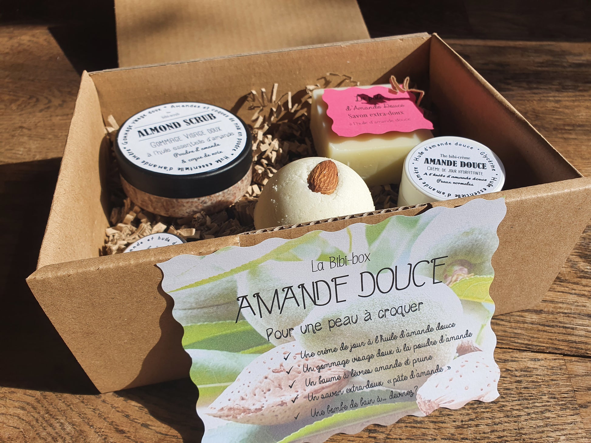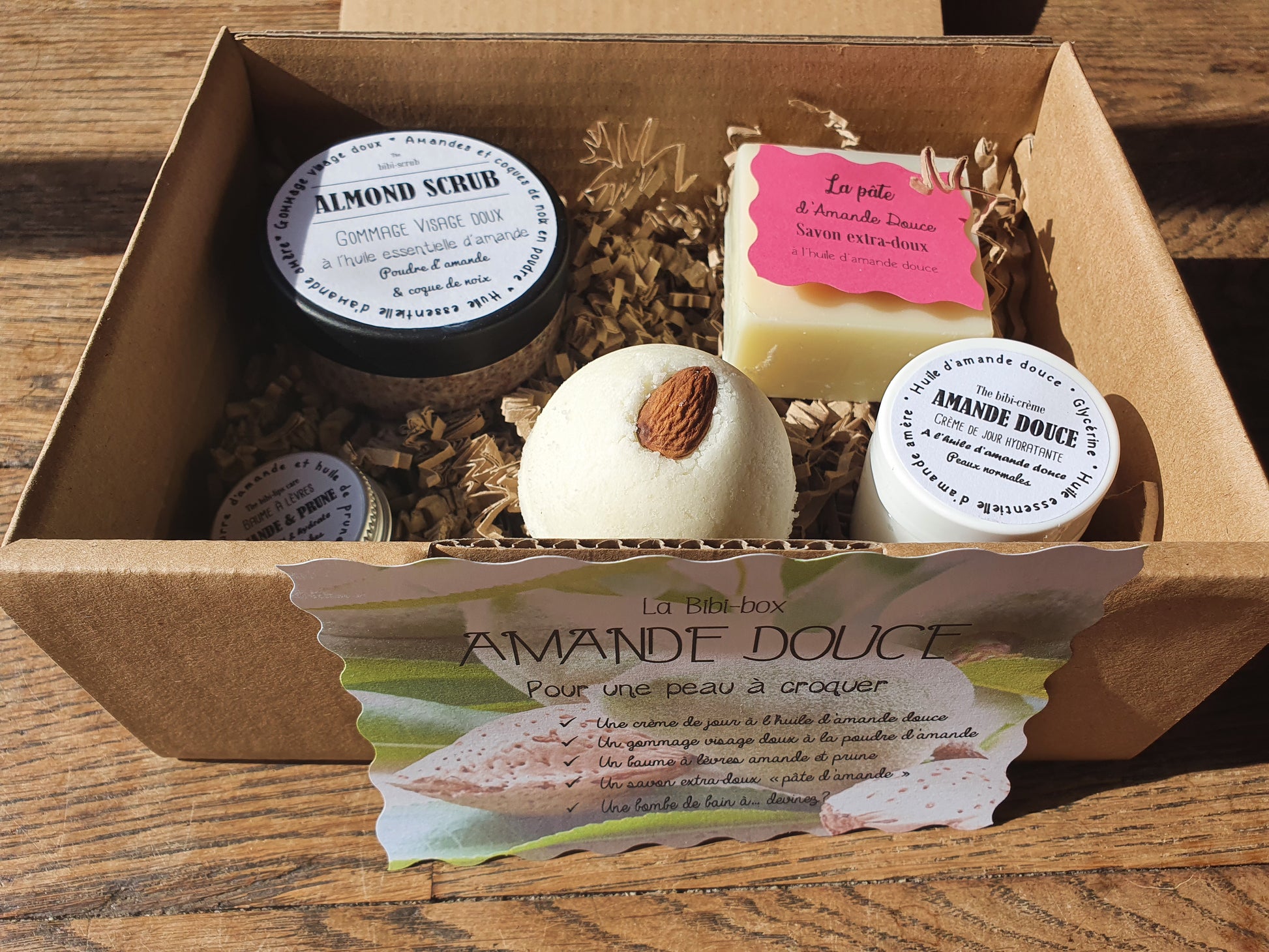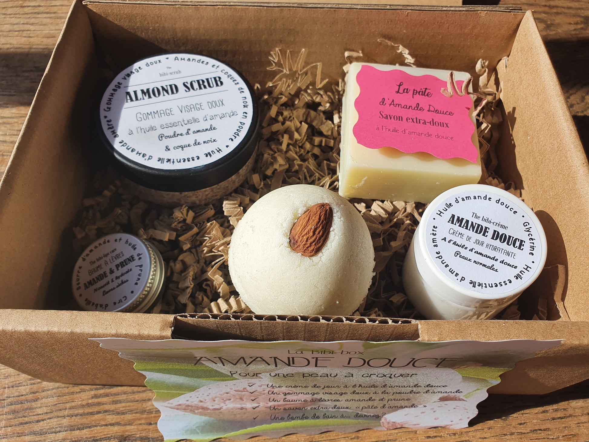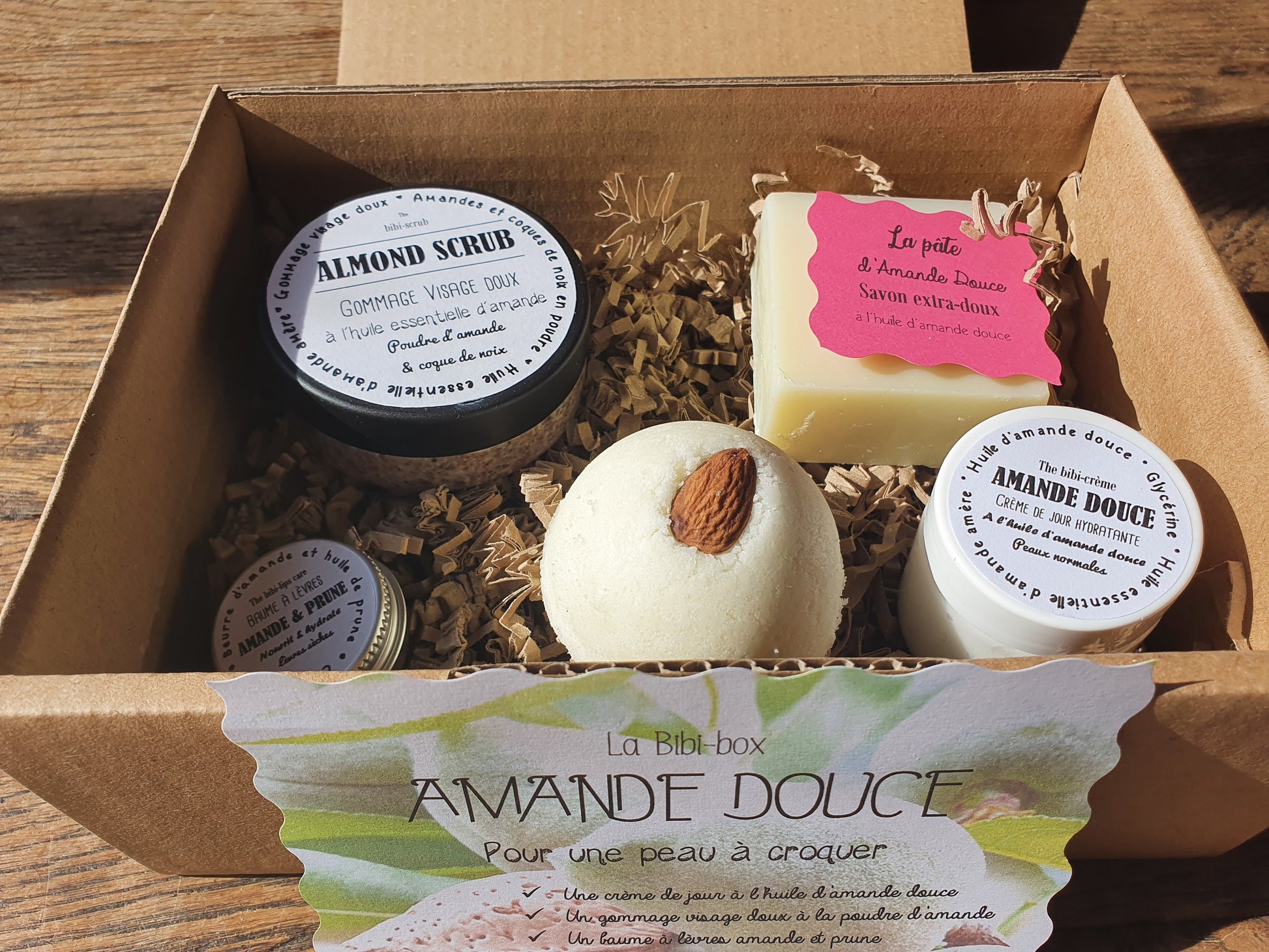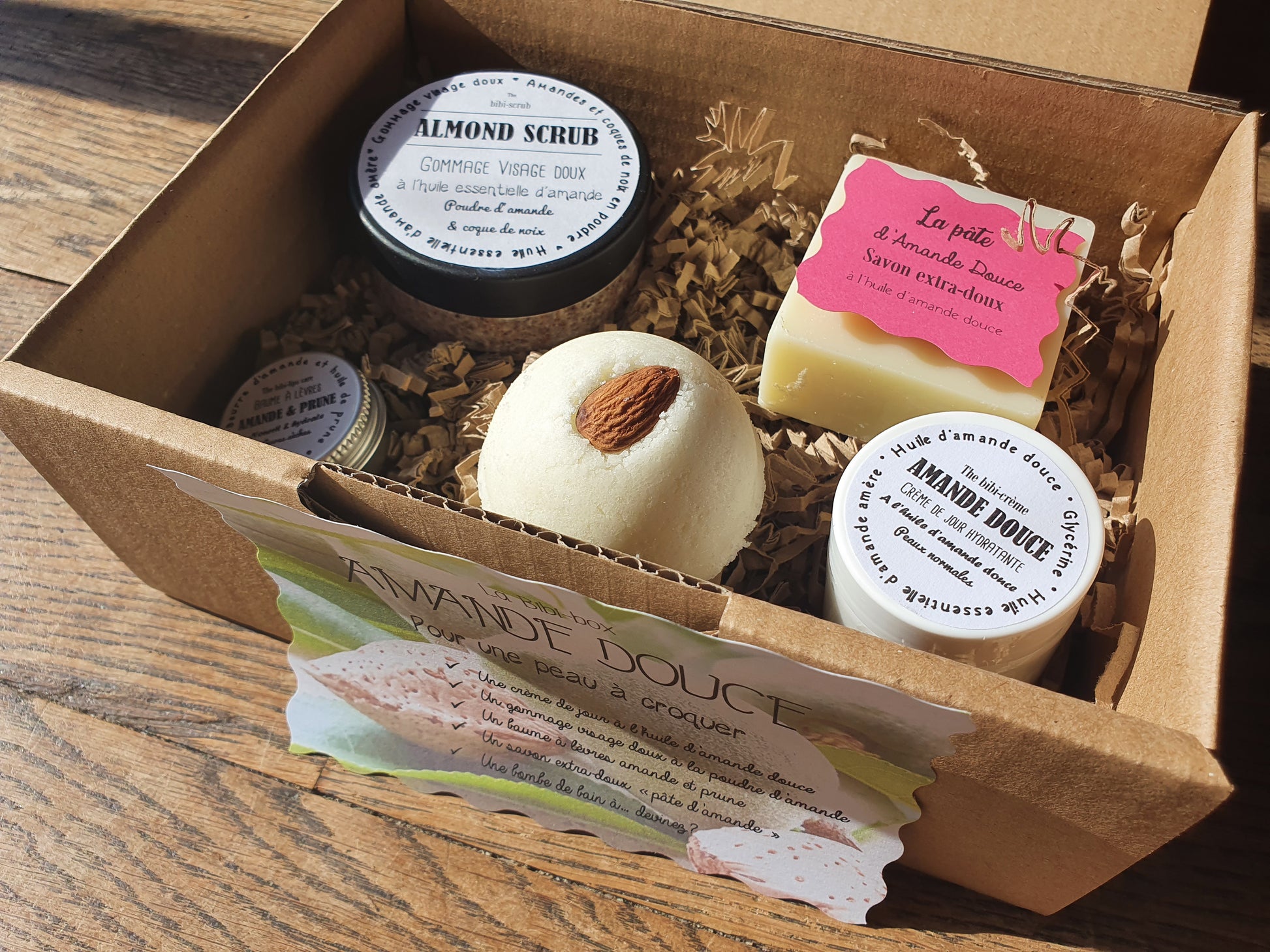 La "Amande douce box", coffret ou boîte cadeau de soins complets à l'amande douce pour une hydratation optimale