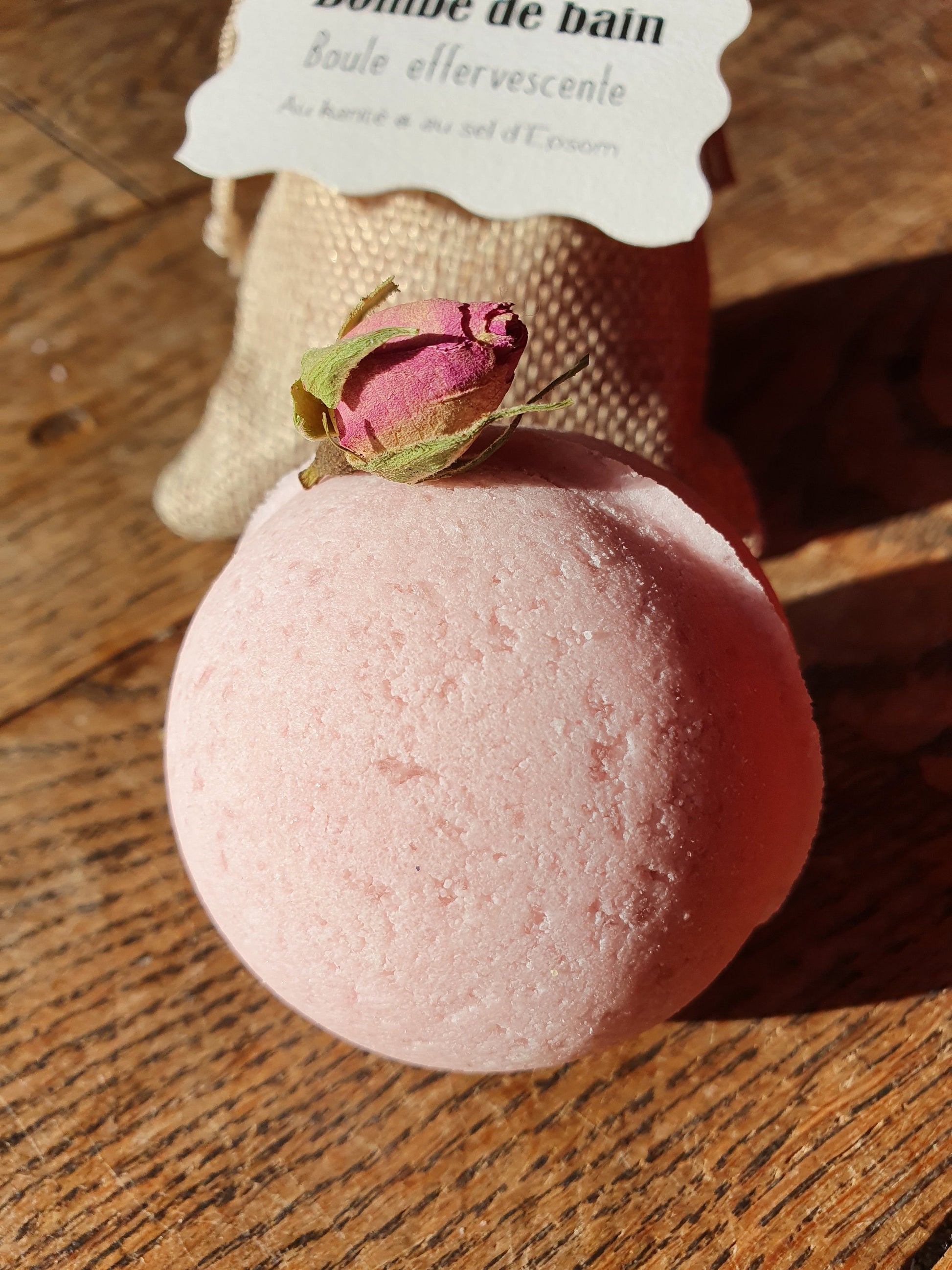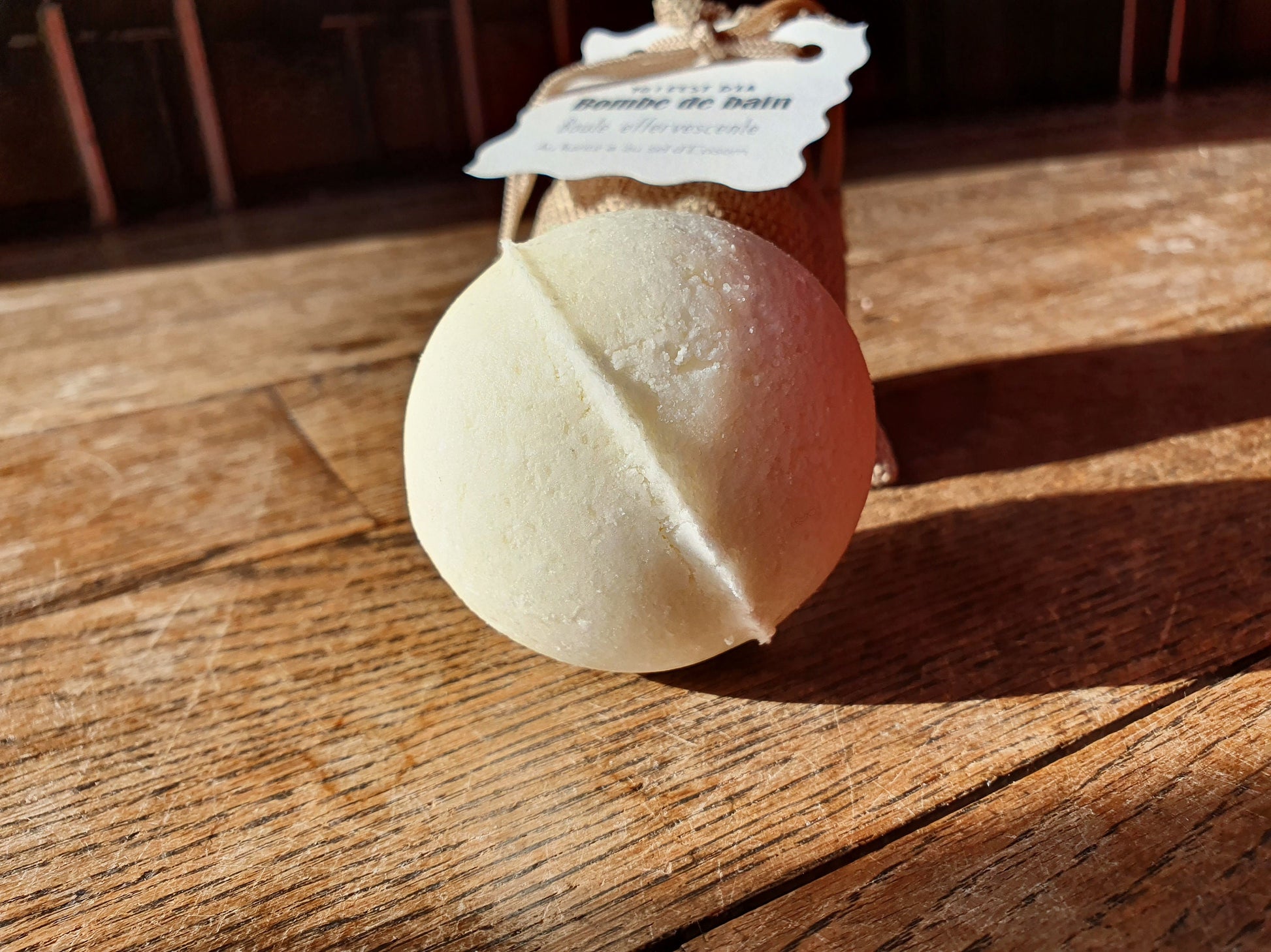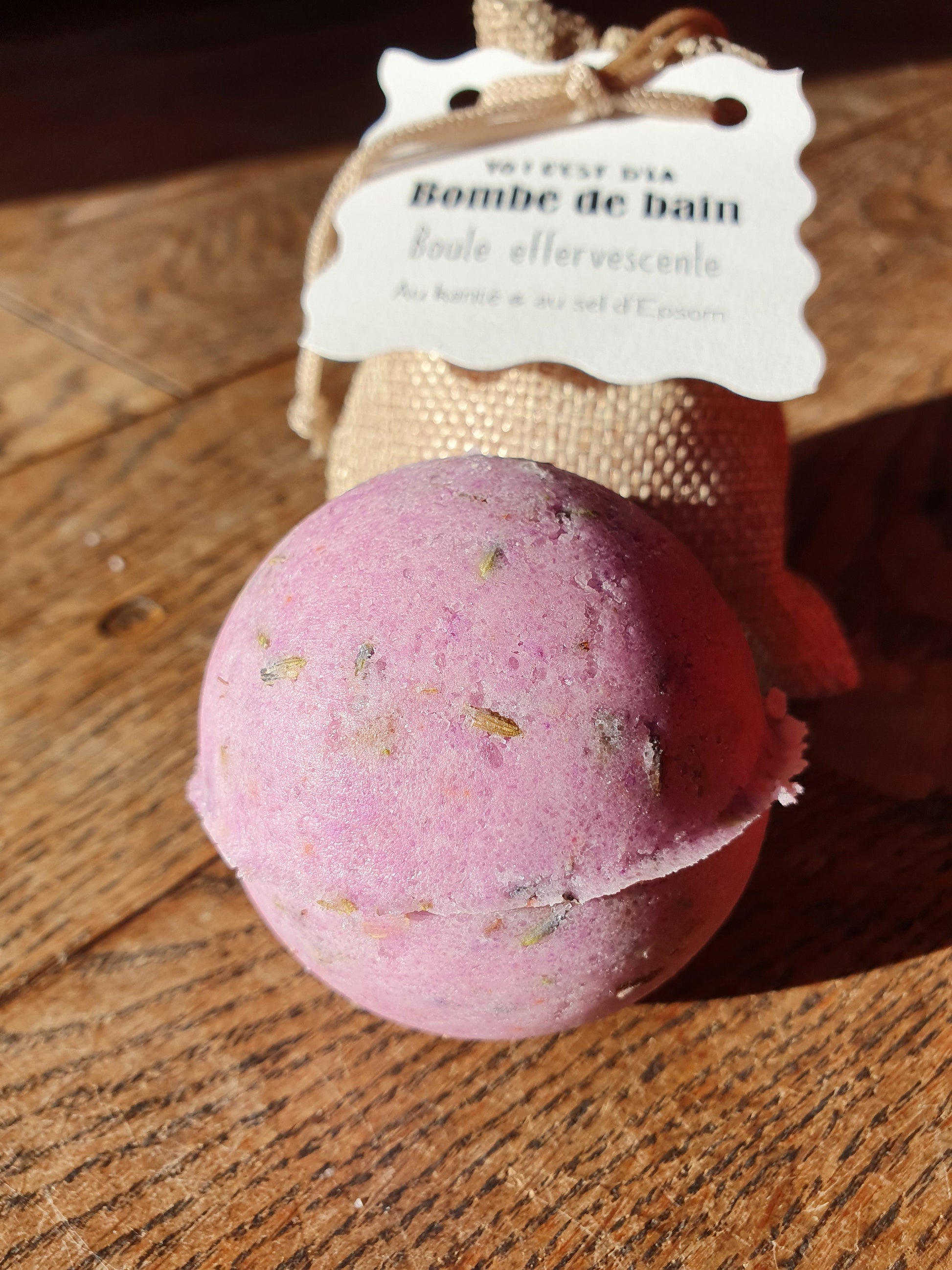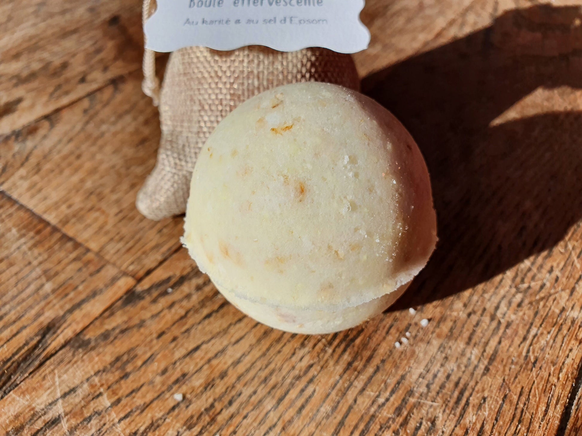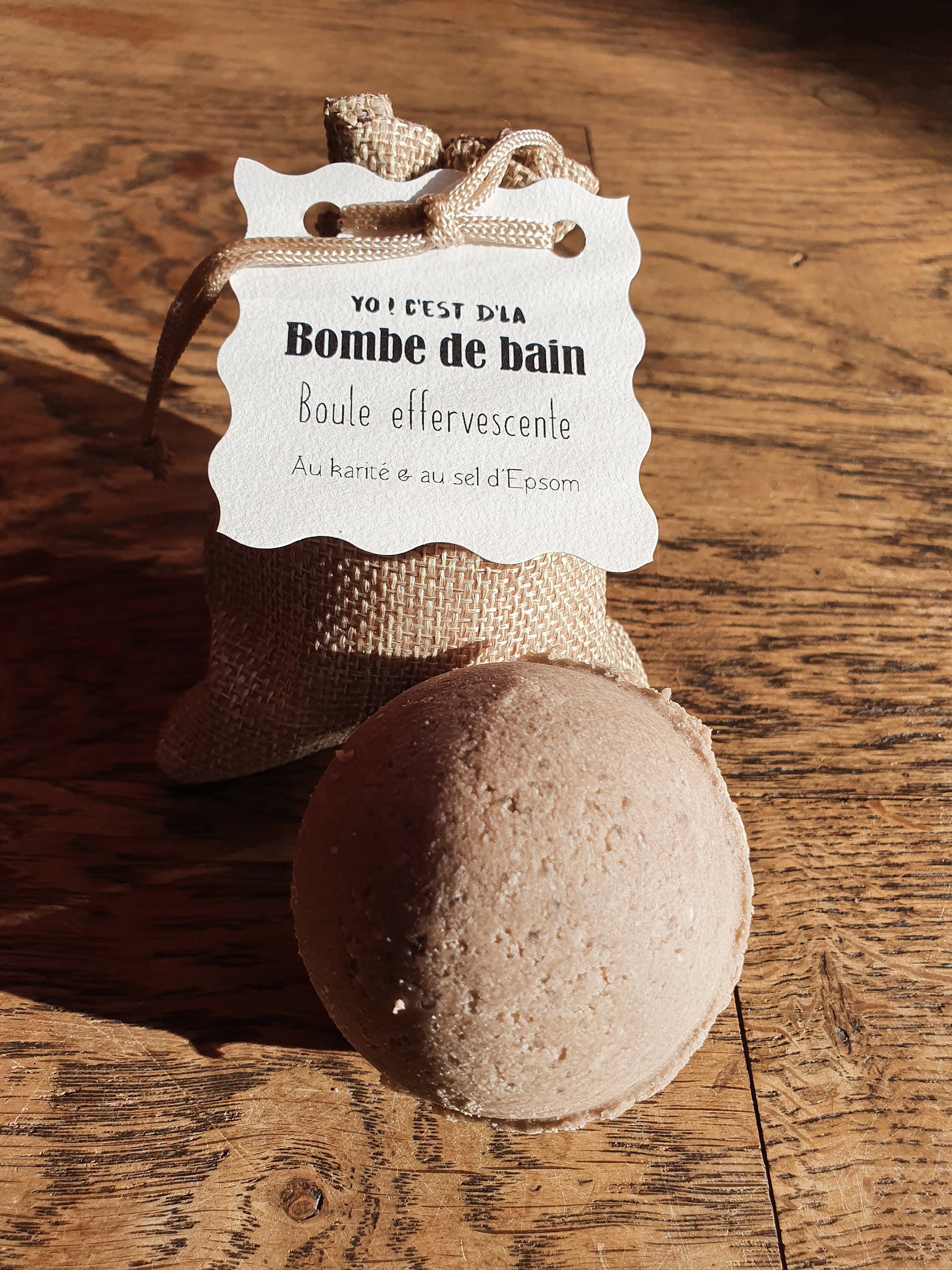 La boule de bain effervescente "Yo ! C'est d'la bombe de bain !" au beurre de karité et au sel d'Epsom relaxant, parfumée au choix