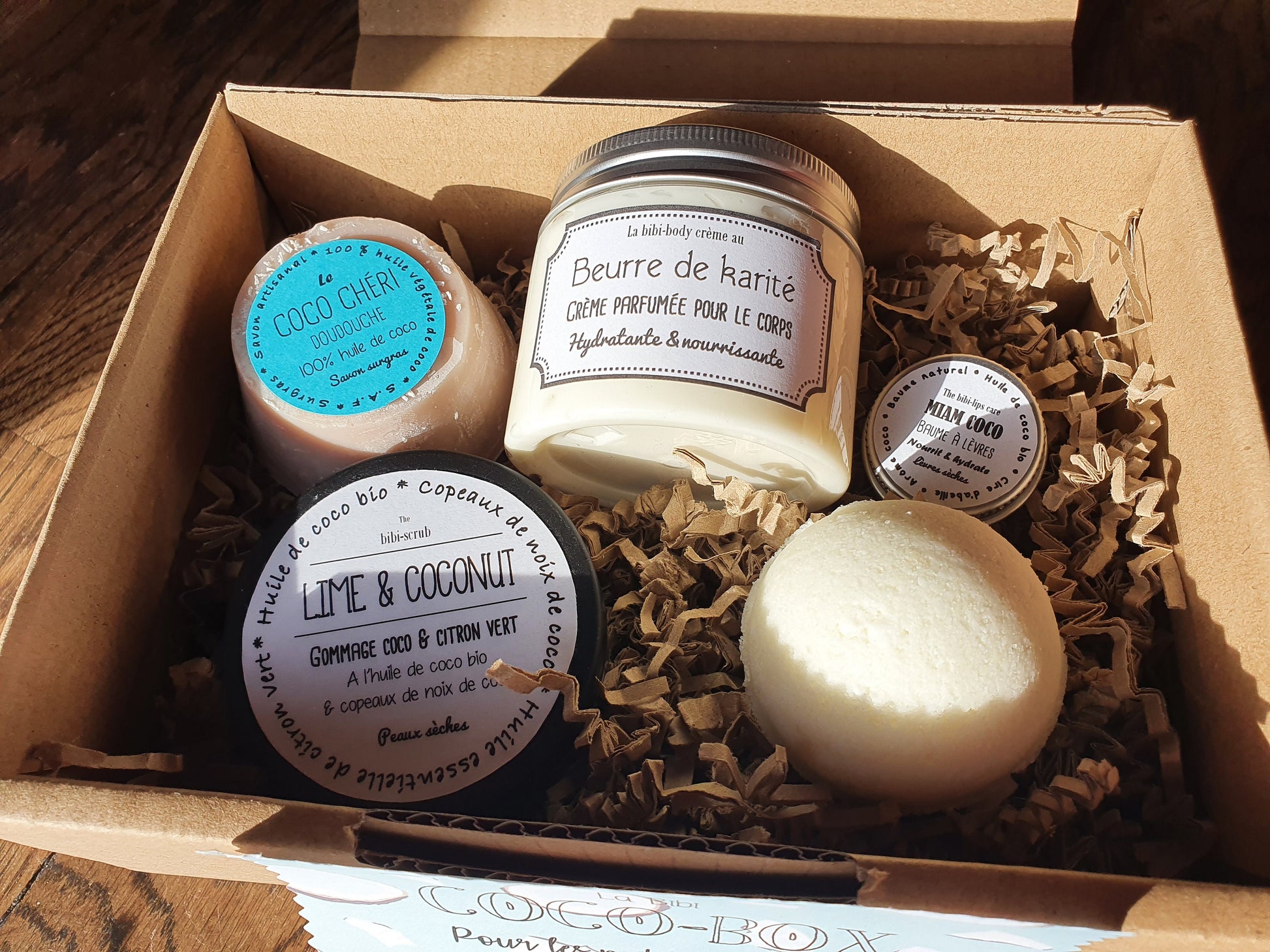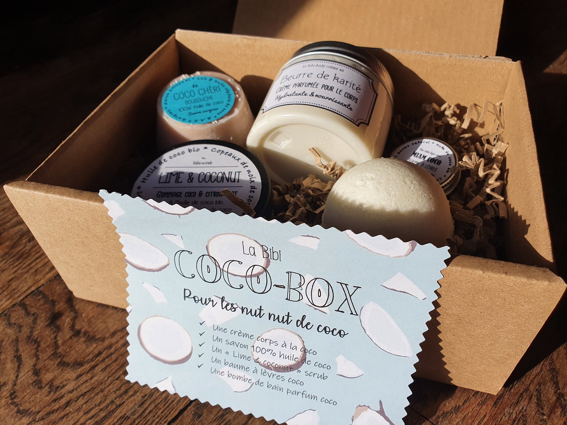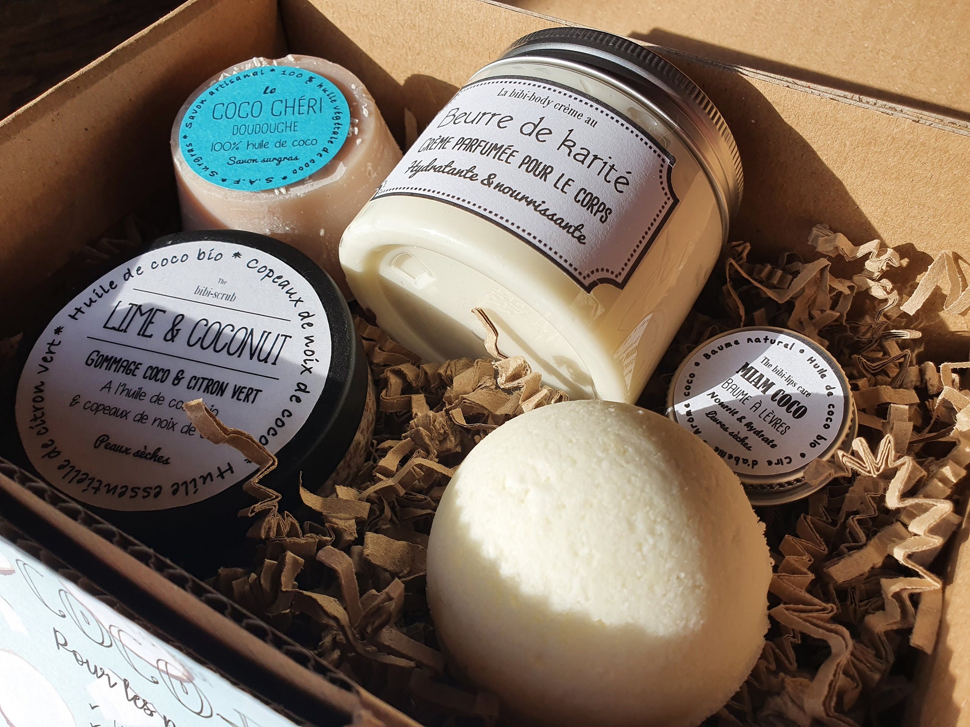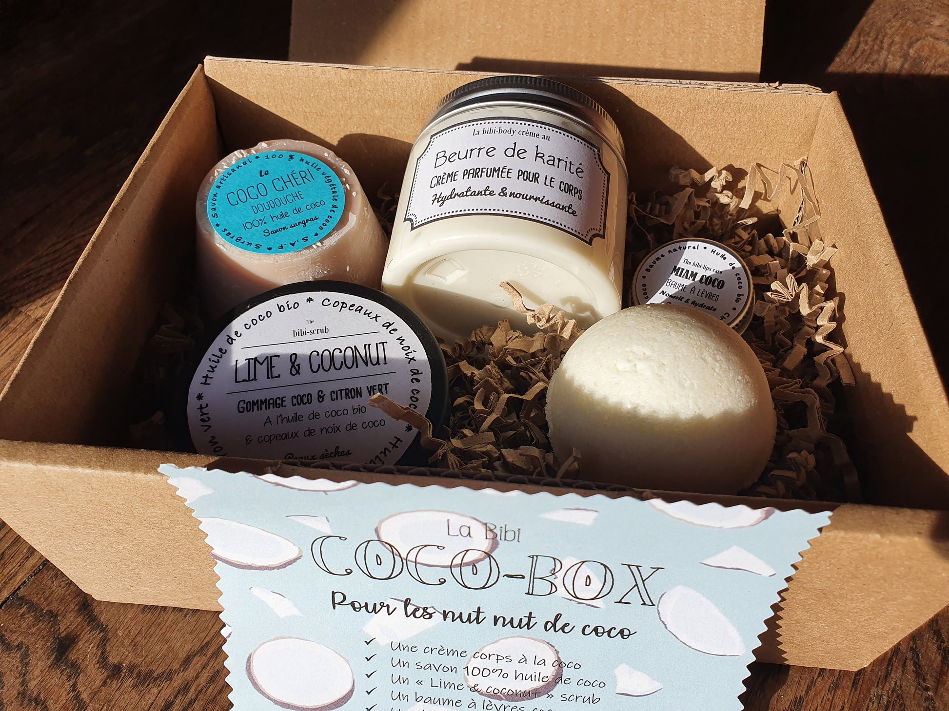 La "Coco-box", coffret ou boîte cadeau de soins complets ultra gourmands à la noix de coco