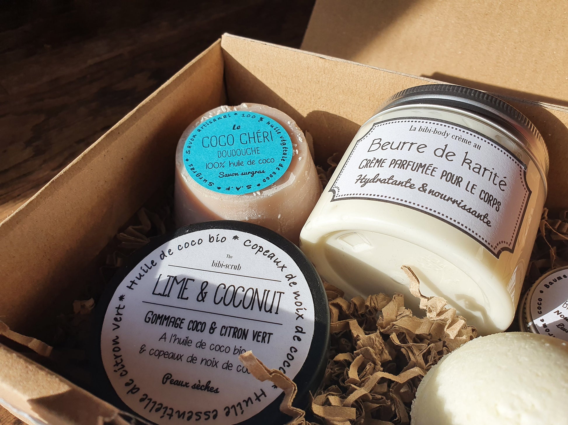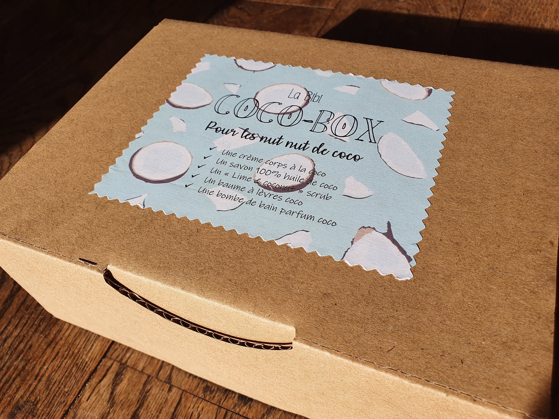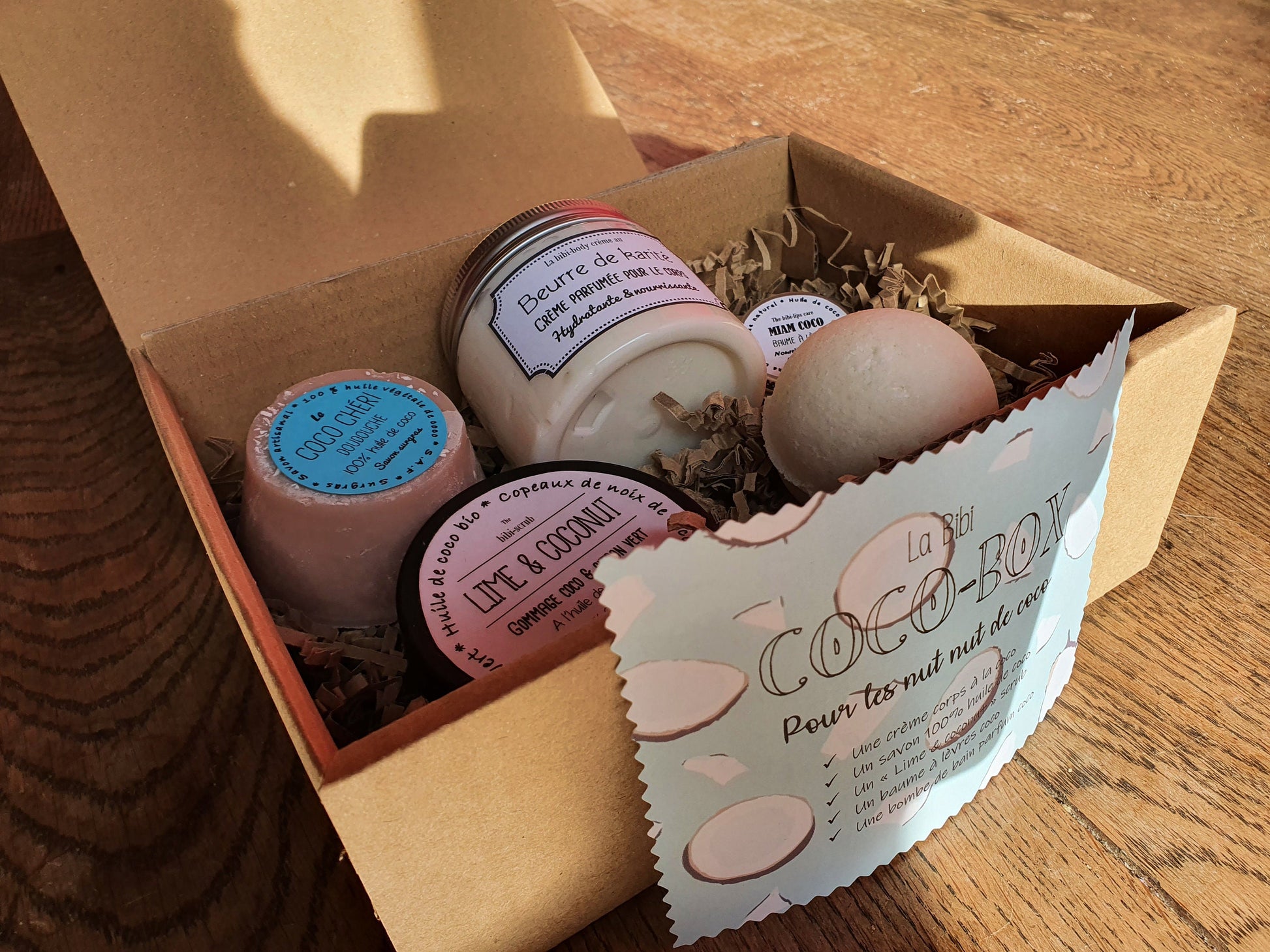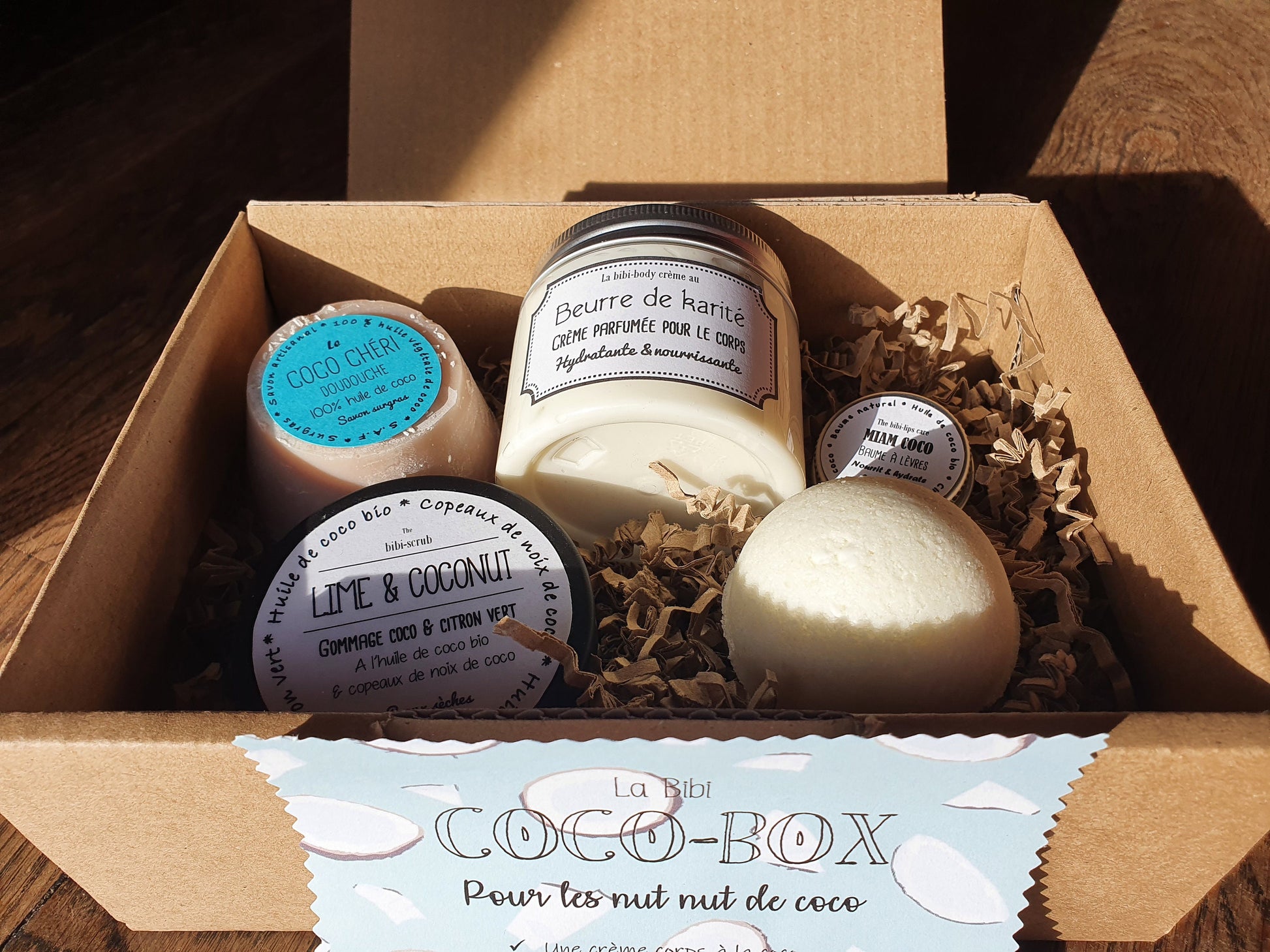 La "Coco-box", coffret ou boîte cadeau de soins complets ultra gourmands à la noix de coco