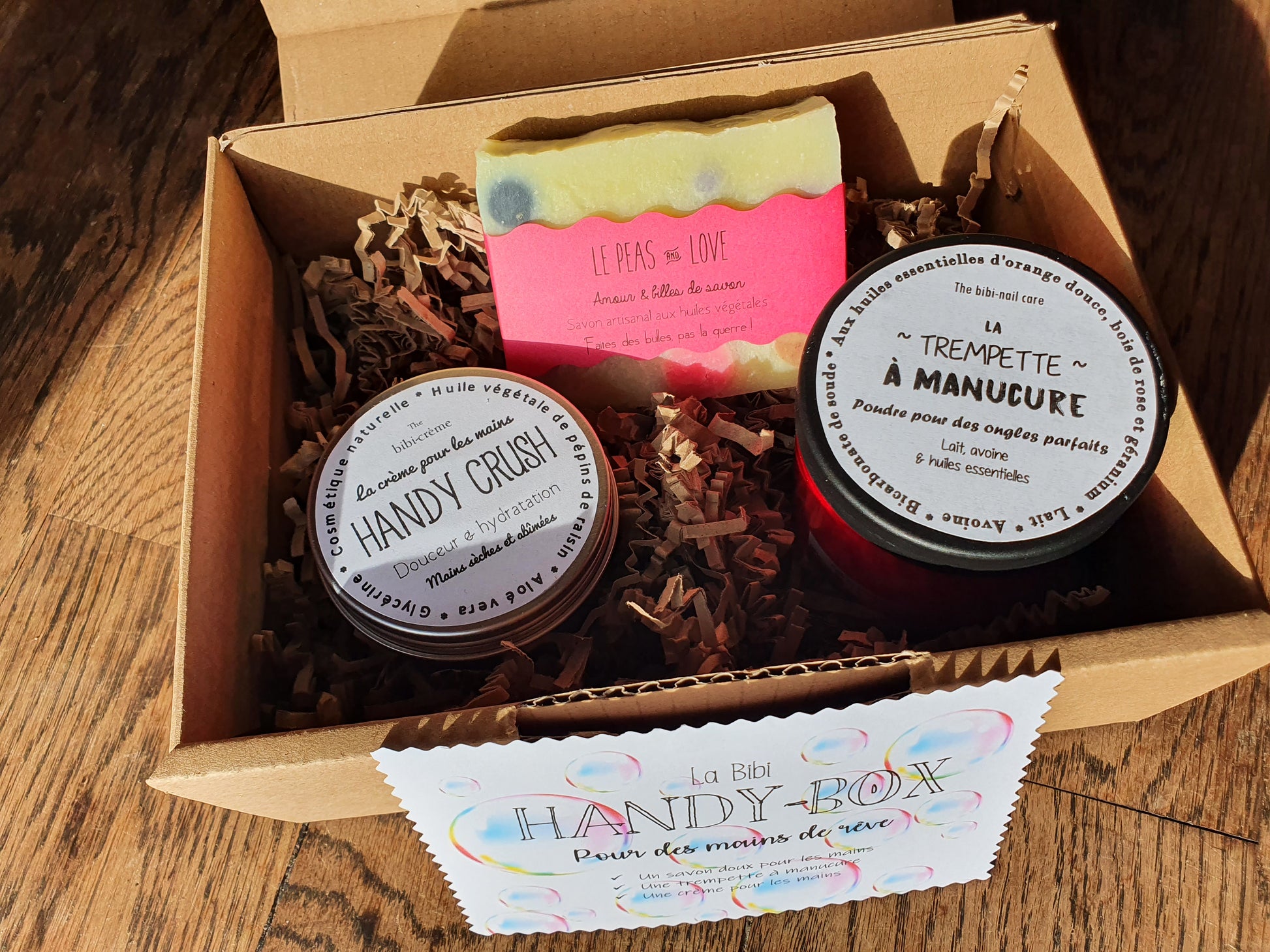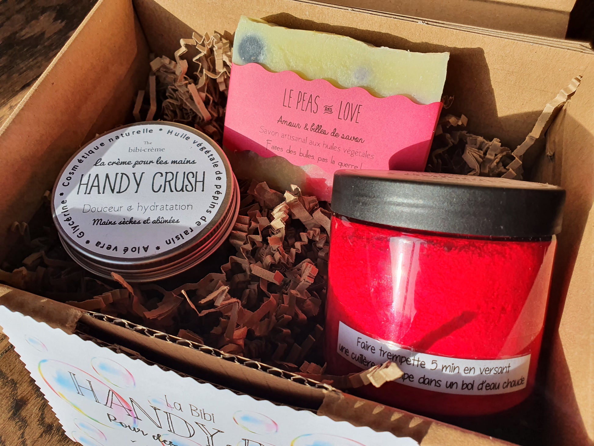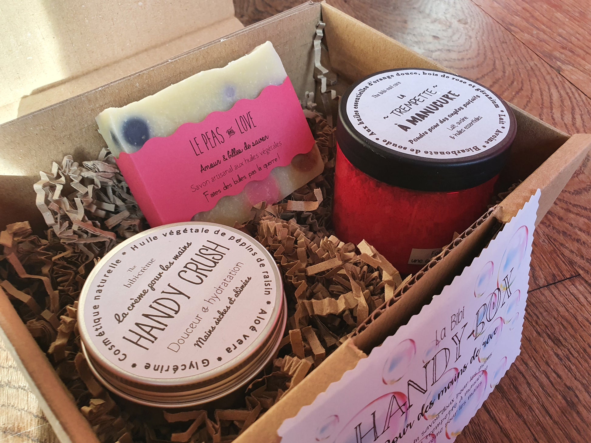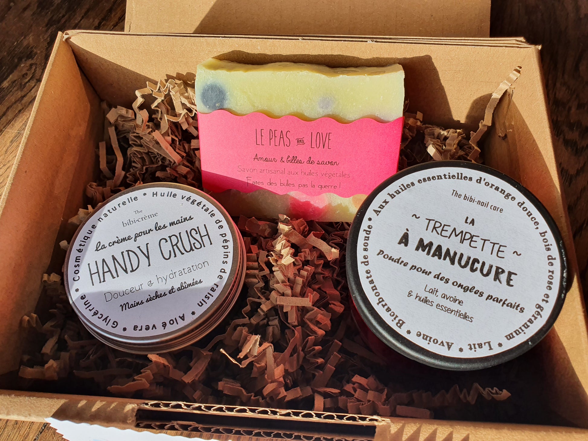 Box ou coffret ou boîte cadeau spécialement pensée pour les mains. Elle contient :