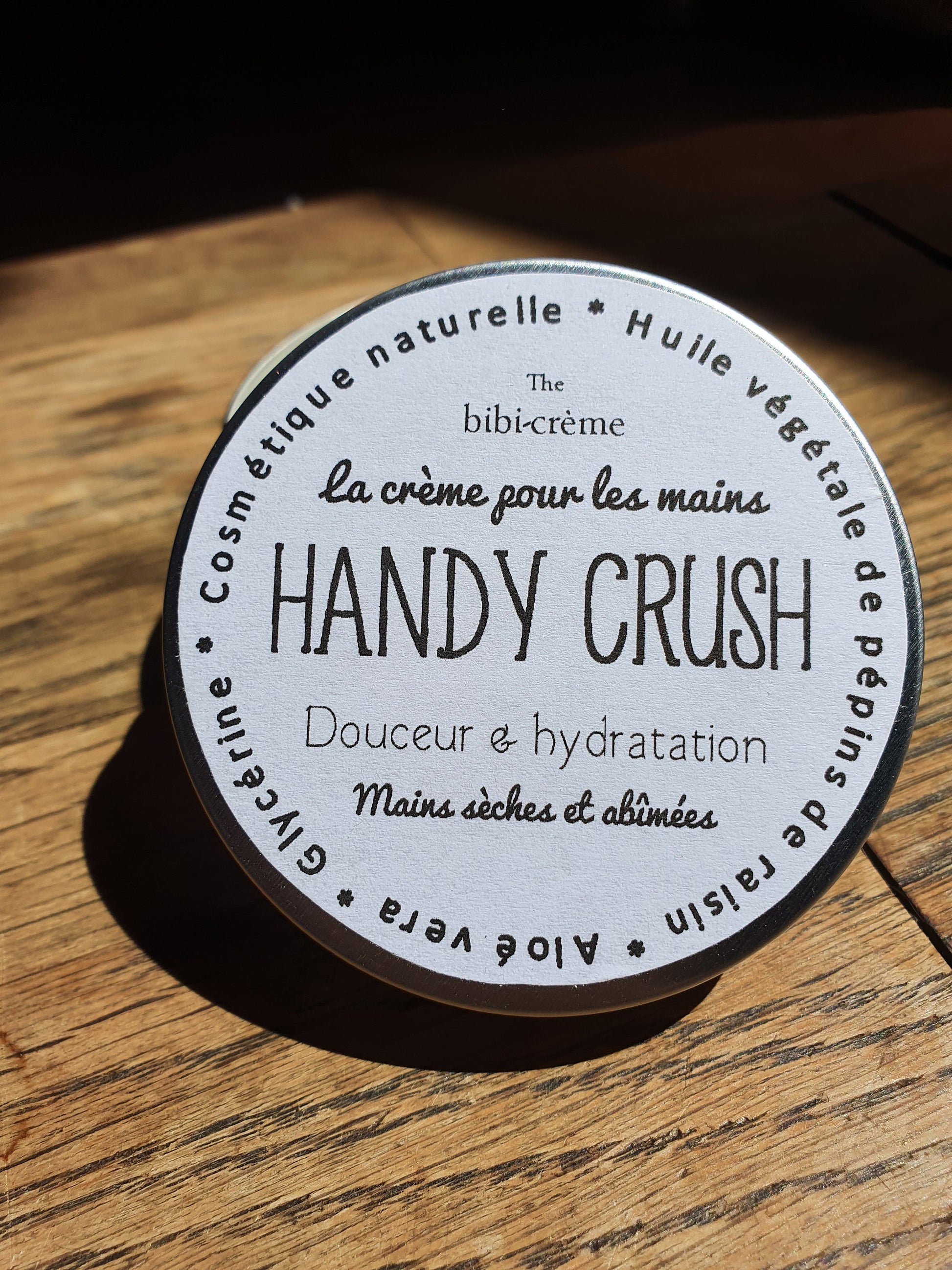 La "Handy Crush", crème pour les mains sèches et abîmées à l'huile de pépins de raisin et à l'aloe vera, douce et hydratante