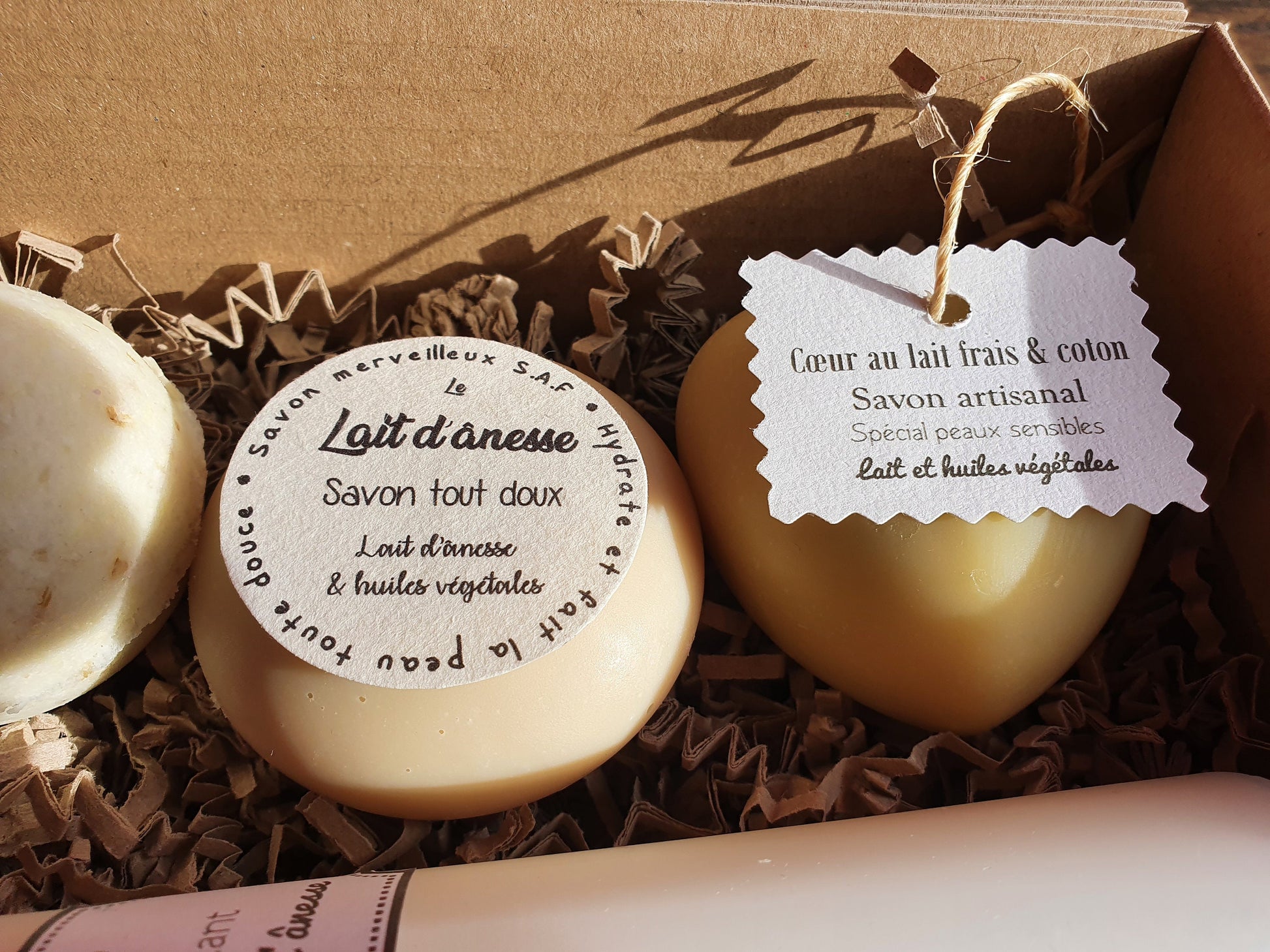 - un savon au lait d'ânesse pour la toilette du corps et du visage ultradoux (c'est bien simple : plus doux y'a pas). Et en plus il sent bon.