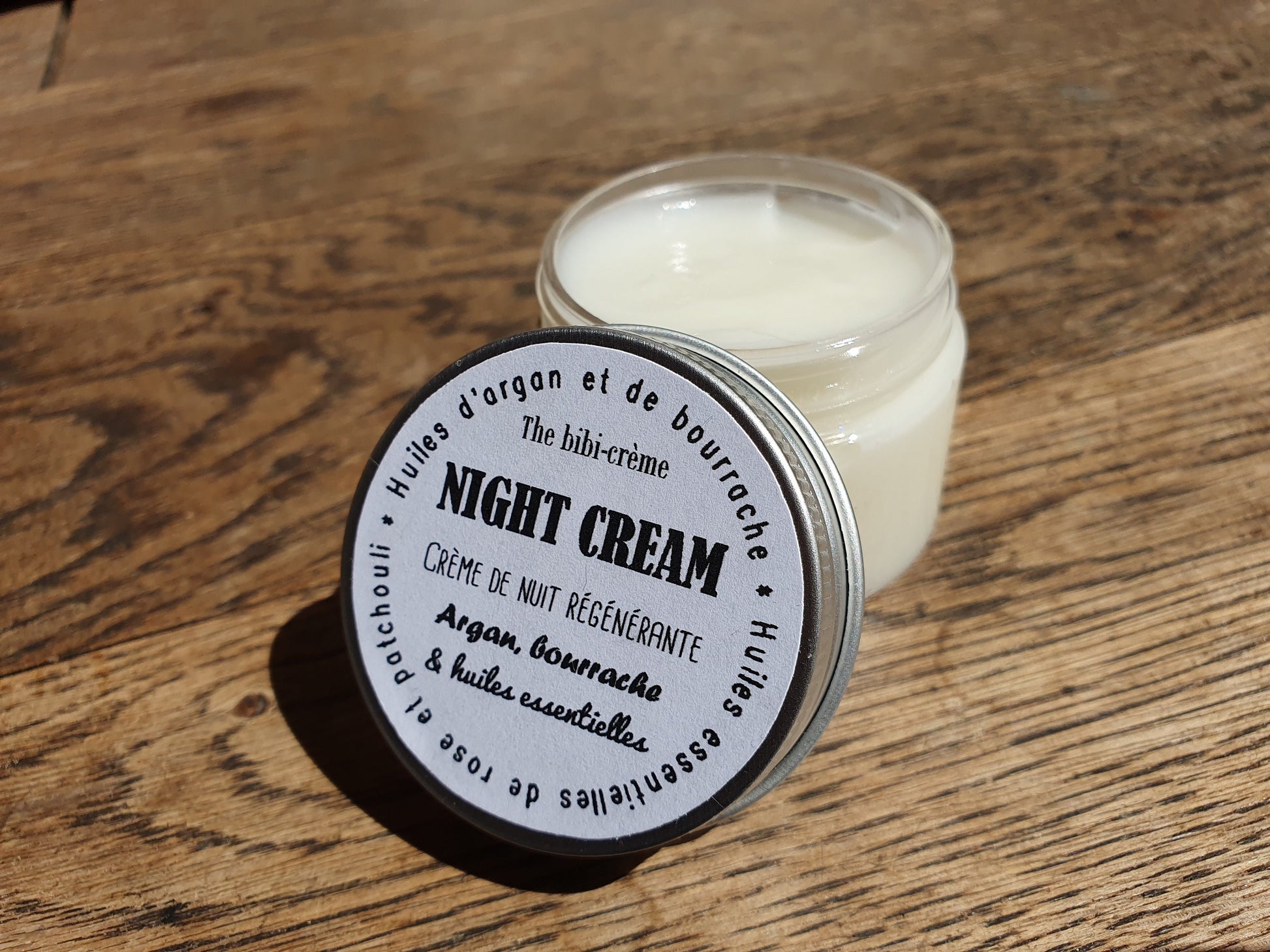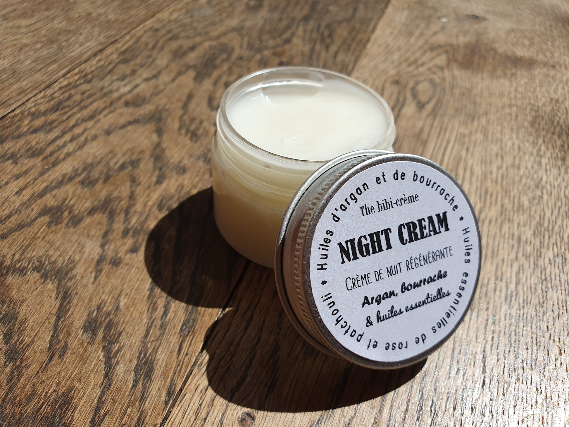 La "Night cream", crème de nuit régénérante aux huiles essentielles et à l'huile d'argan et de bourrache