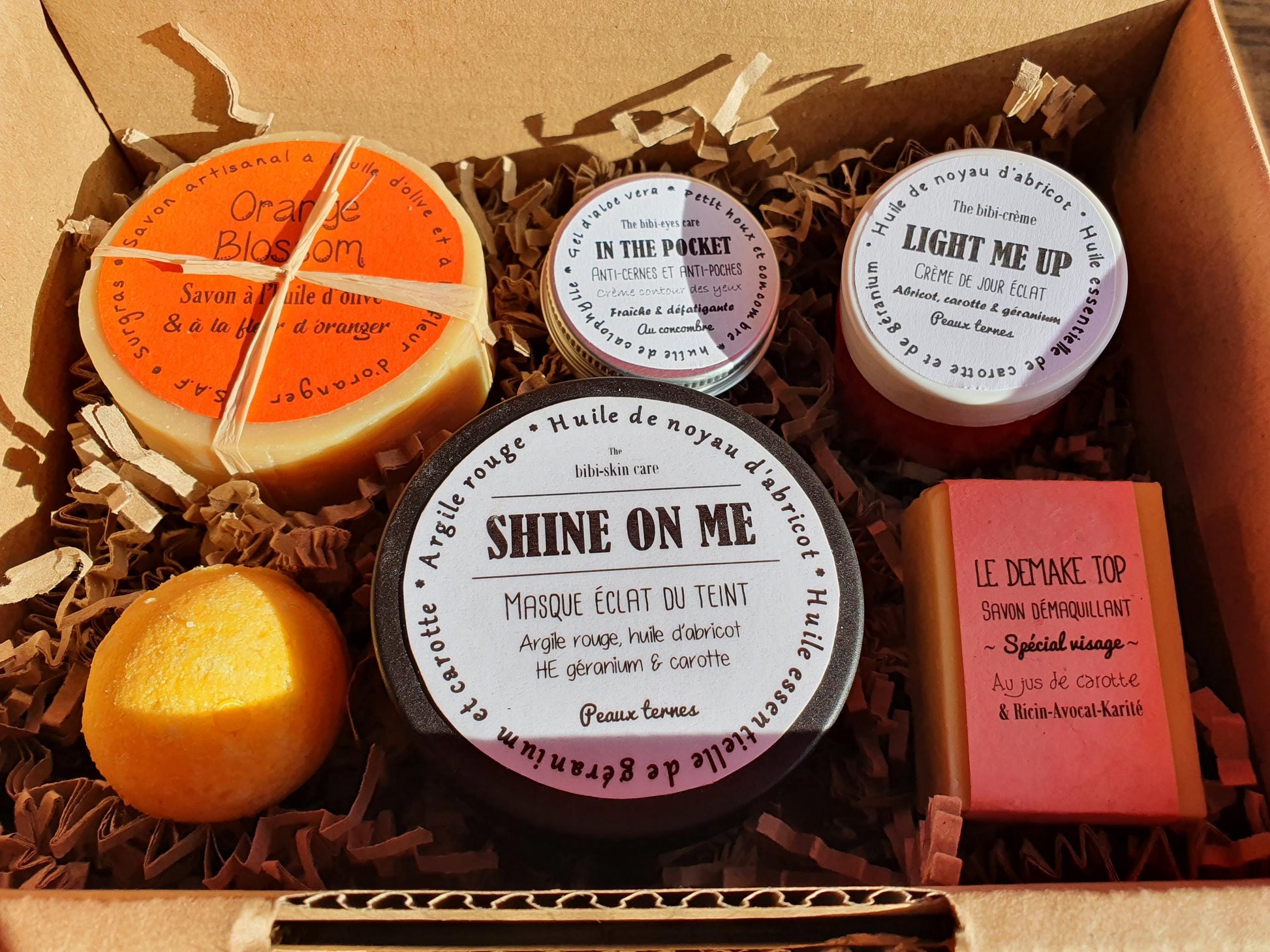 Box, ou boîte, ou coffret cadeau pour les peaux en manque d'éclat qui ont envie de soleil comprenant :