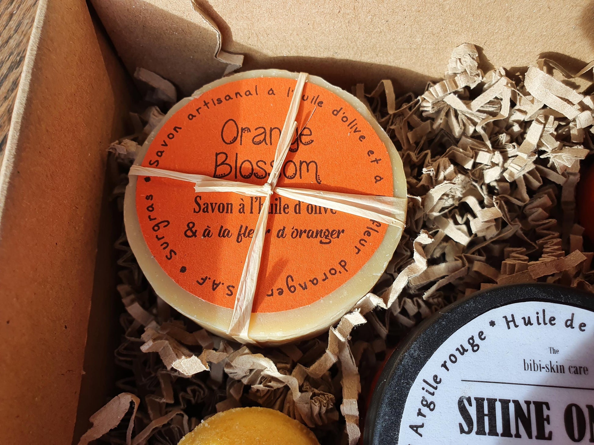 - un savon à la fleur d'oranger parce qu'il est orange, il est beau, il est lumineux, biodégradable, à l'huile d'olive et qu'il super bon ! (J'ai encore d'autres arguments si besoin).