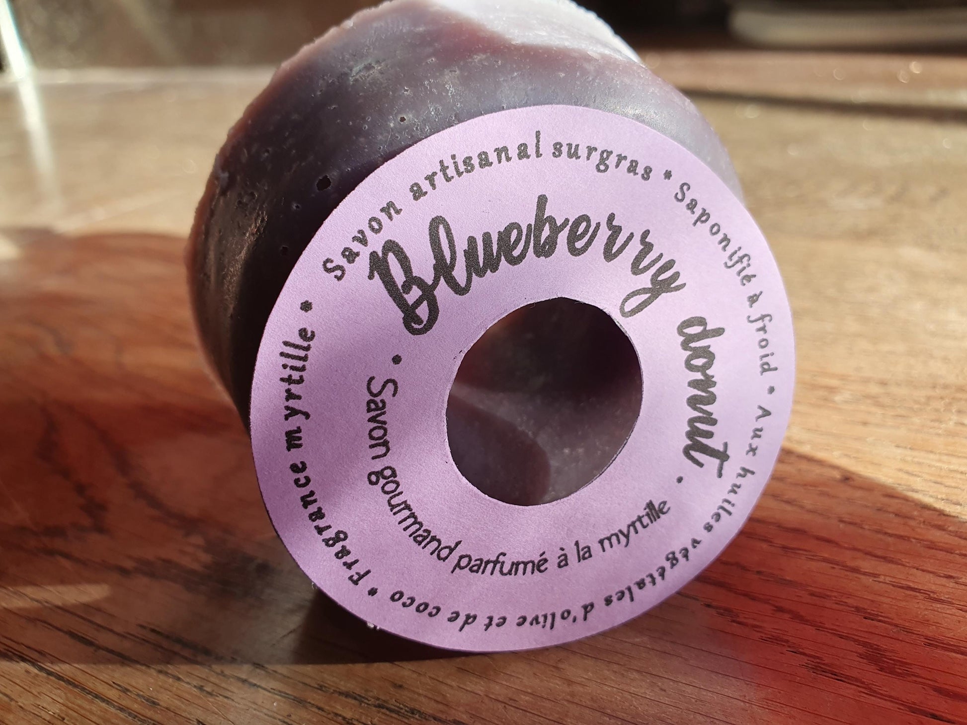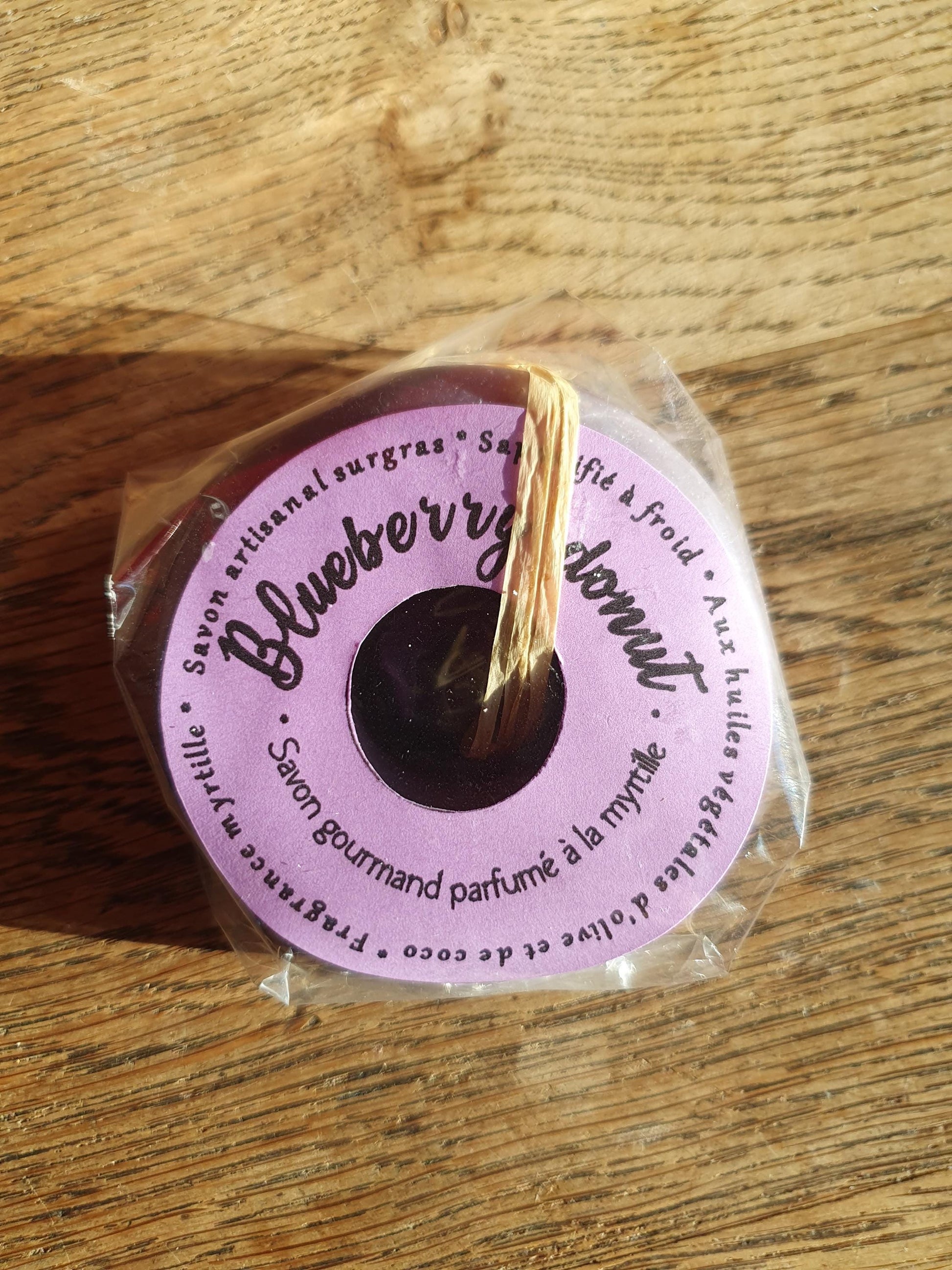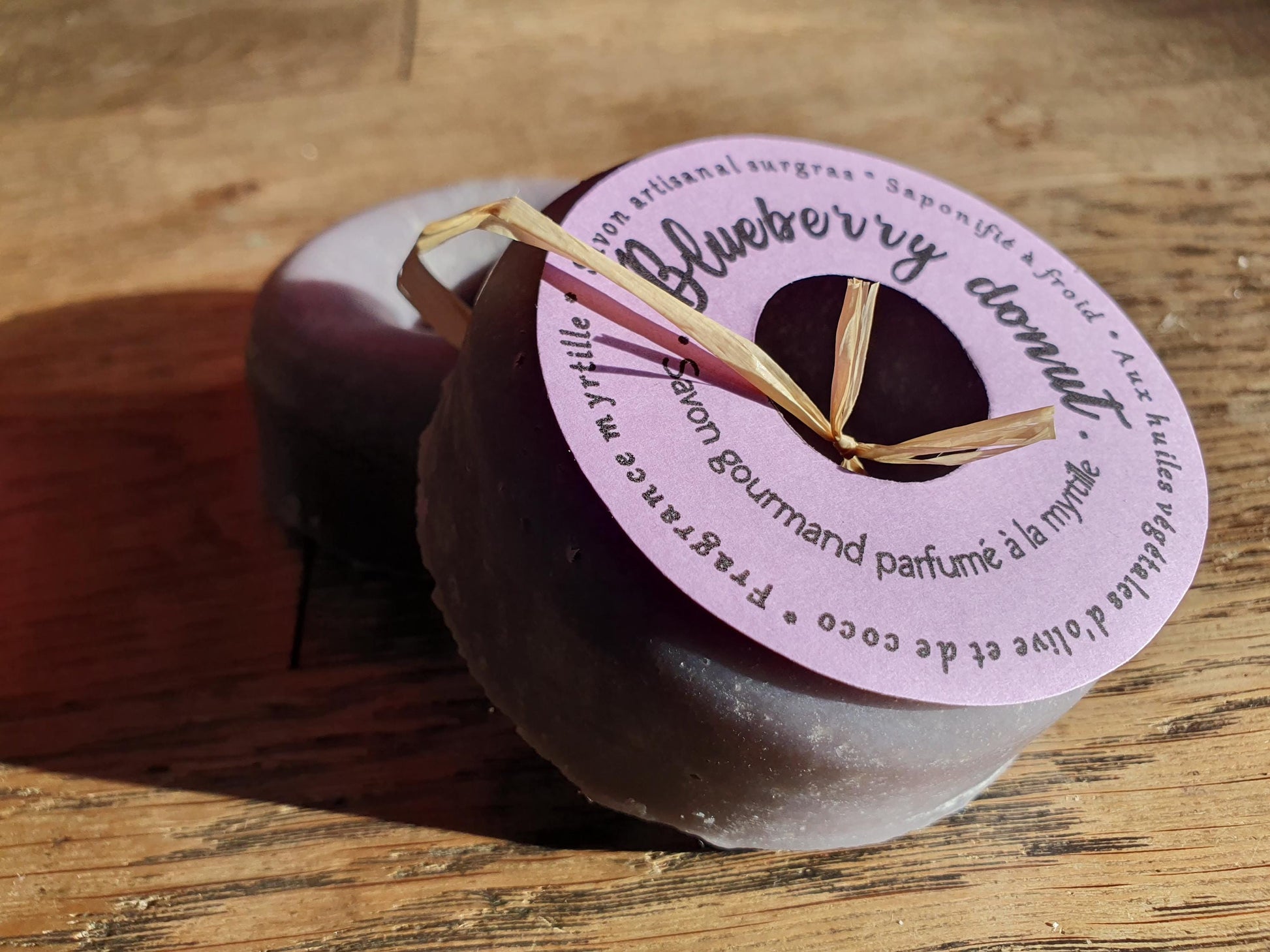 Le "Blueberry donut", savon artisanal surgras saponifié à froid parfumé à la myrtille