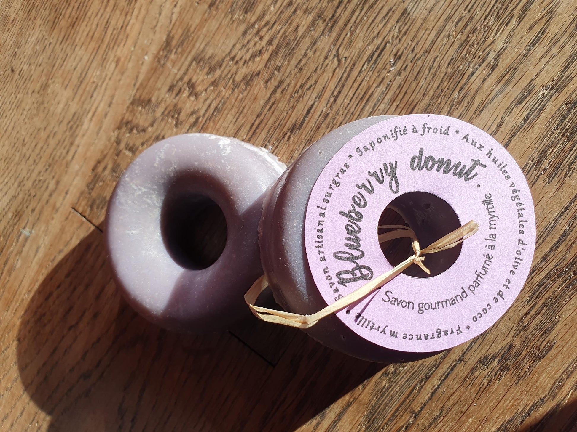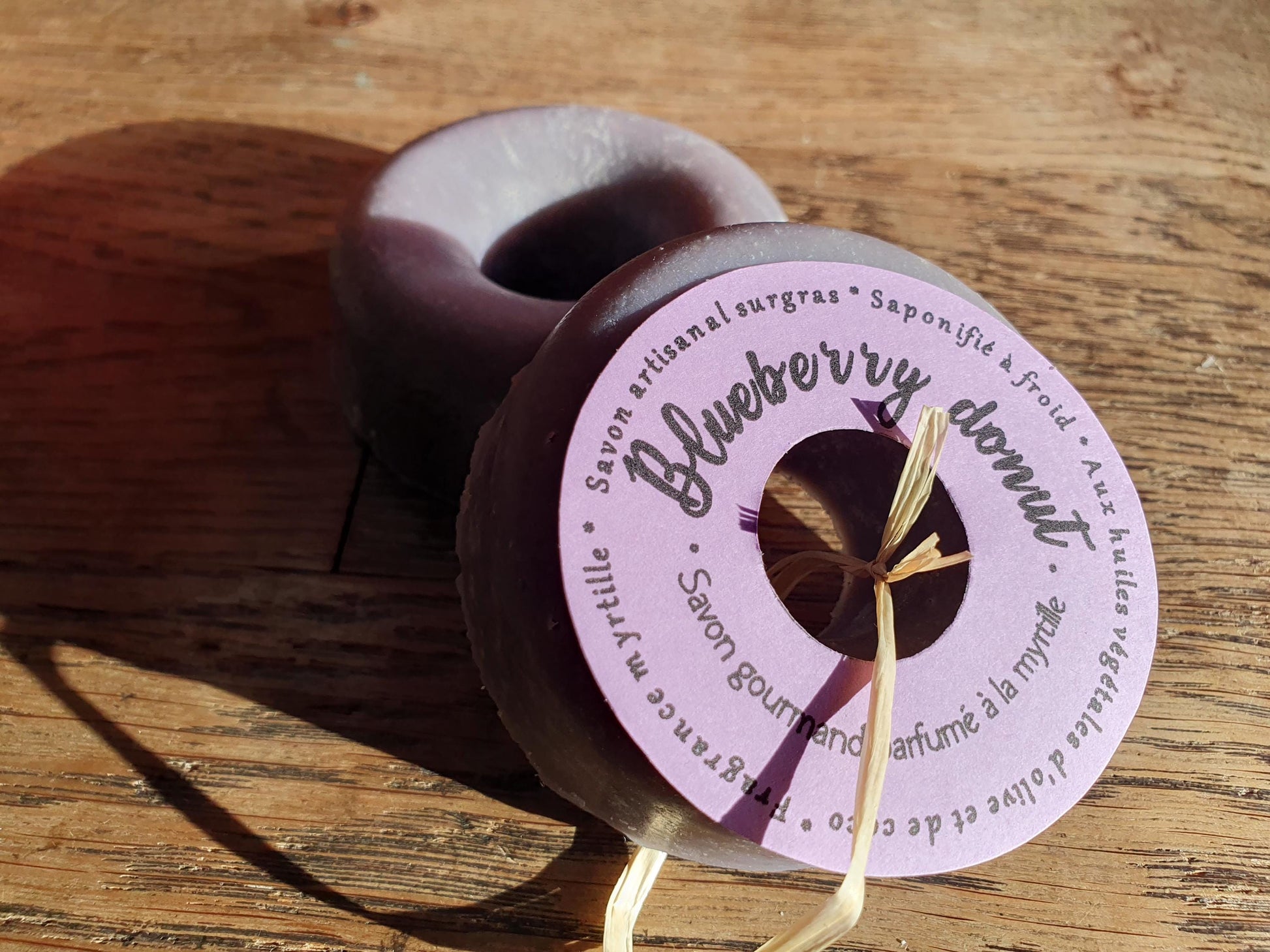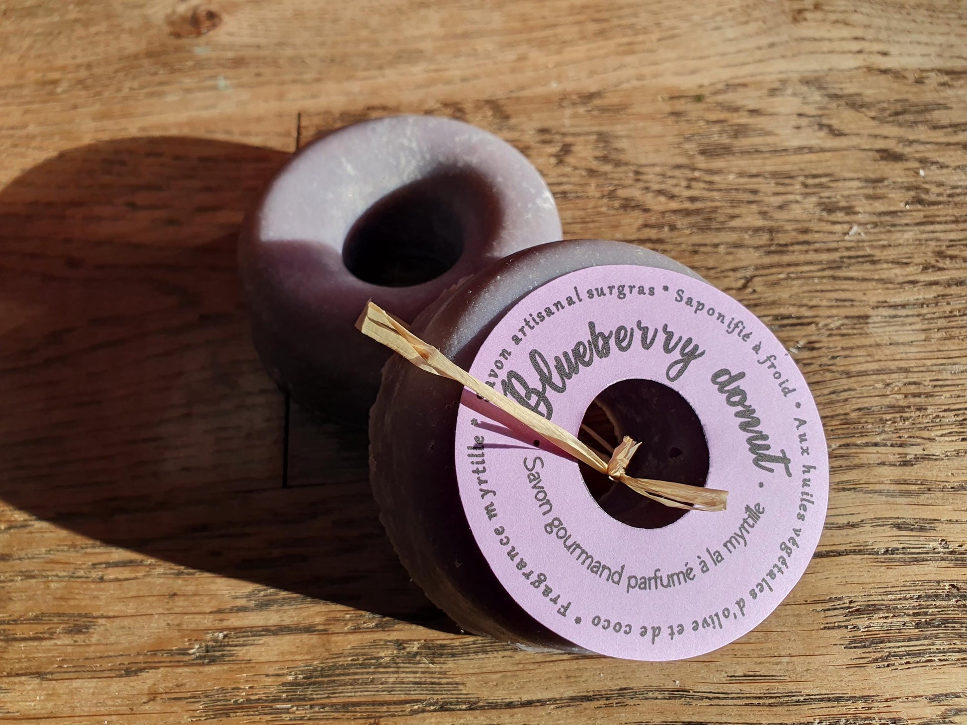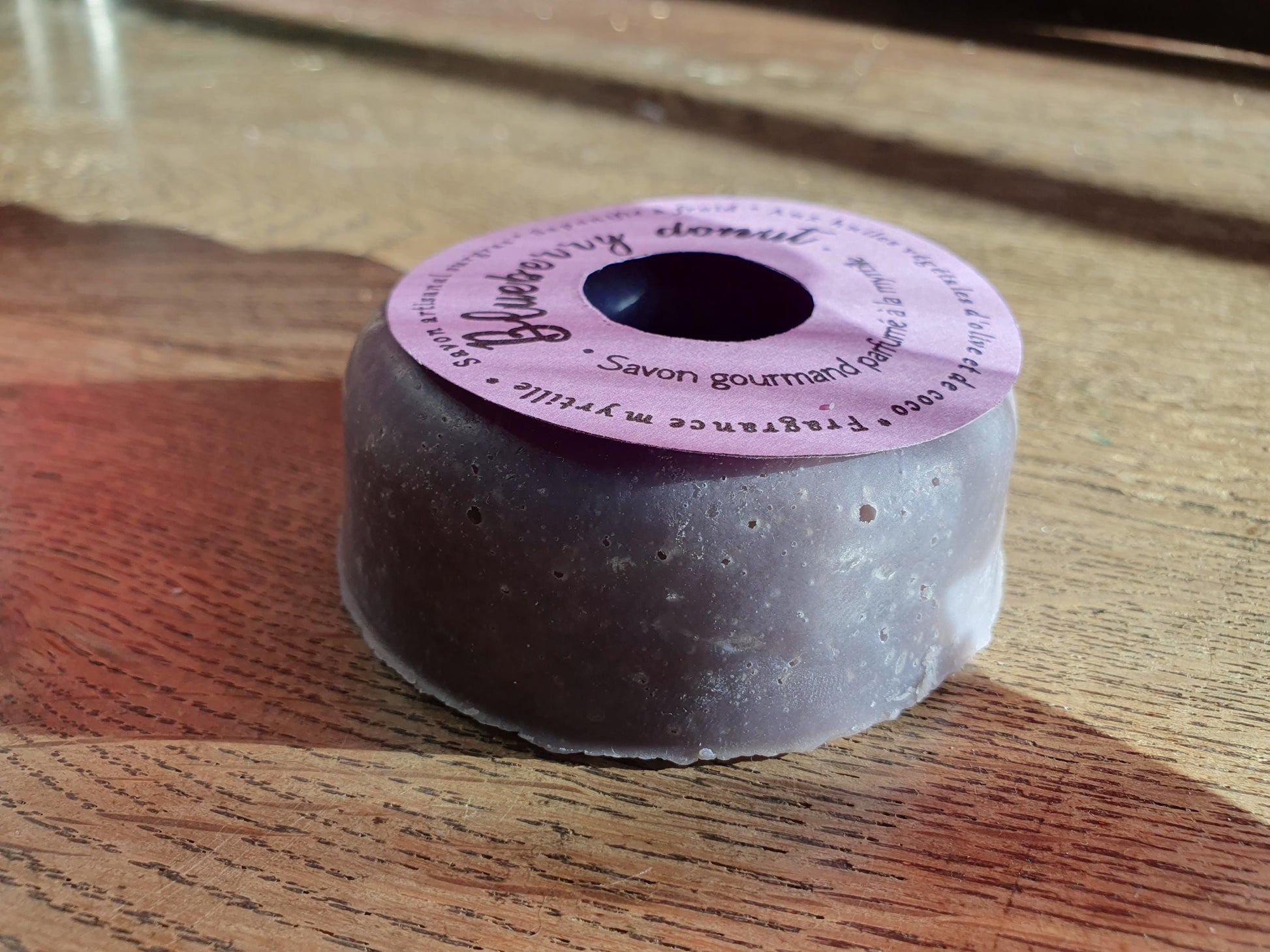 Le "Blueberry donut", savon artisanal surgras saponifié à froid parfumé à la myrtille