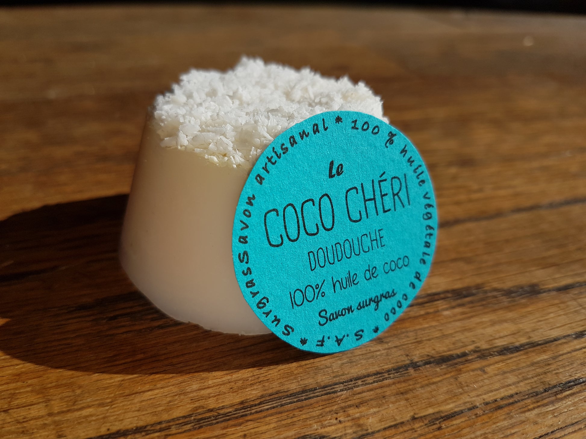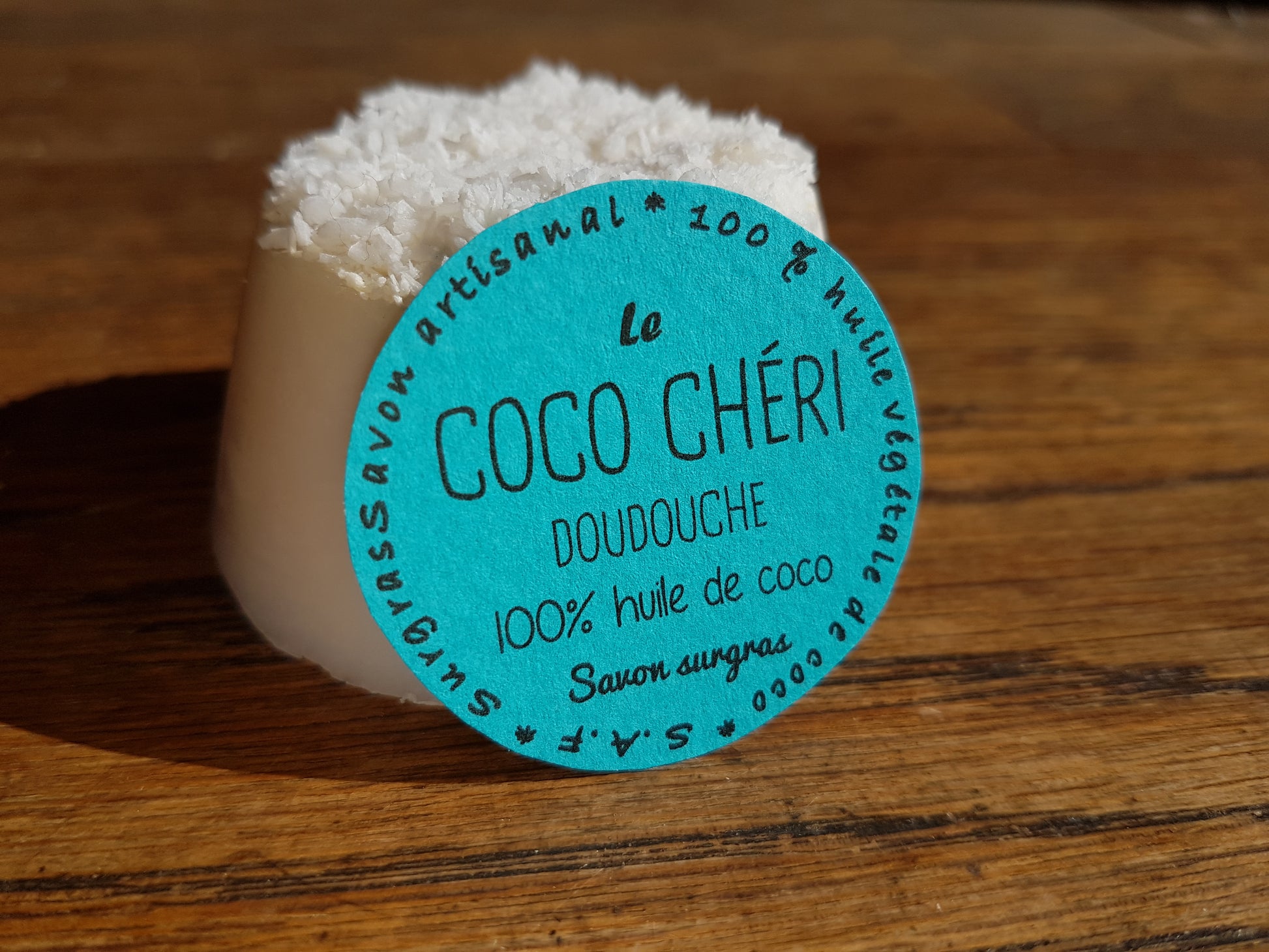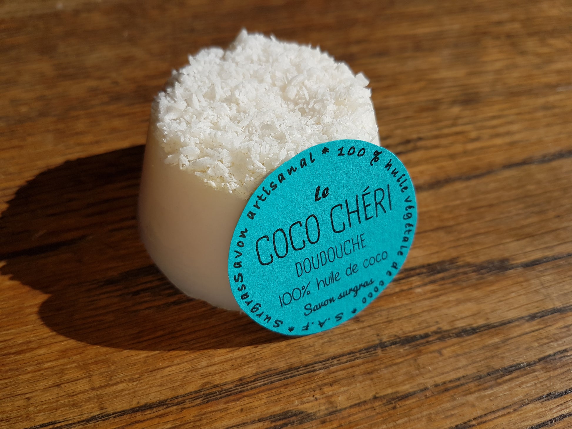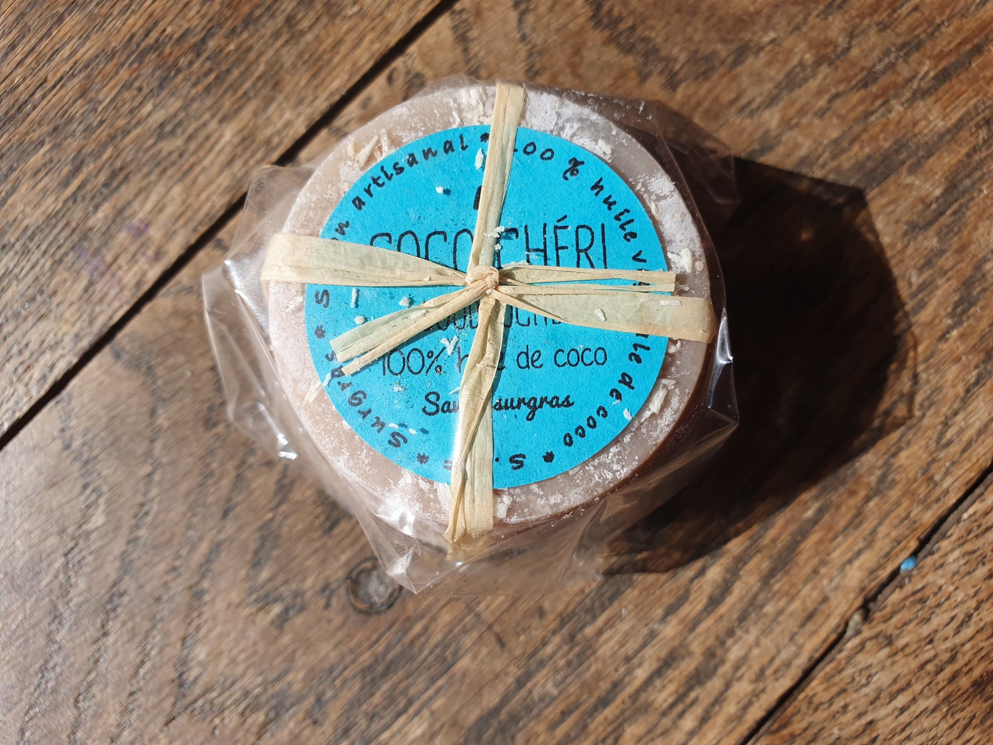 Le "Coco Chéri Doudouche", savon artisanal saponifié à froid très surgras 100% huile de coco et fragrance coco