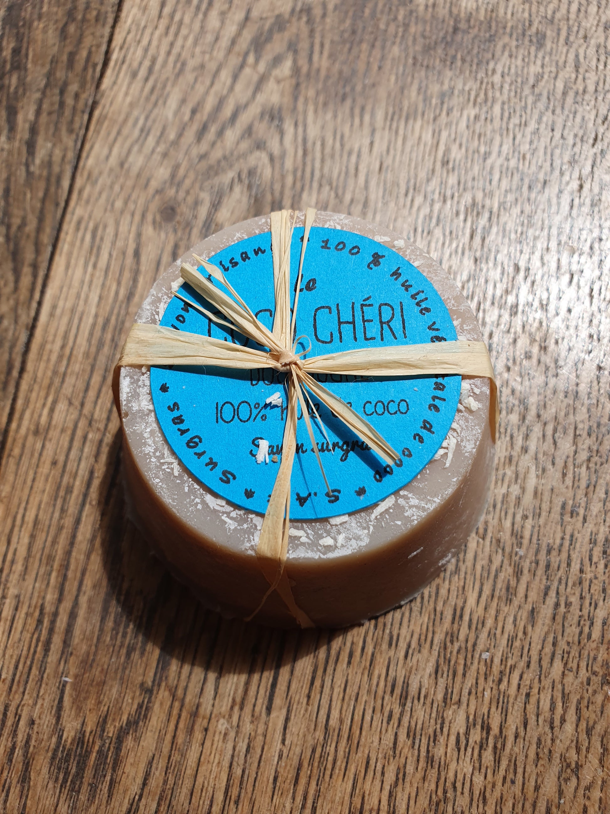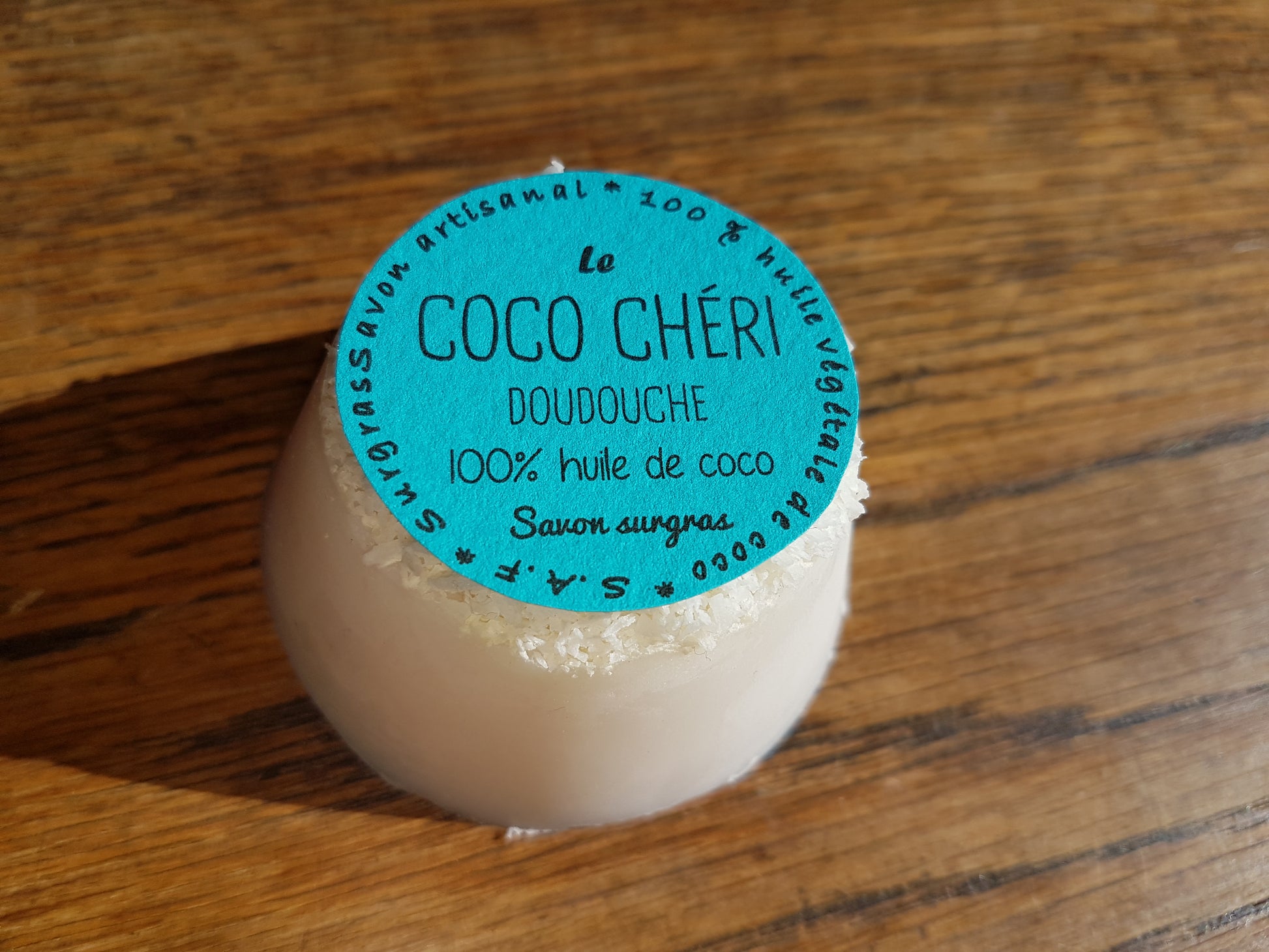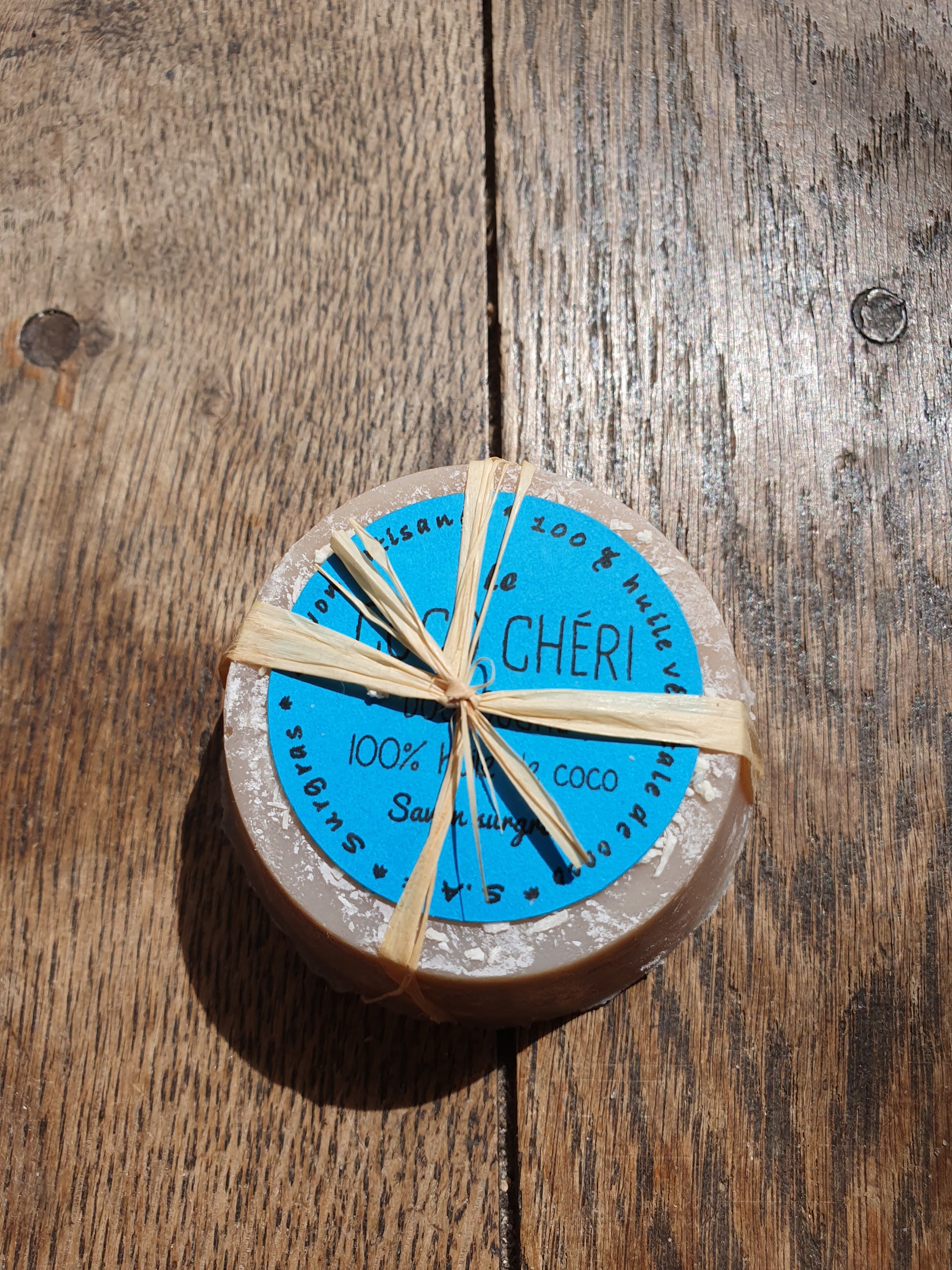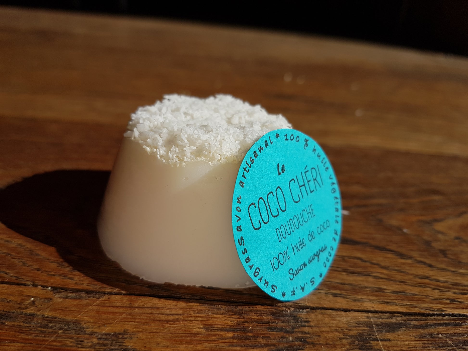 Le "Coco Chéri Doudouche", savon artisanal saponifié à froid très surgras 100% huile de coco et fragrance coco