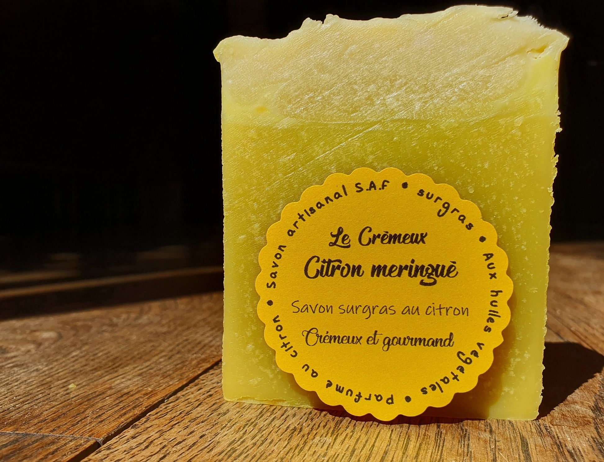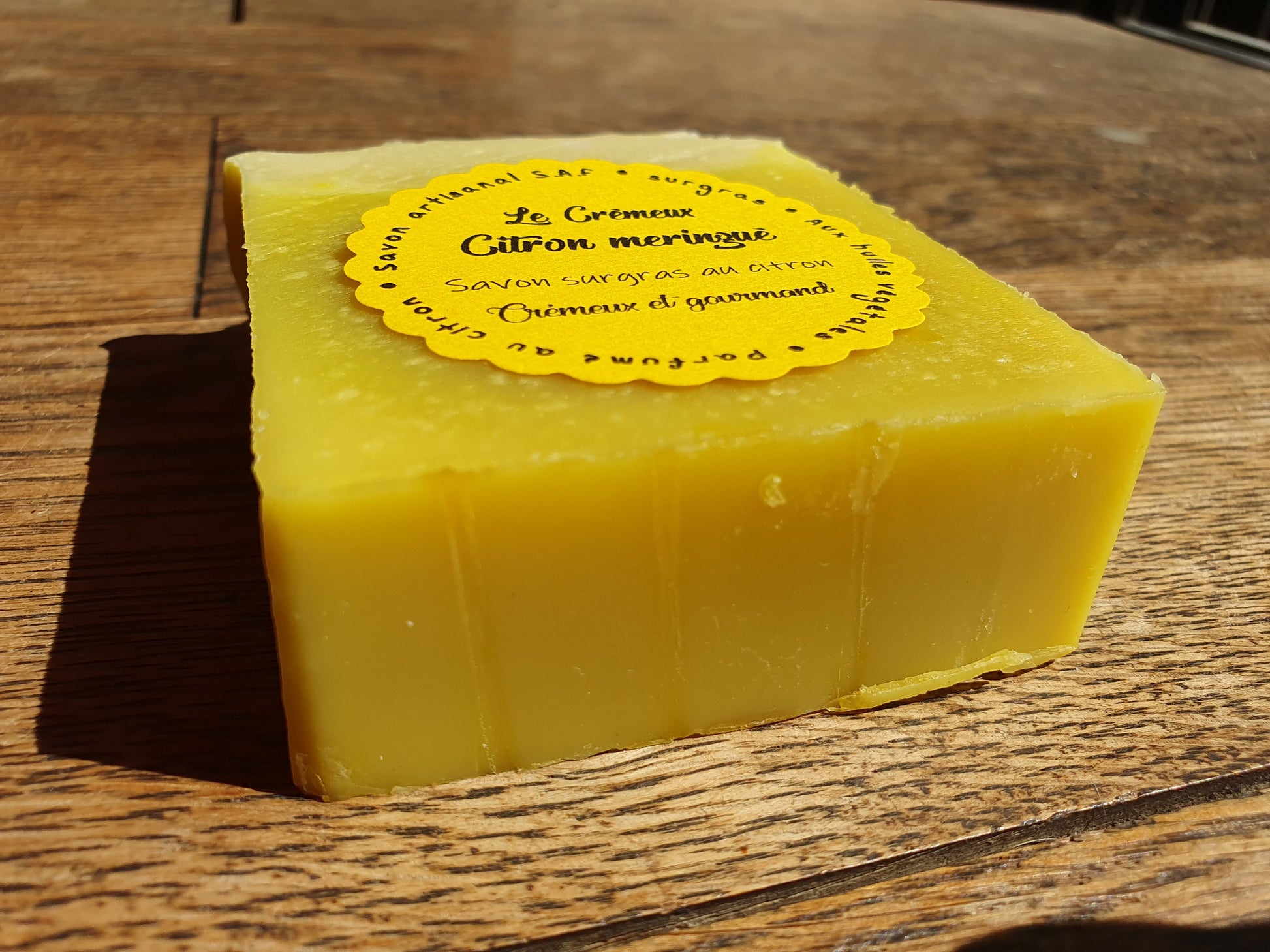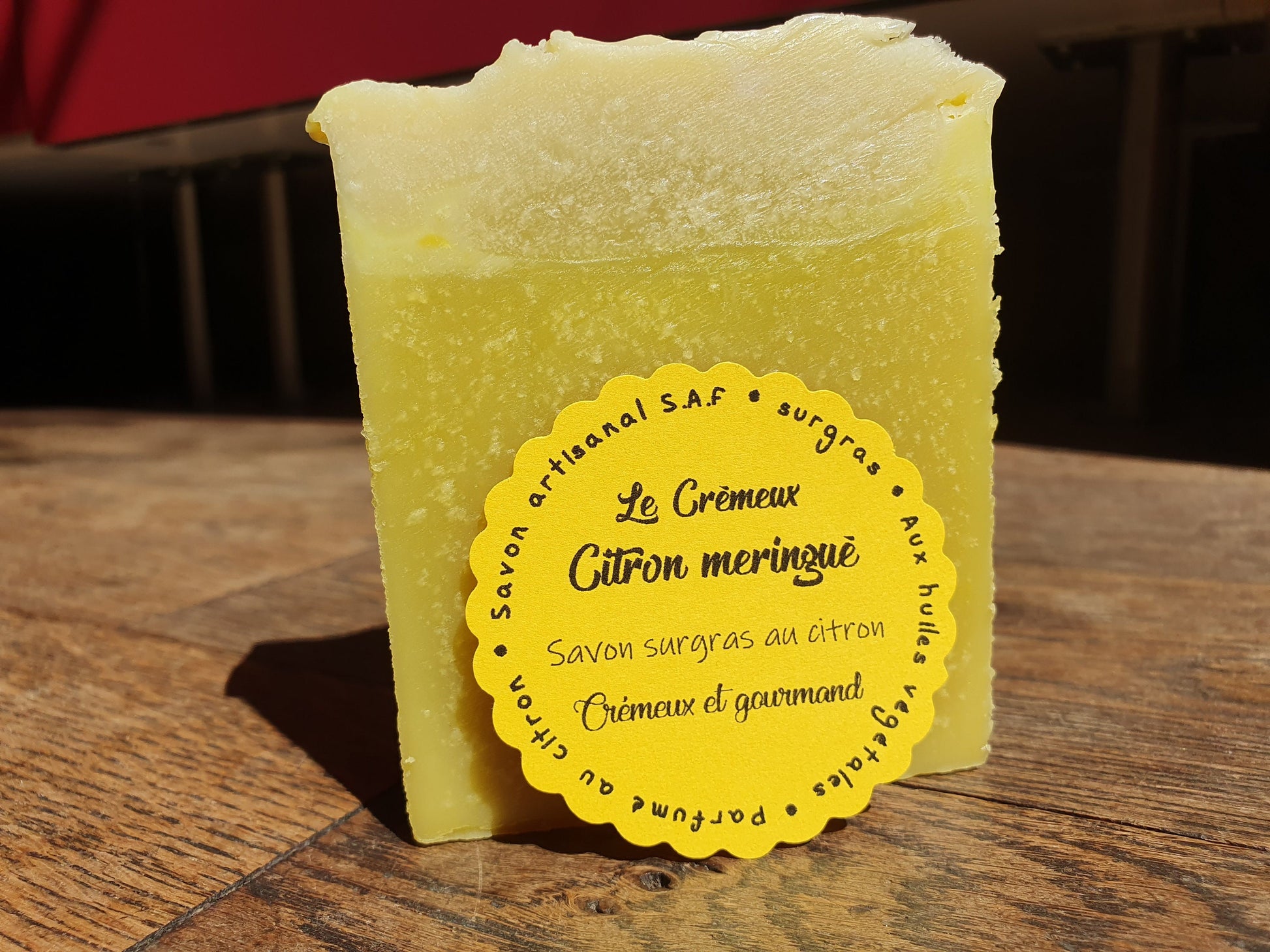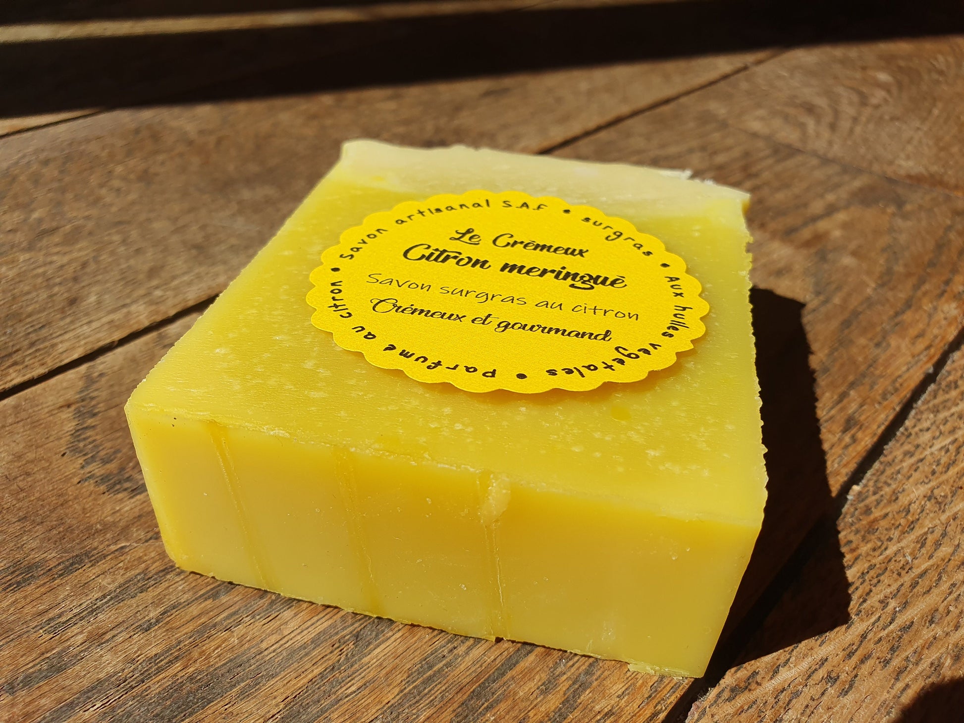 Le "Crémeux citron meringué", savon artisanal surgras saponifié à froid aux huiles végétales et parfumé au citron gourmand
