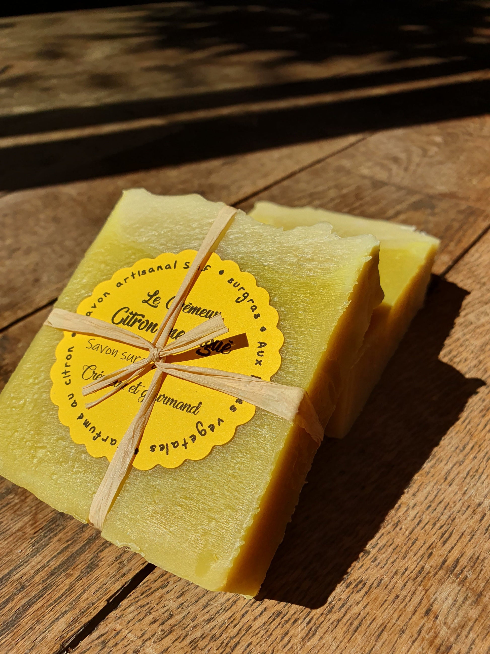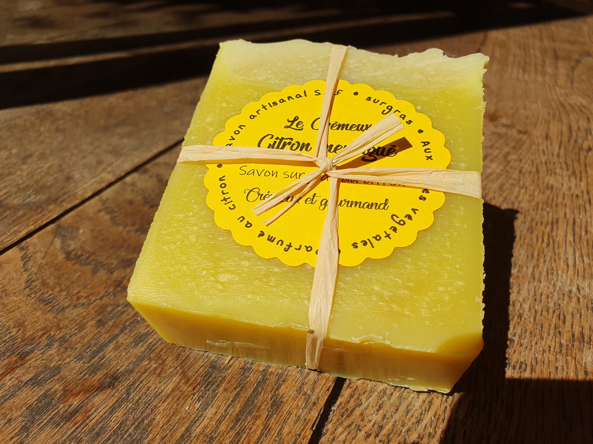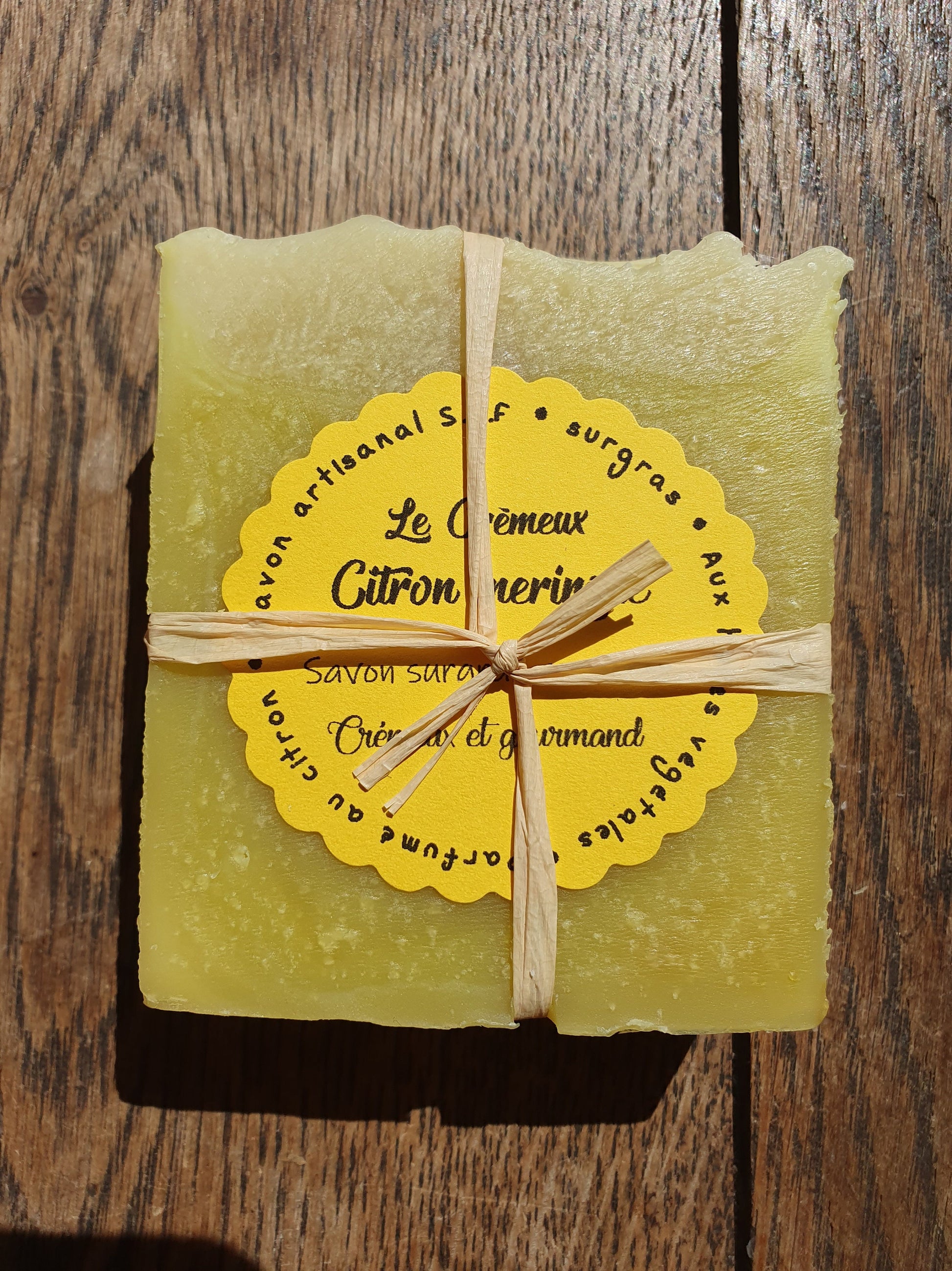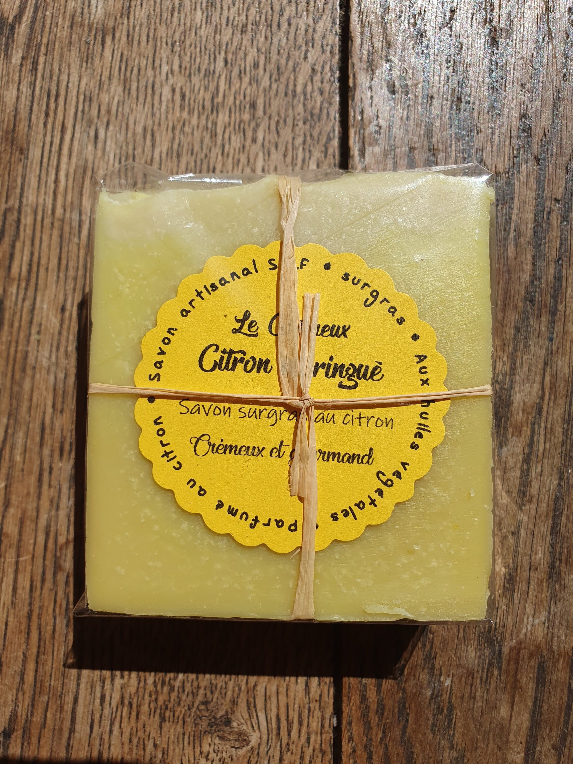 Le "Crémeux citron meringué", savon artisanal surgras saponifié à froid aux huiles végétales et parfumé au citron gourmand