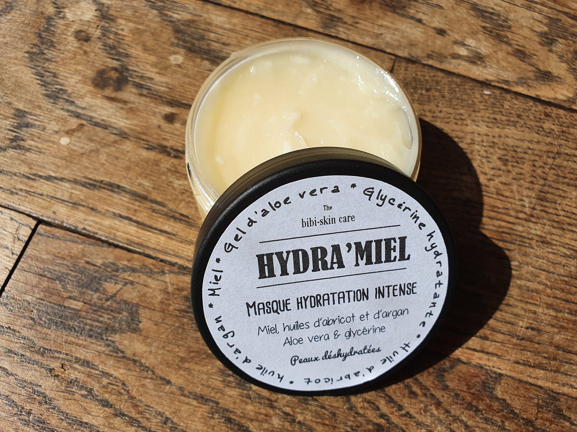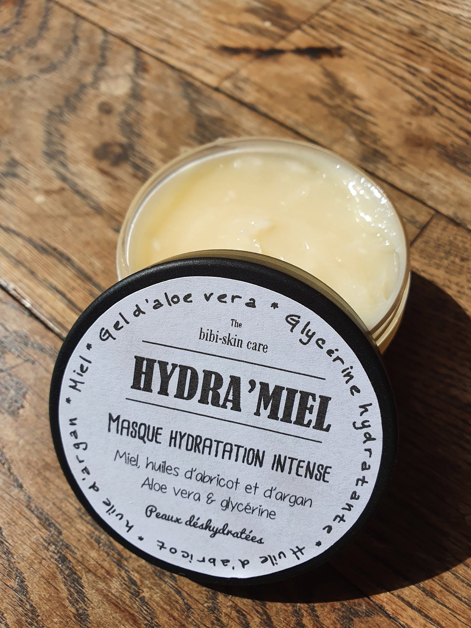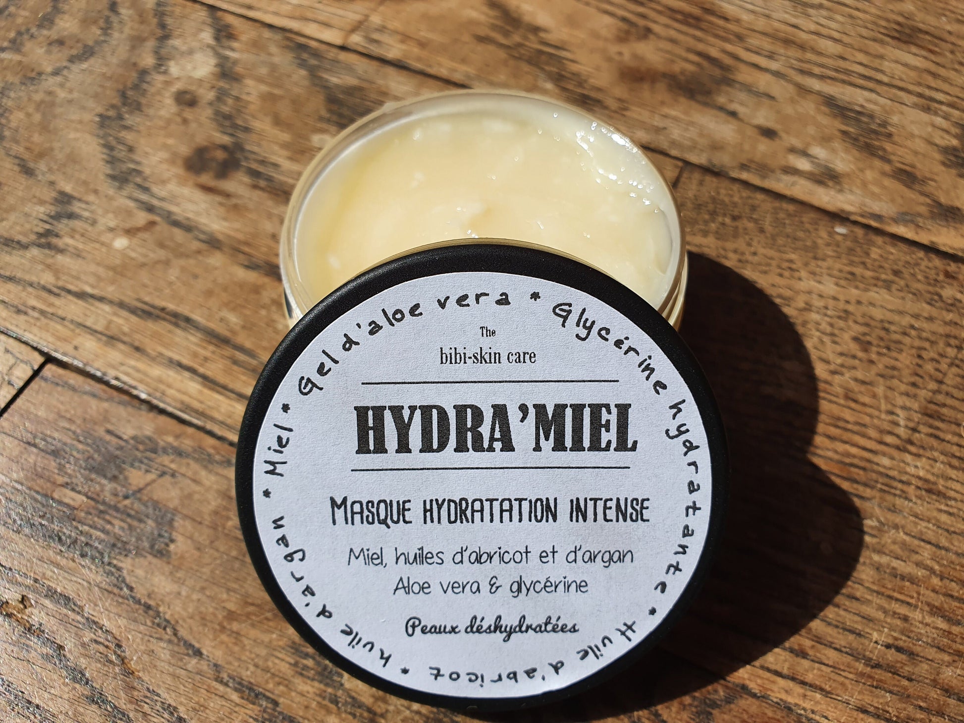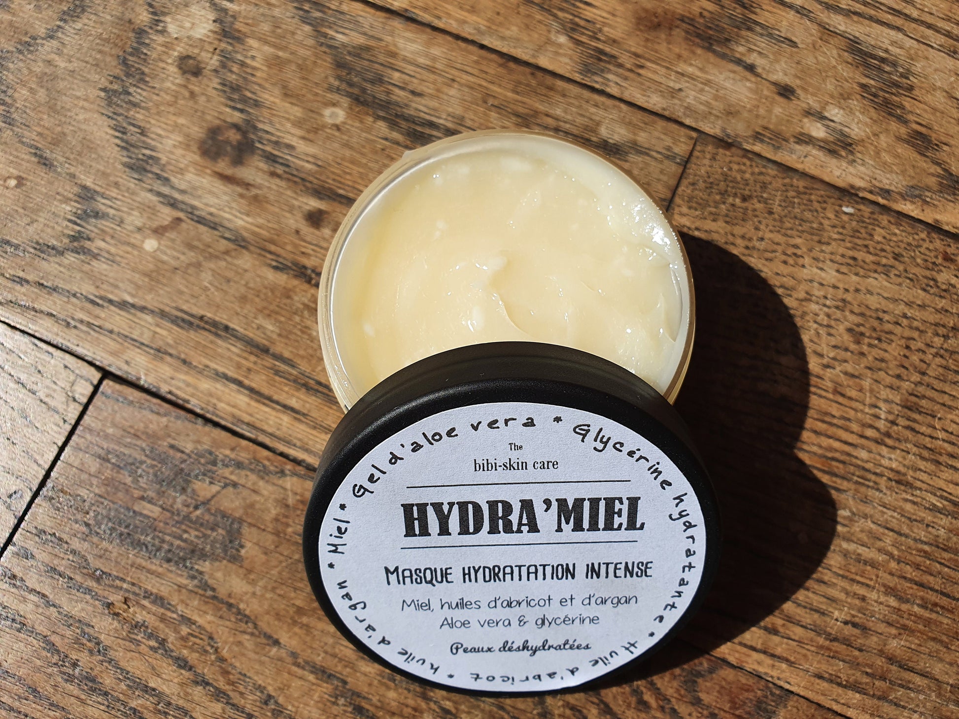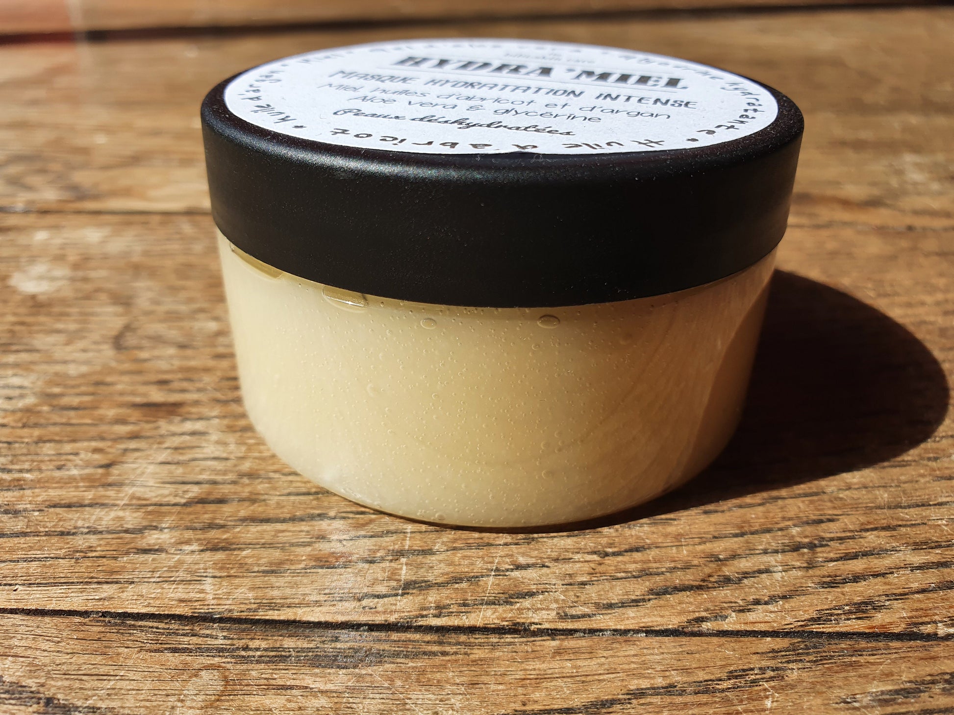 Le "Hydra'miel", masque visage hydratation et nutrition intense, miel, huile d'abricot et d'argan, aloe vera et glycérine