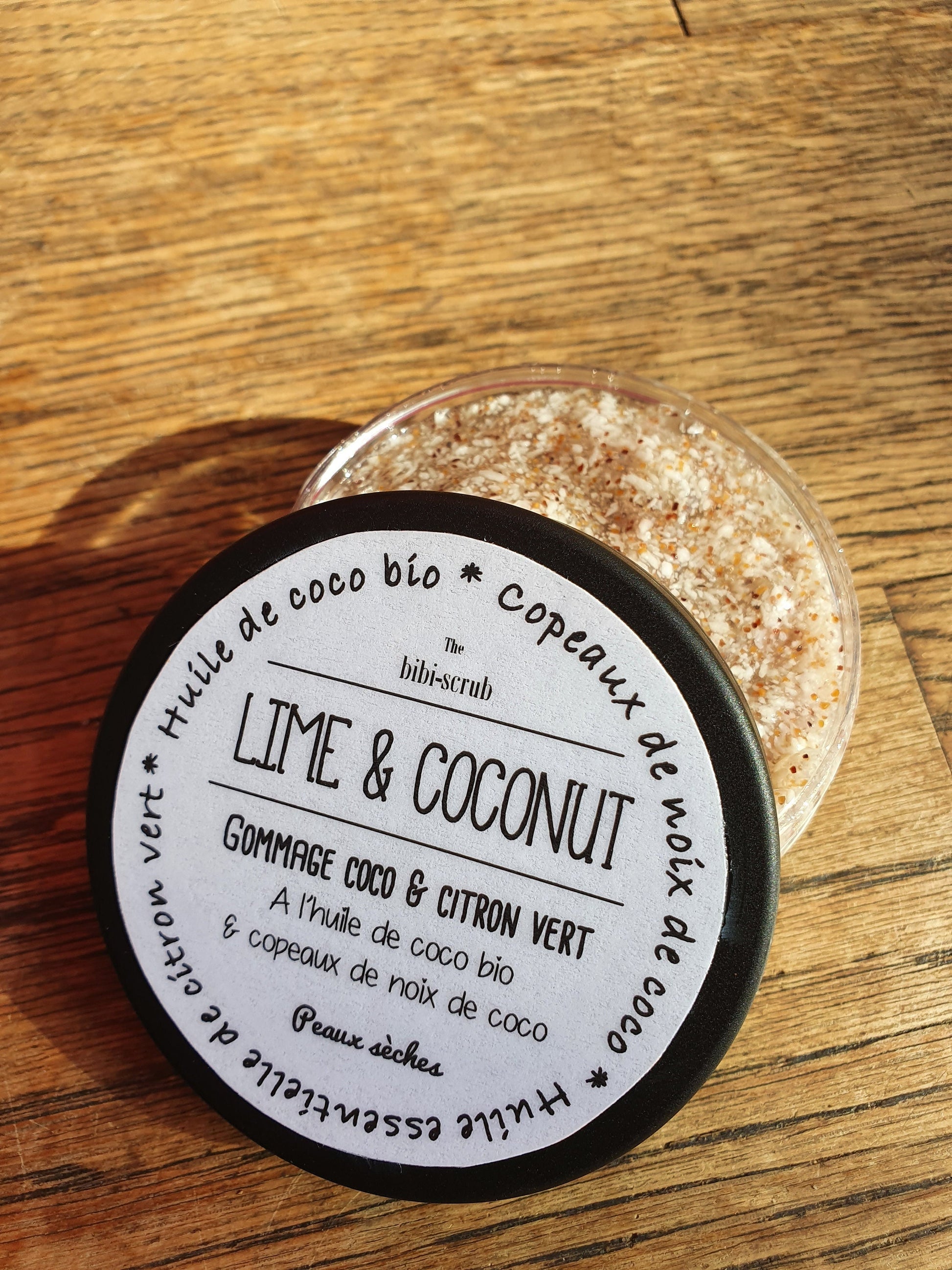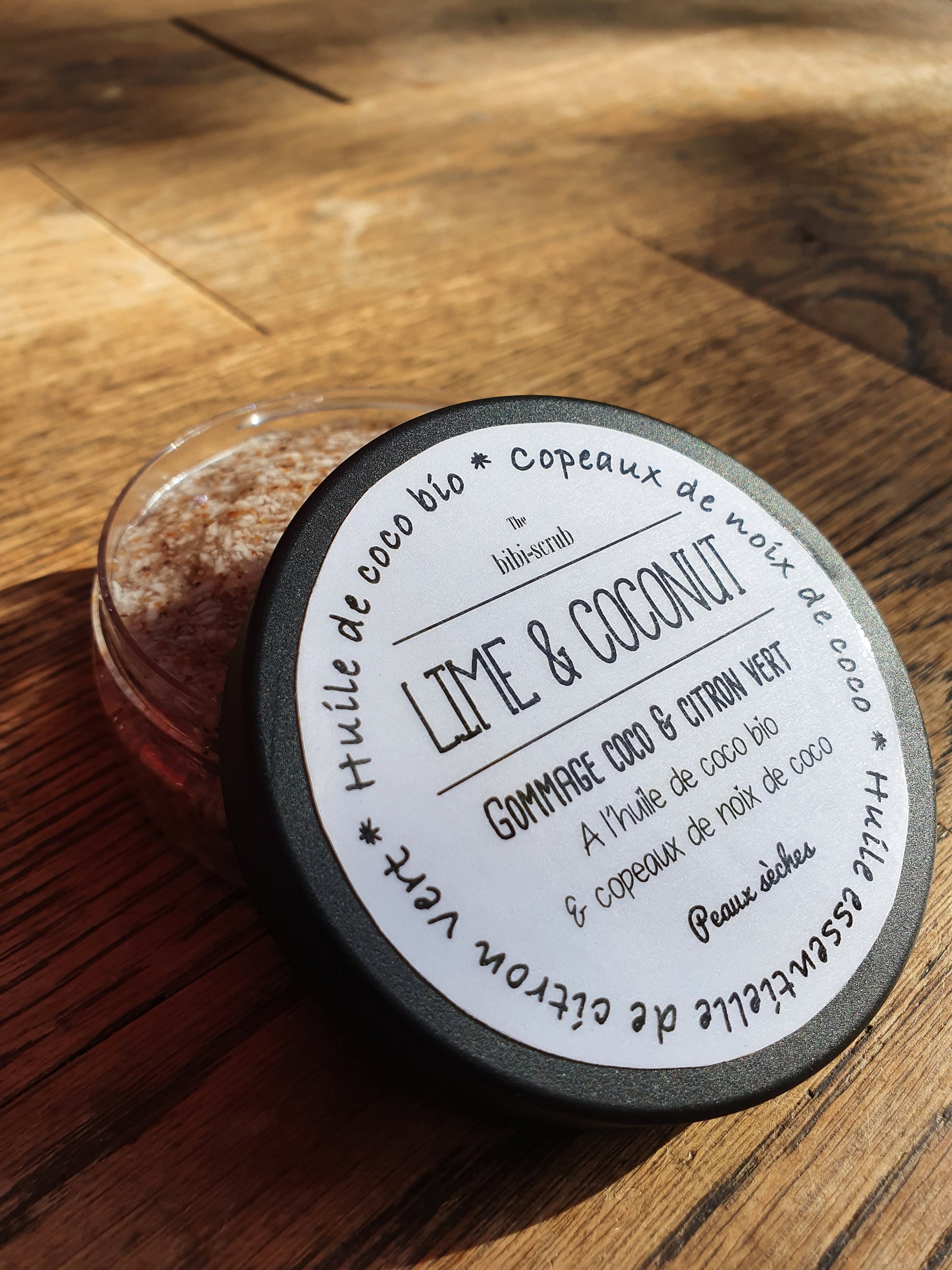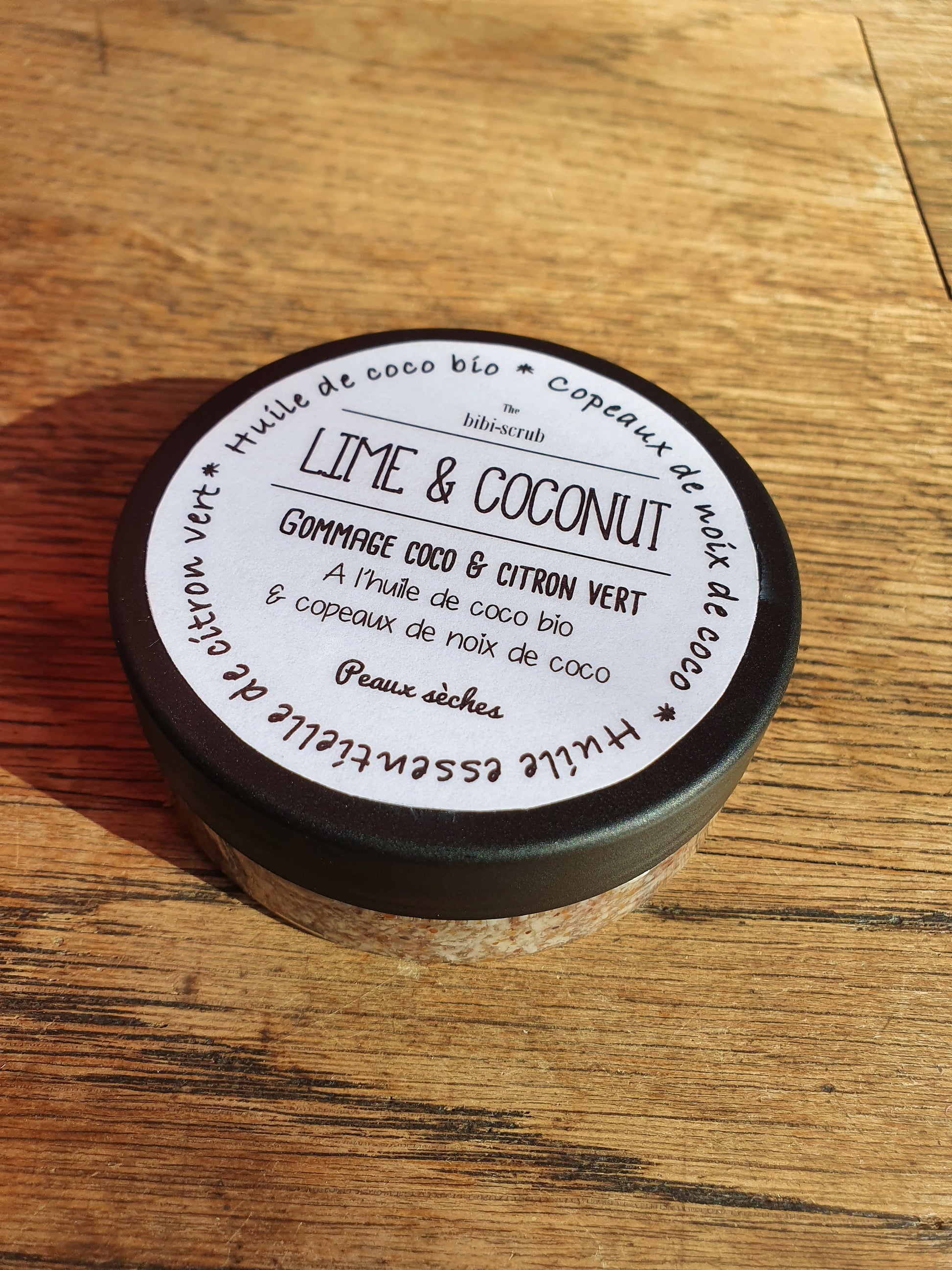 - de l'huile essentielle de citron vert : apaisante et calmante, elle est parfaite pour les peaux sensibles. Son parfum est top associé à celle de l'huile de noix de coco.