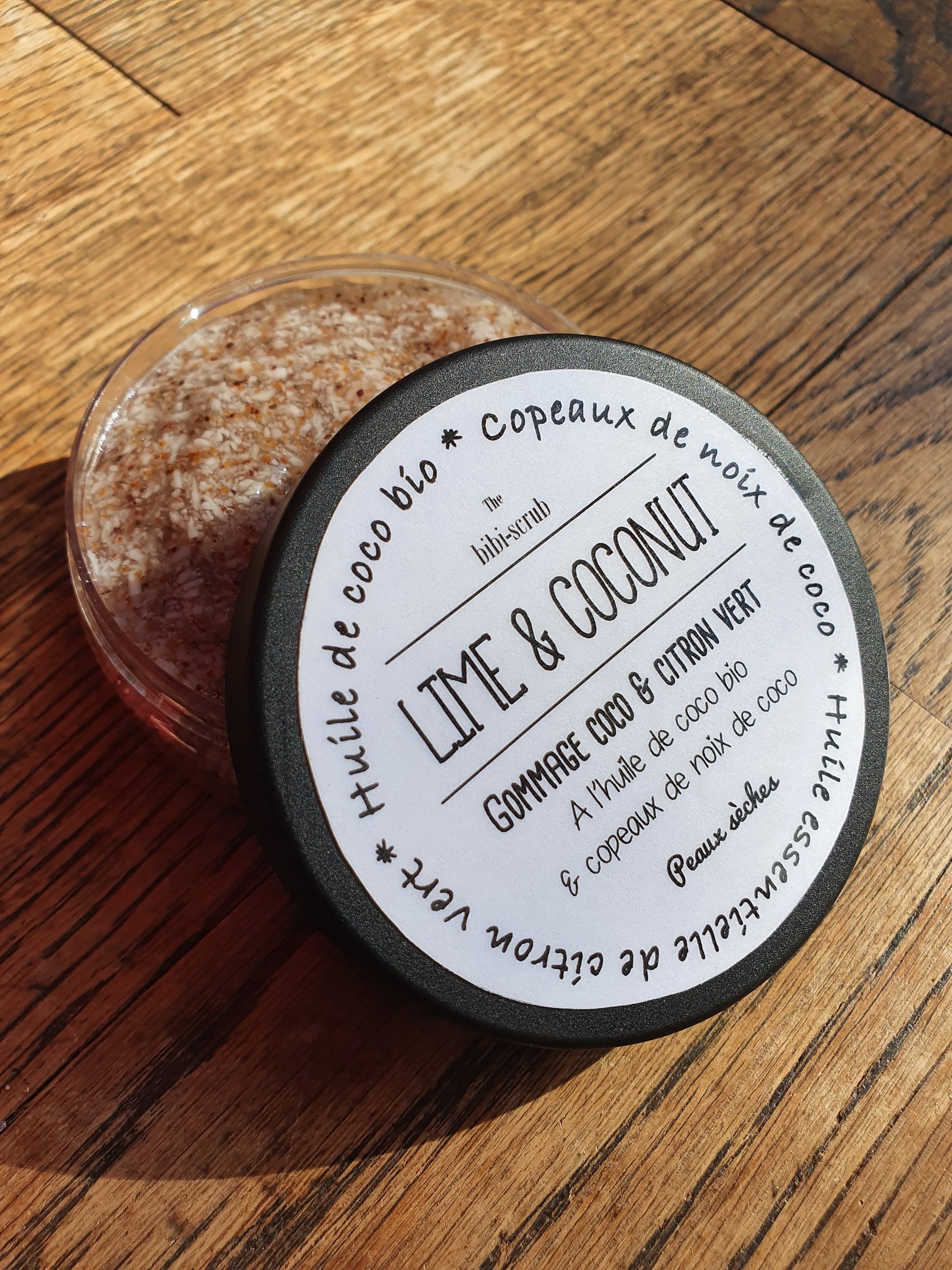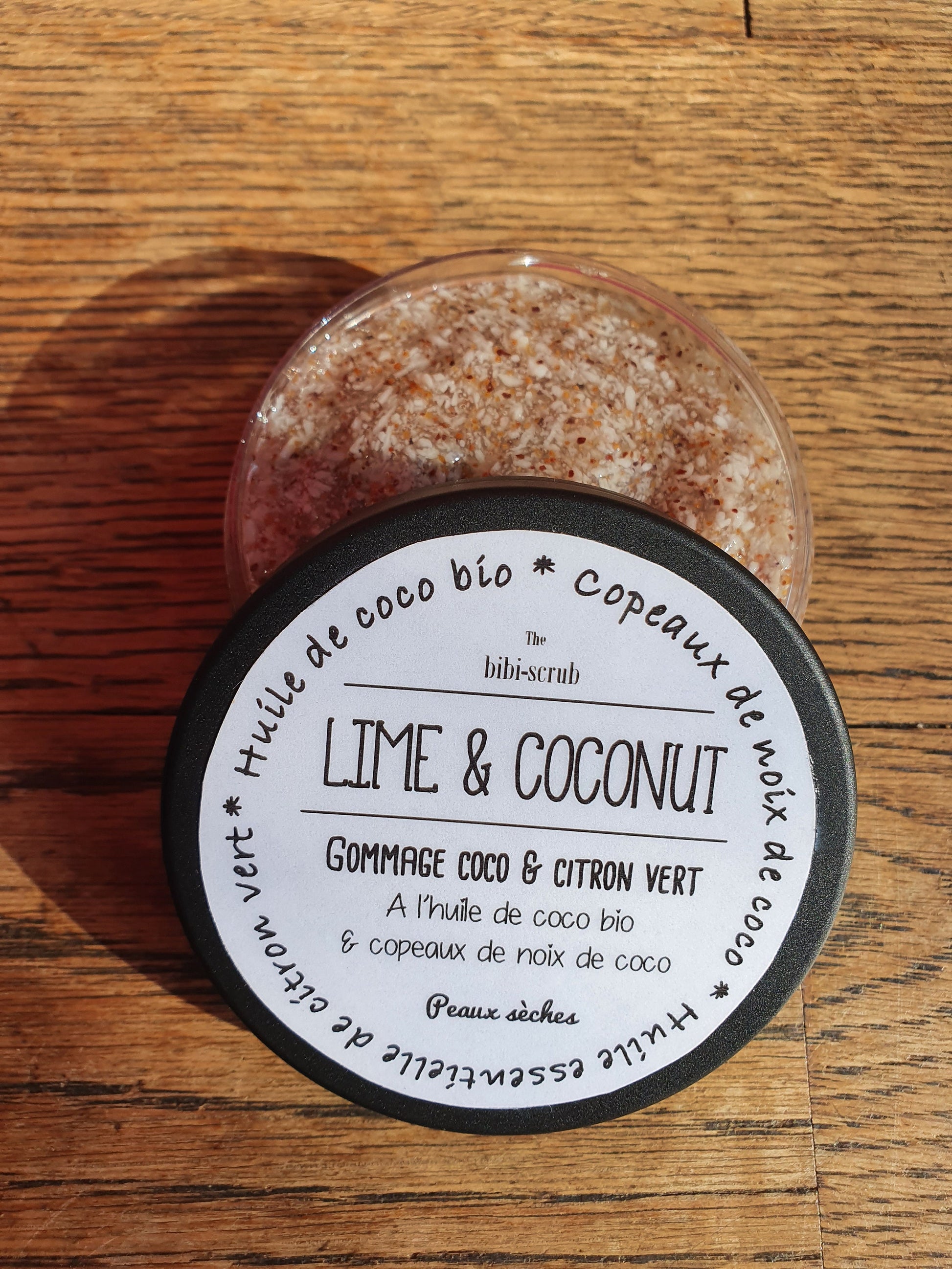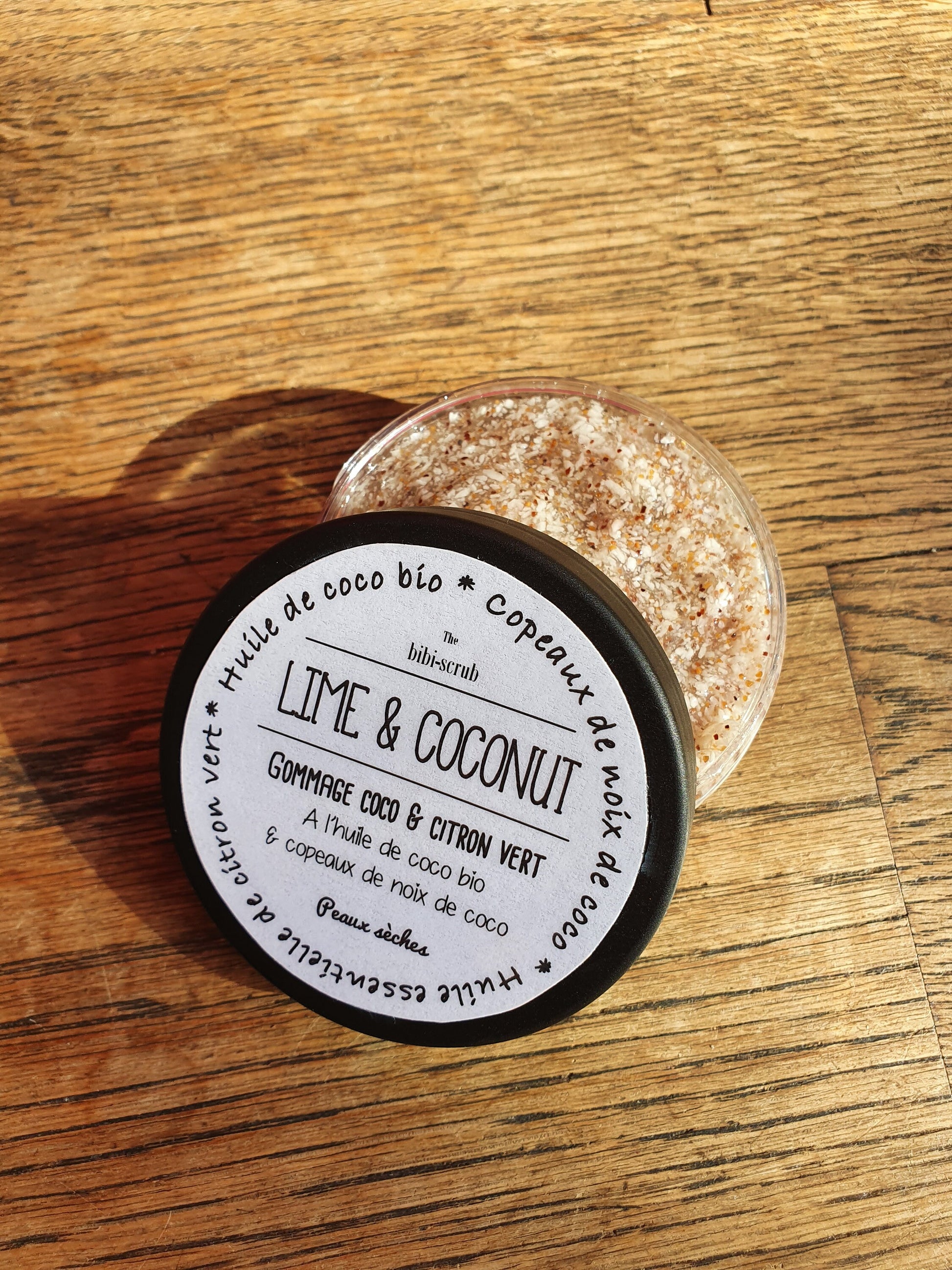 - de l'huile essentielle de citron vert : apaisante et calmante, elle est parfaite pour les peaux sensibles. Son parfum est top associé à celle de l'huile de noix de coco.