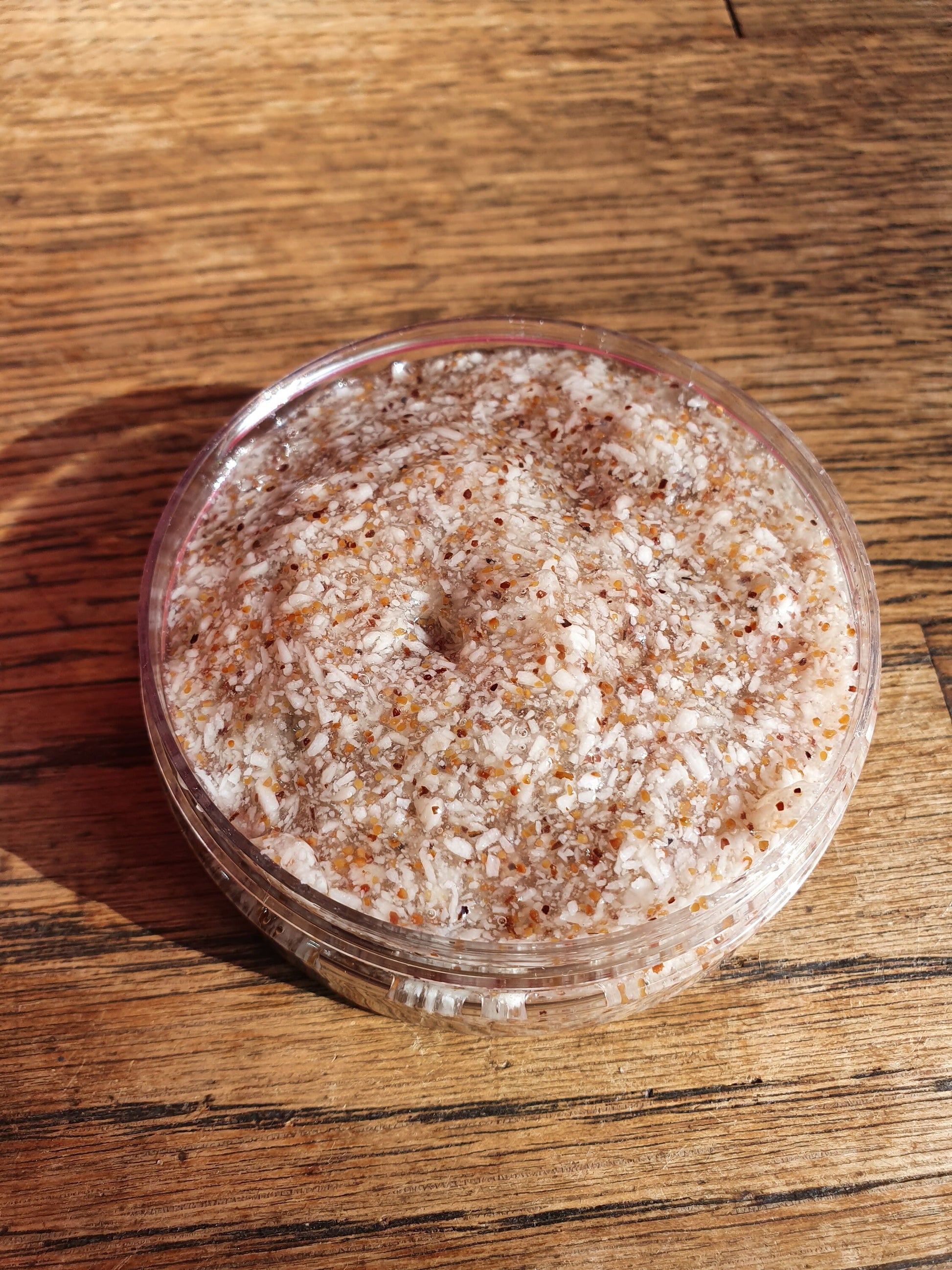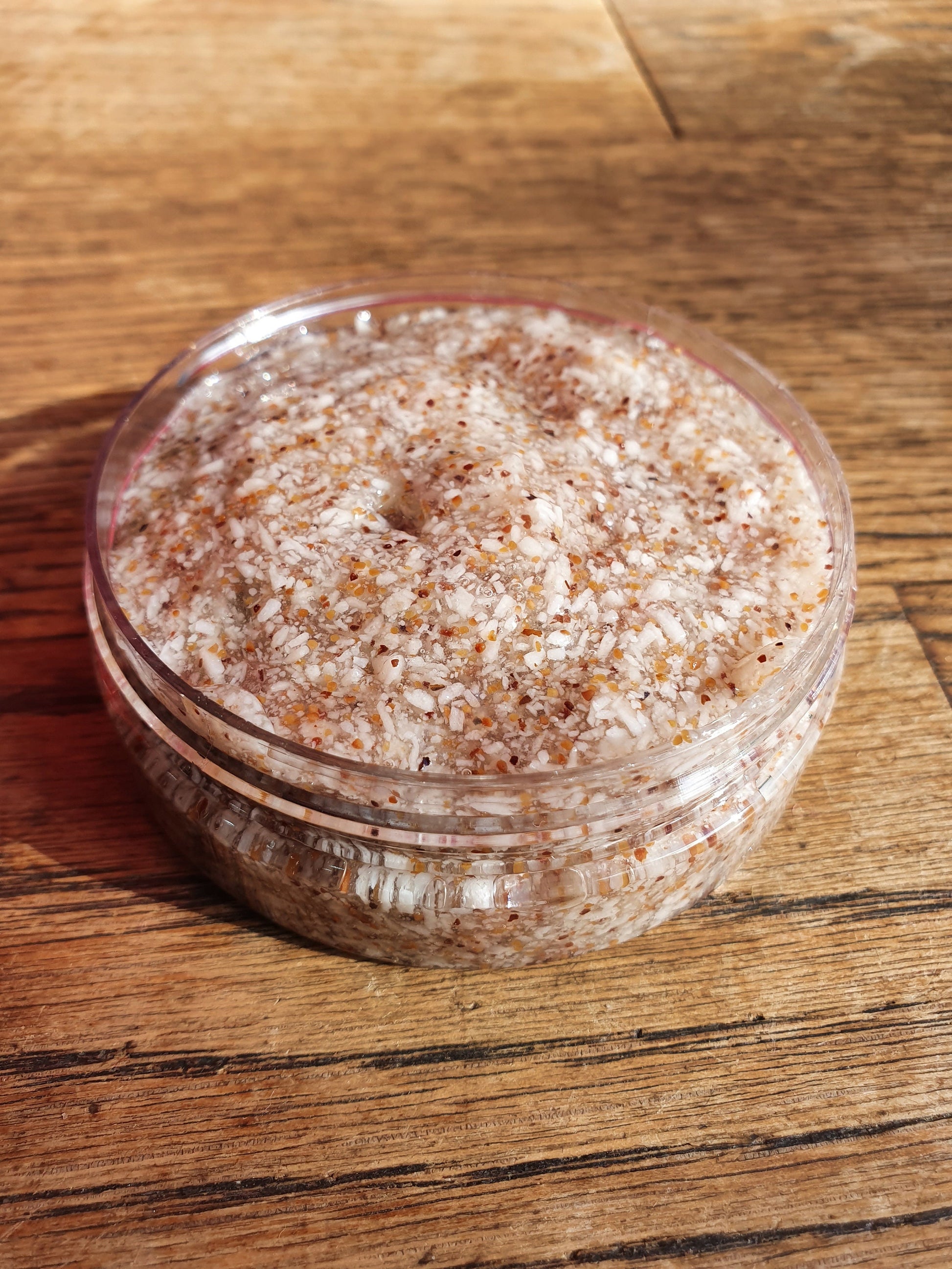 Le gommage ne contient que des éléments naturels cités ci-dessus et un conservateur (cosgard) qui permet de le conserver environ 3 mois.