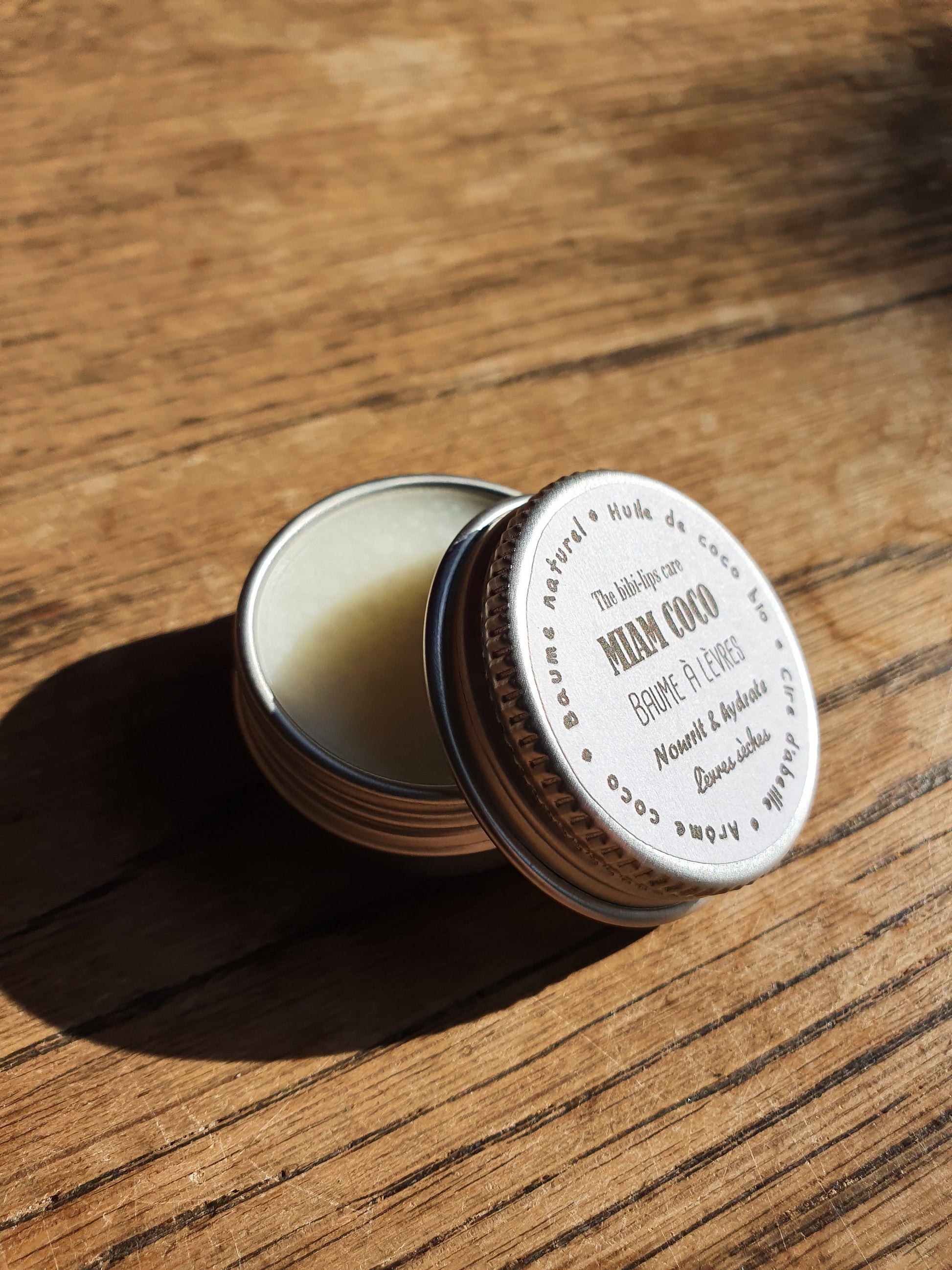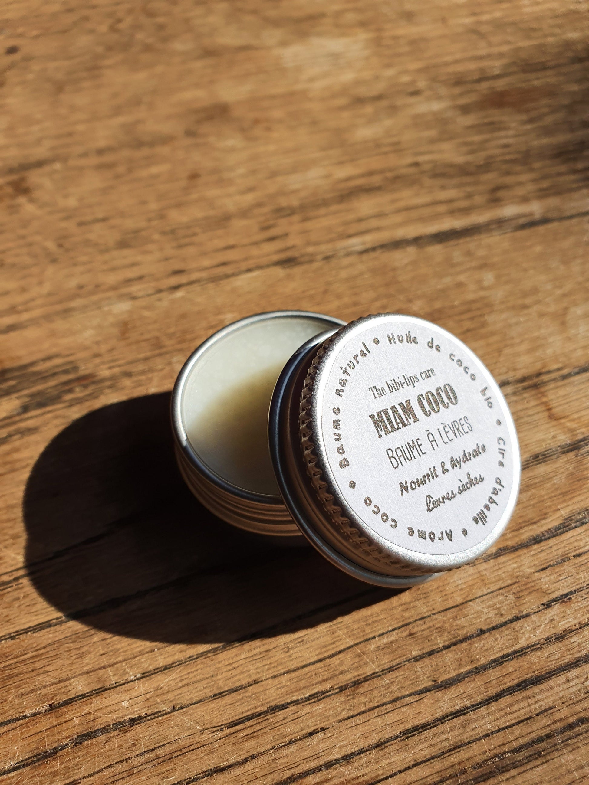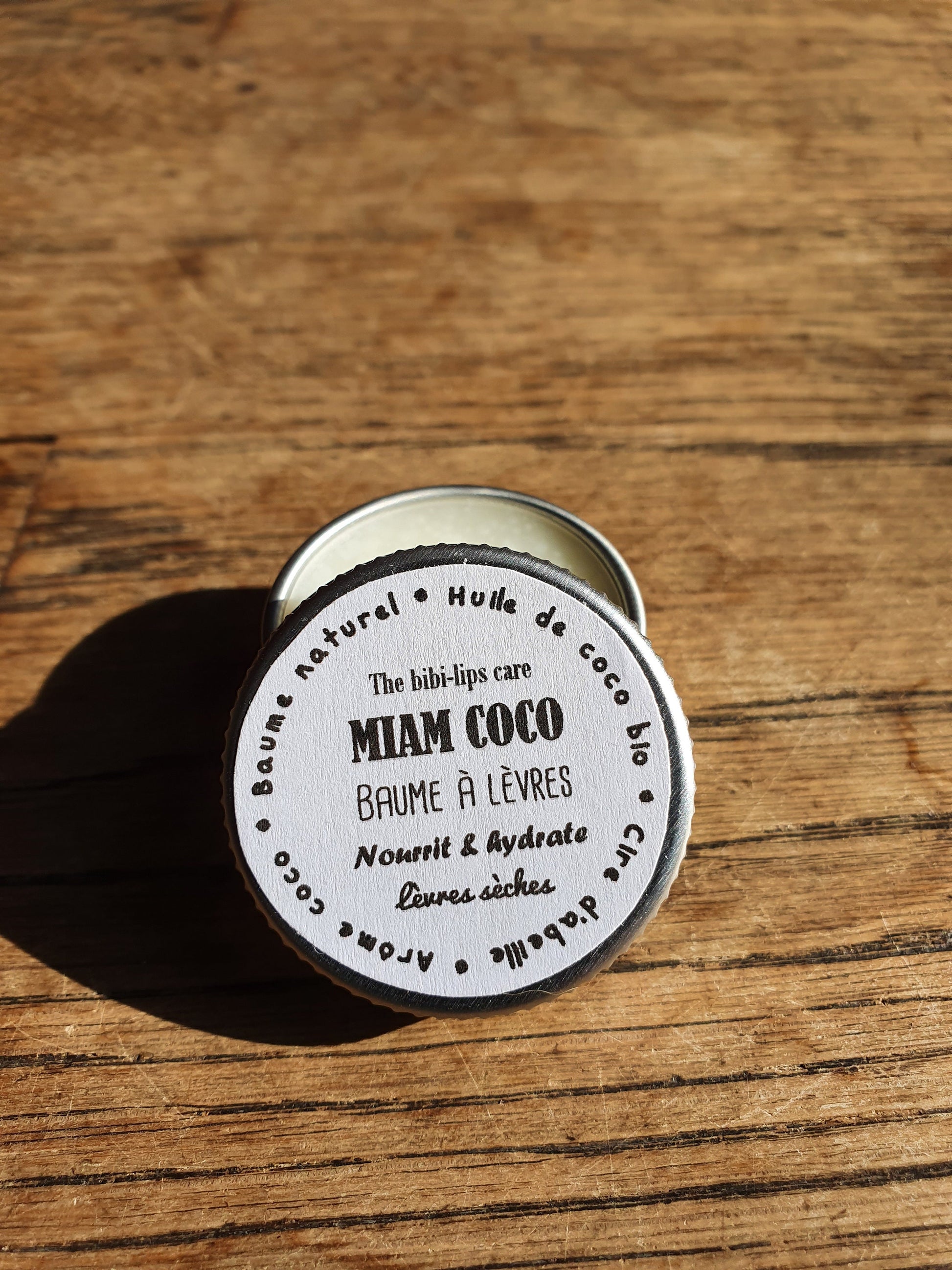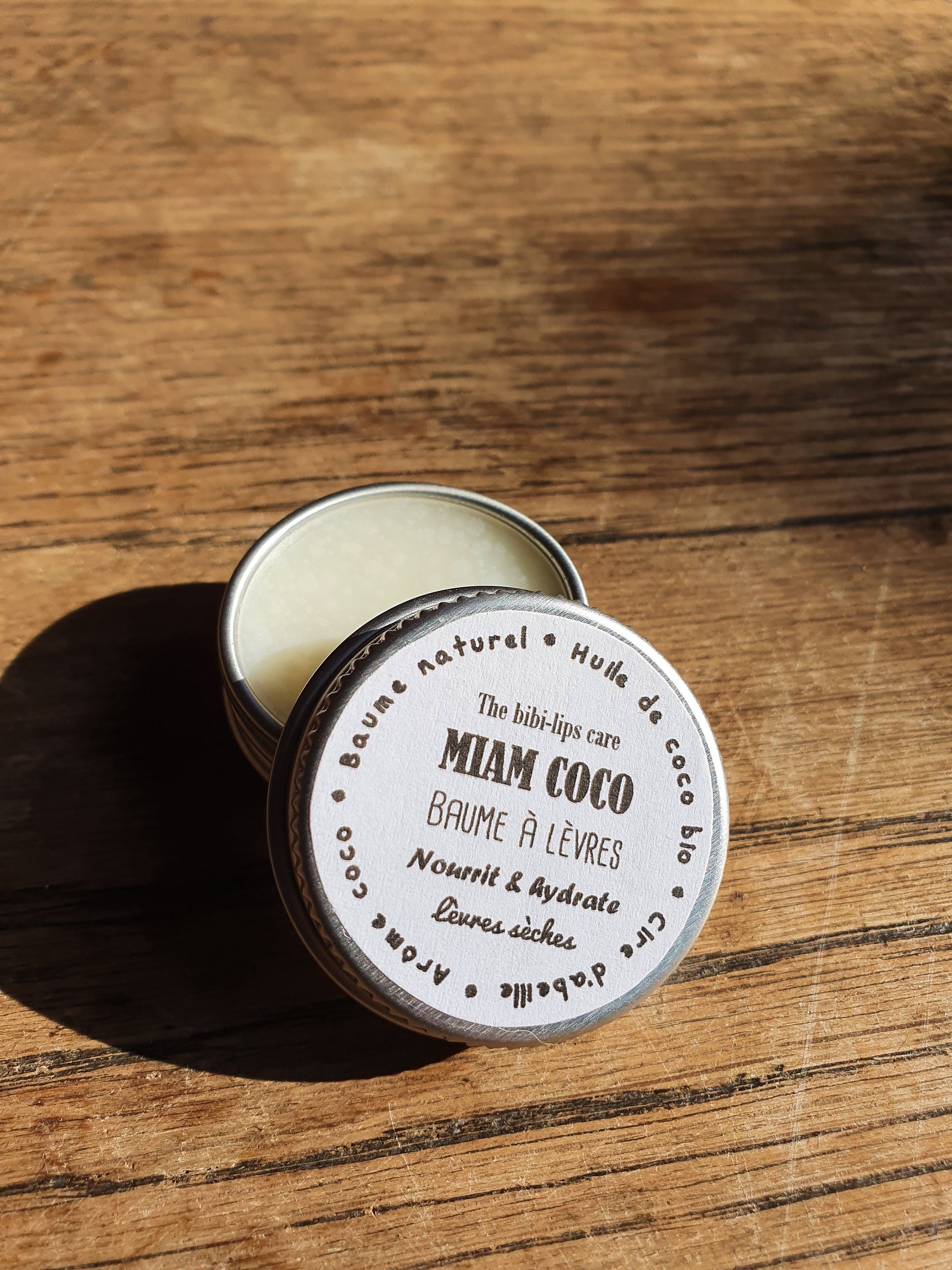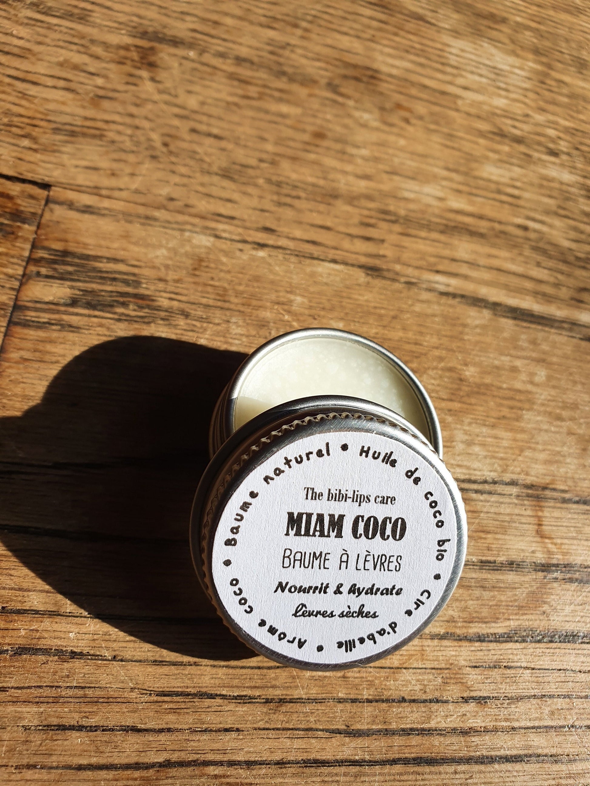 Le "Miam Coco", baume à lèvres à l'huile de coco bio, beurre de cacao, cire d'abeille et arôme naturel de coco pour les lèvres sèches et déshydratées