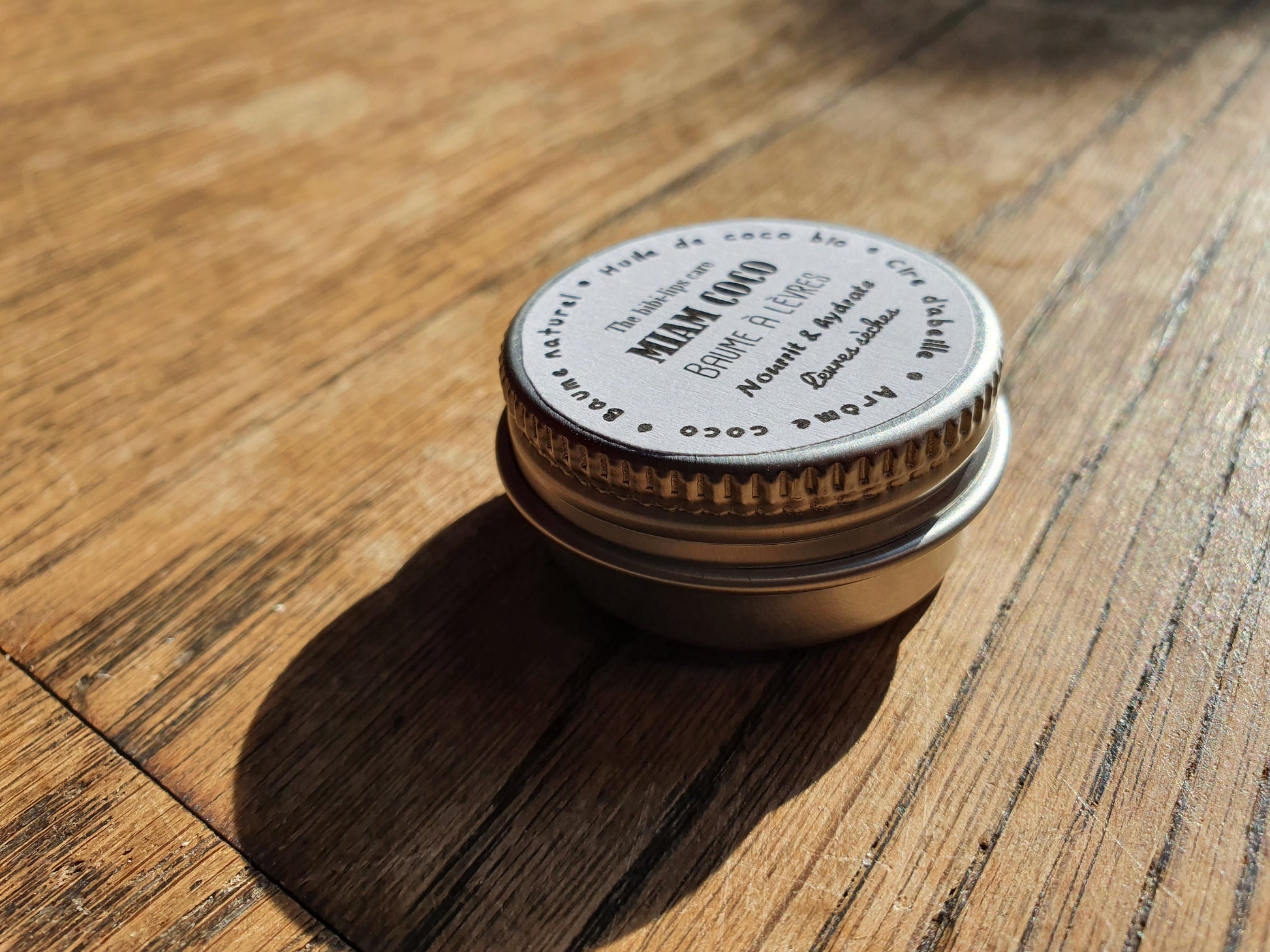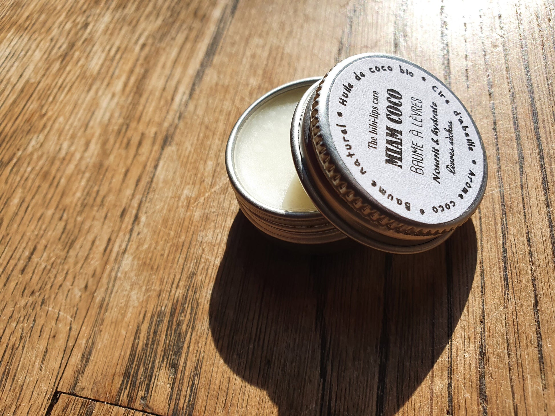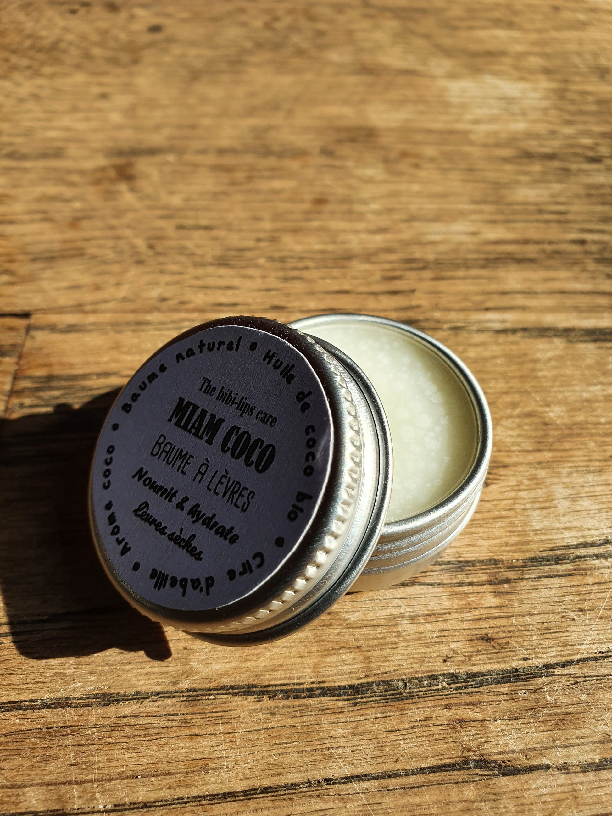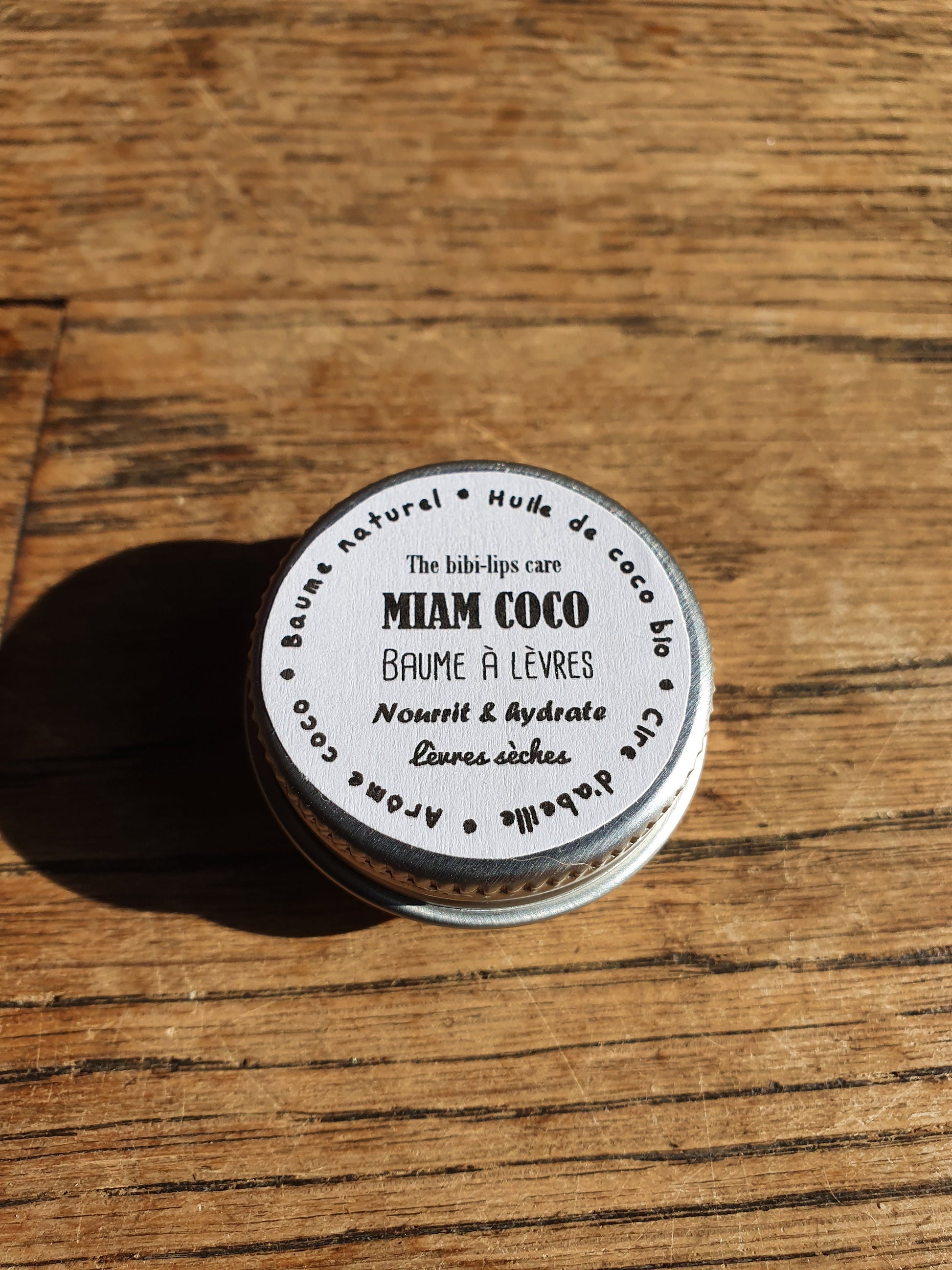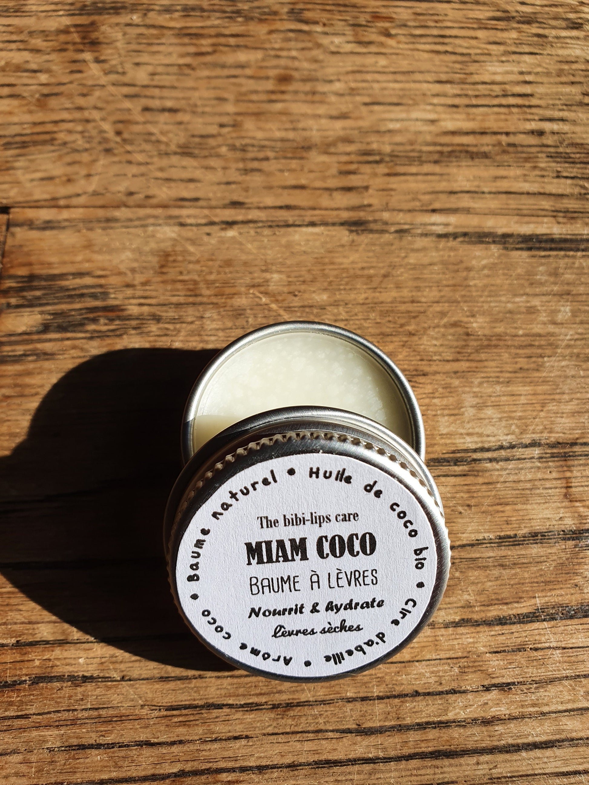 Le "Miam Coco", baume à lèvres à l'huile de coco bio, beurre de cacao, cire d'abeille et arôme naturel de coco pour les lèvres sèches et déshydratées