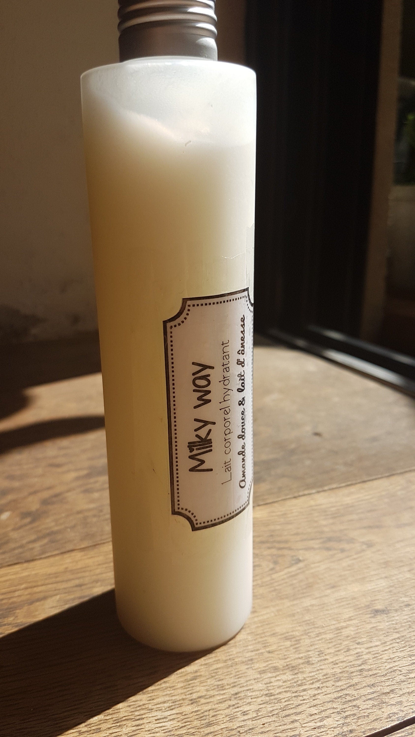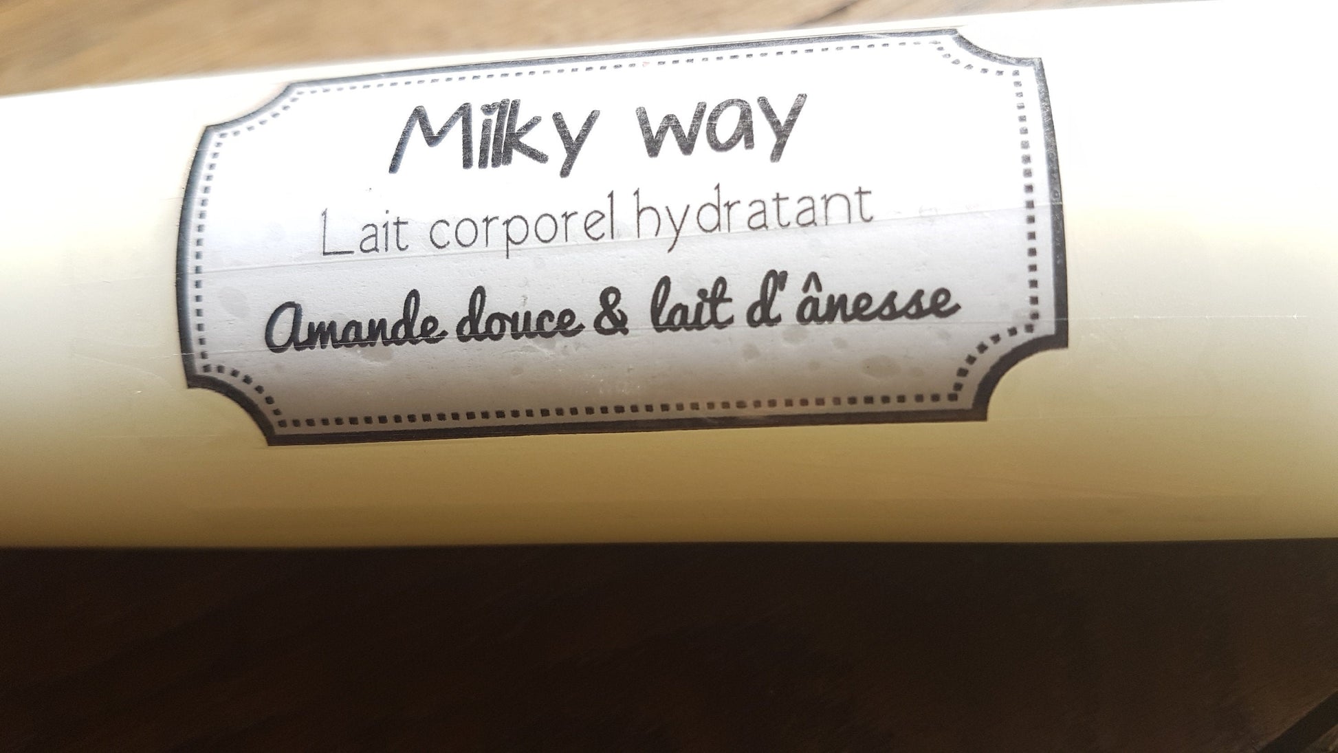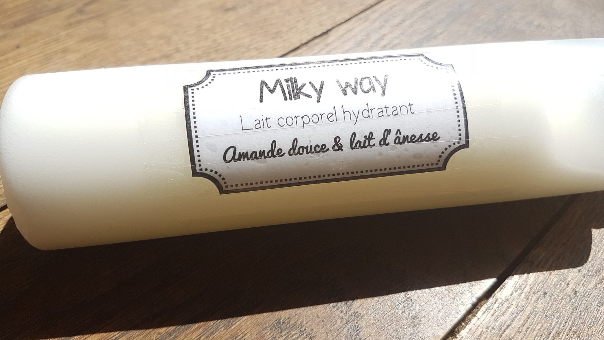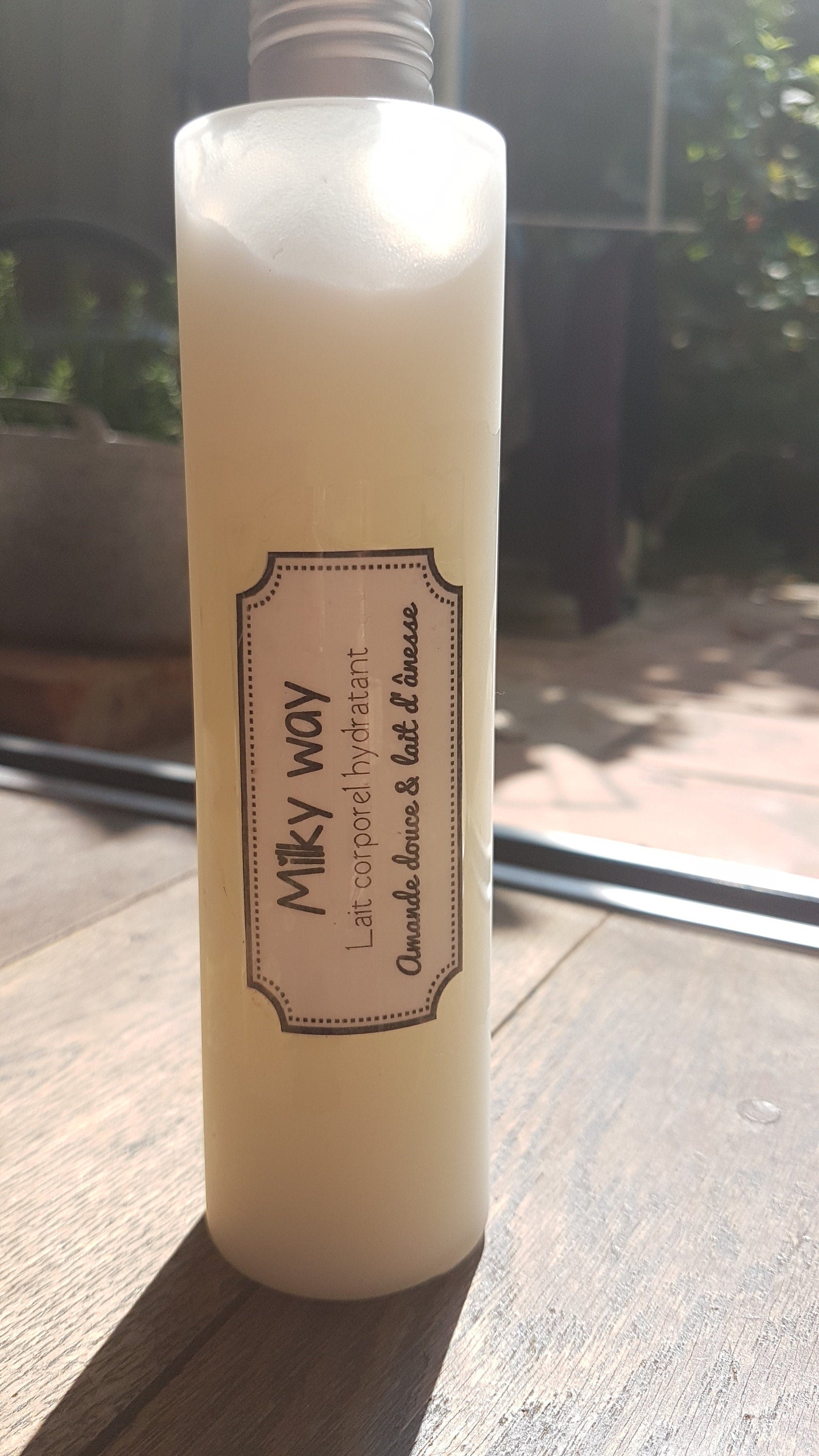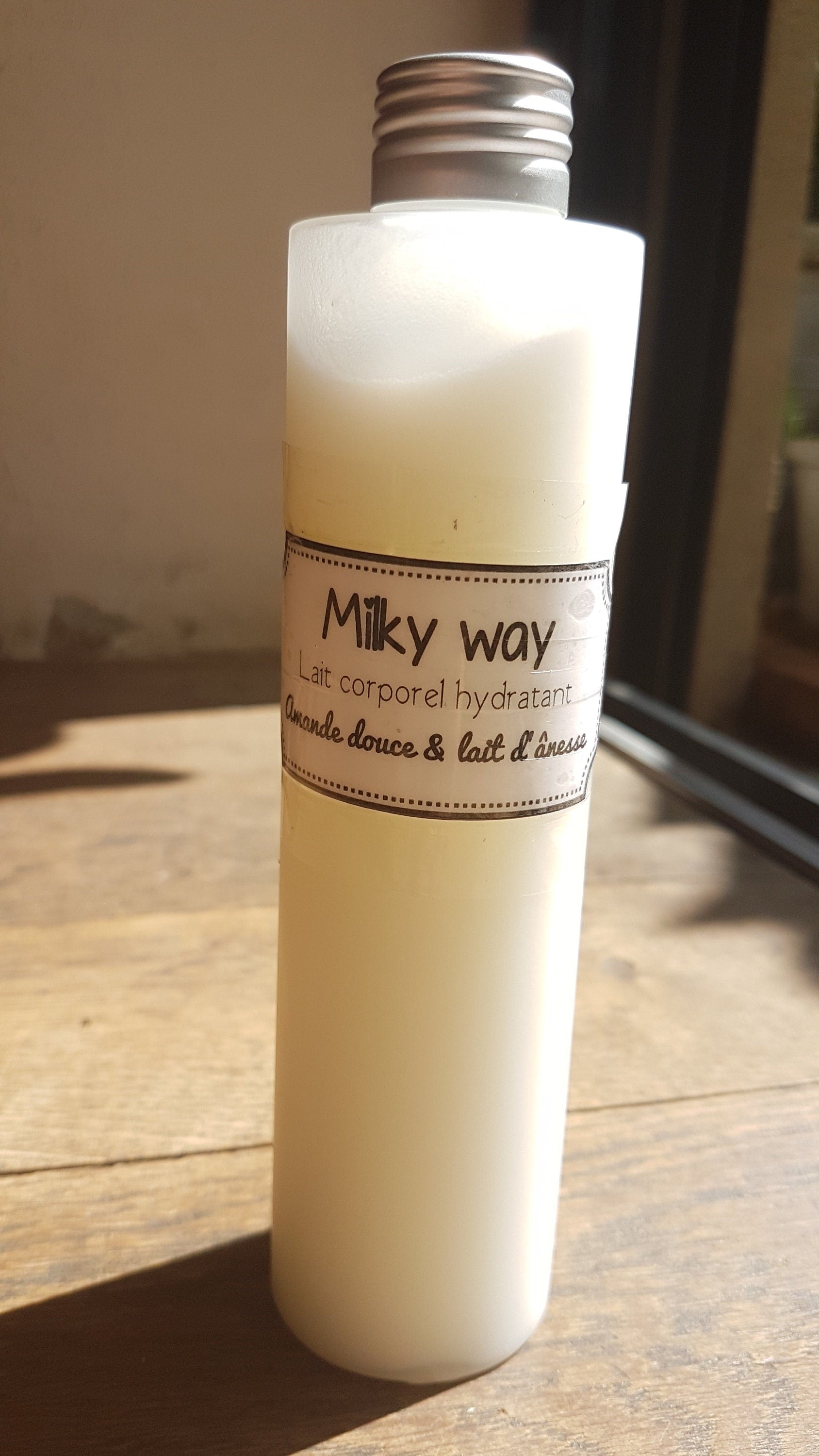 Le "Milky Way", lait corporel fluide pour le corps au lait d'ânesse et à l'huile d'amande douce hydratant et apaisant