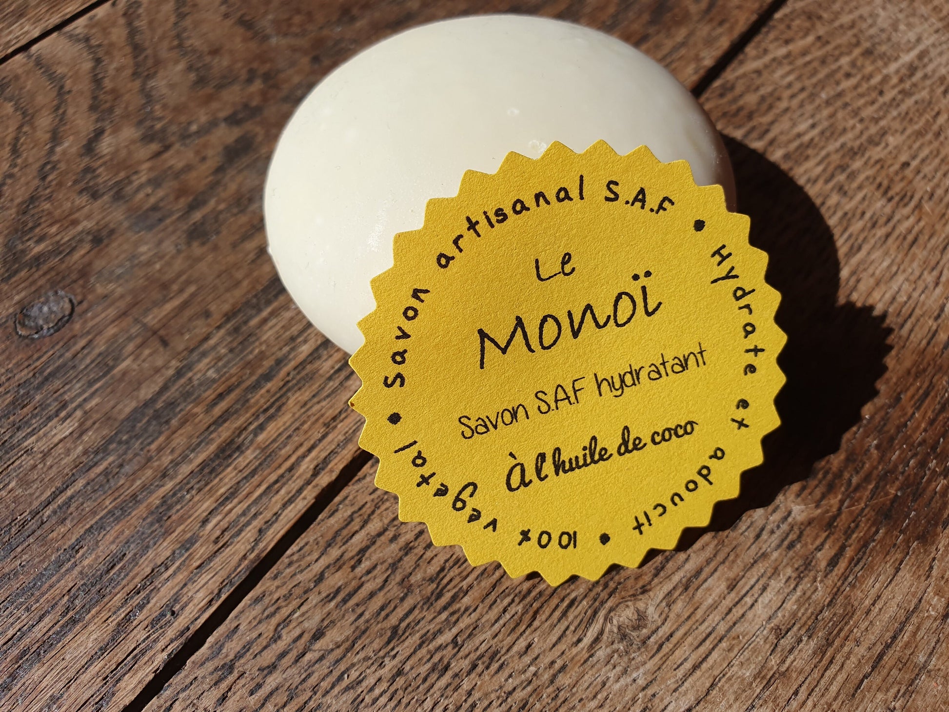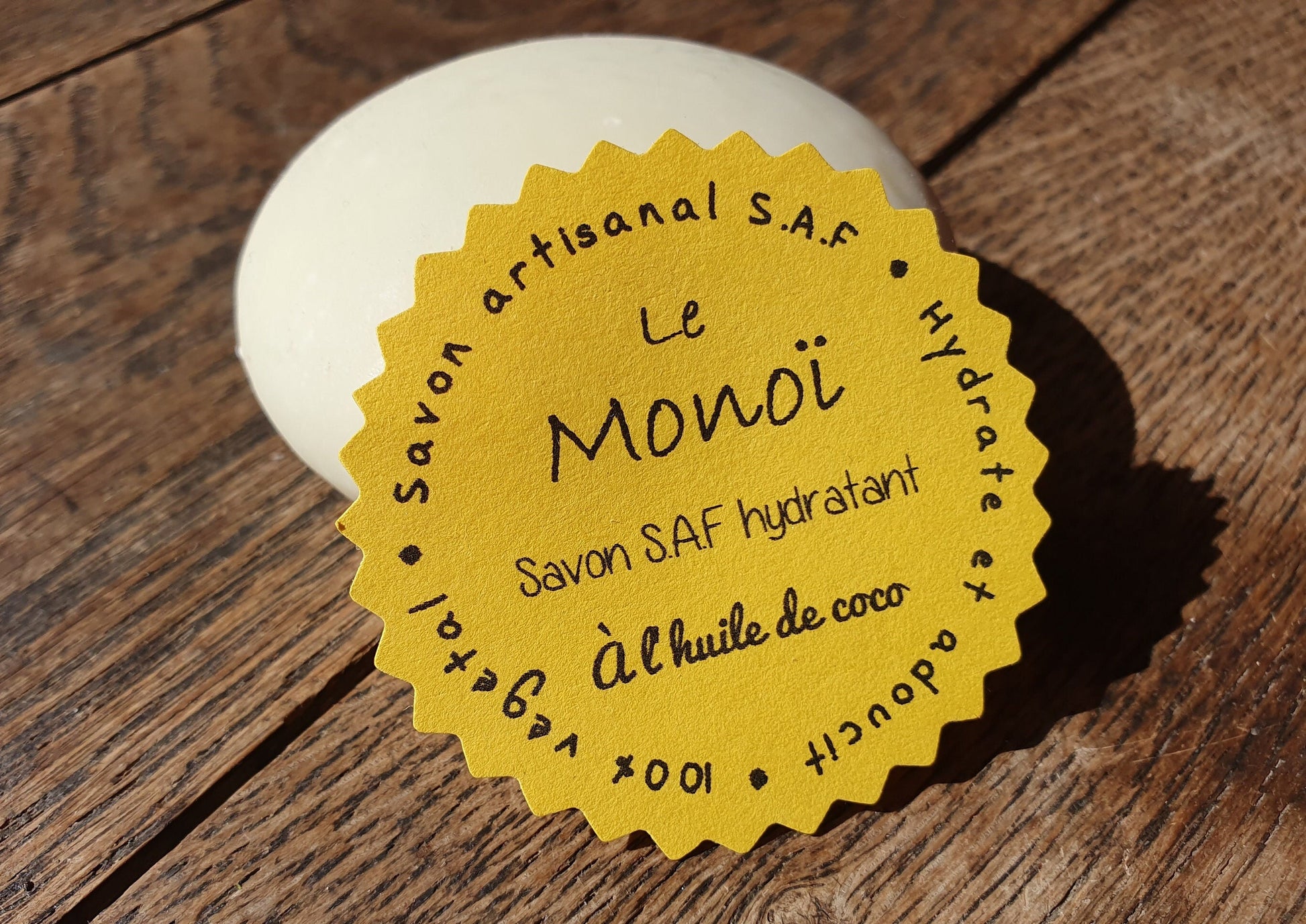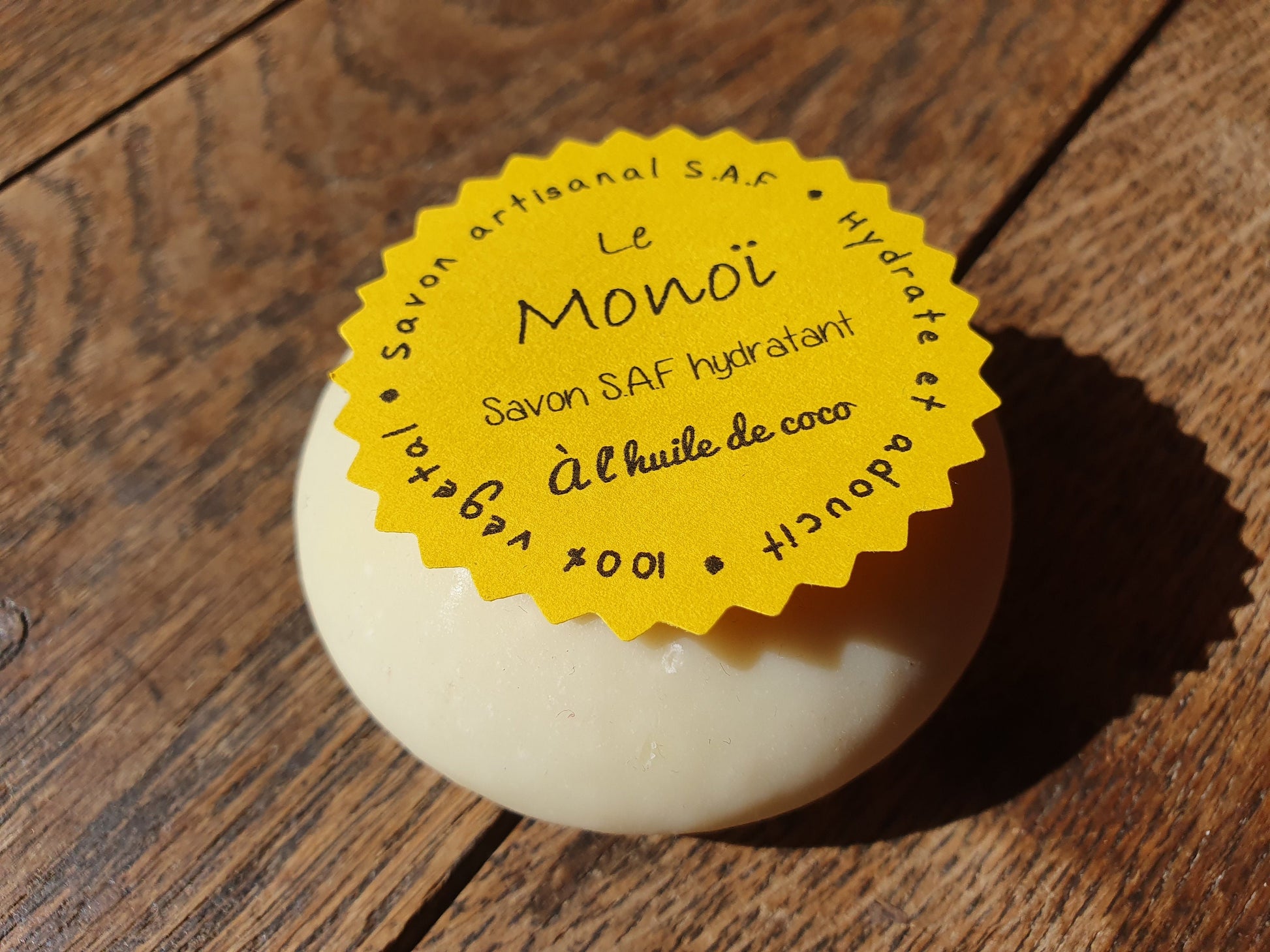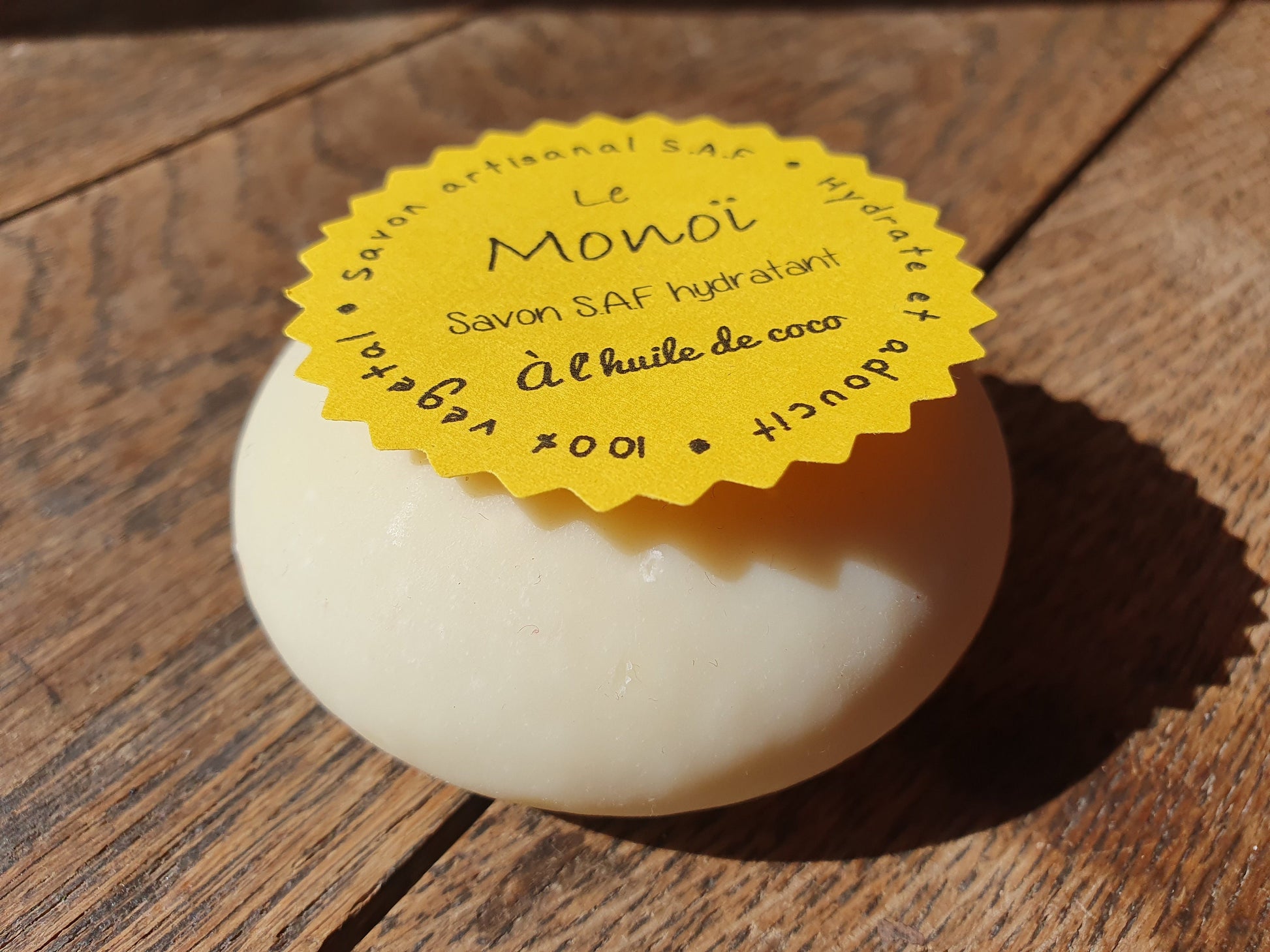 Le "Monoï", savon artisanal surgras saponifié à froid aux huiles végétales de coco, olive et parfumé au monoï