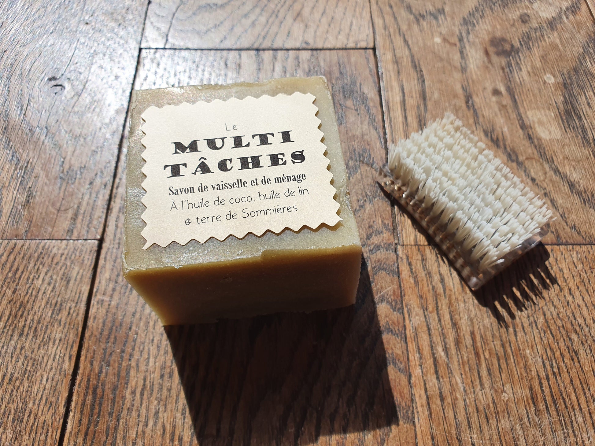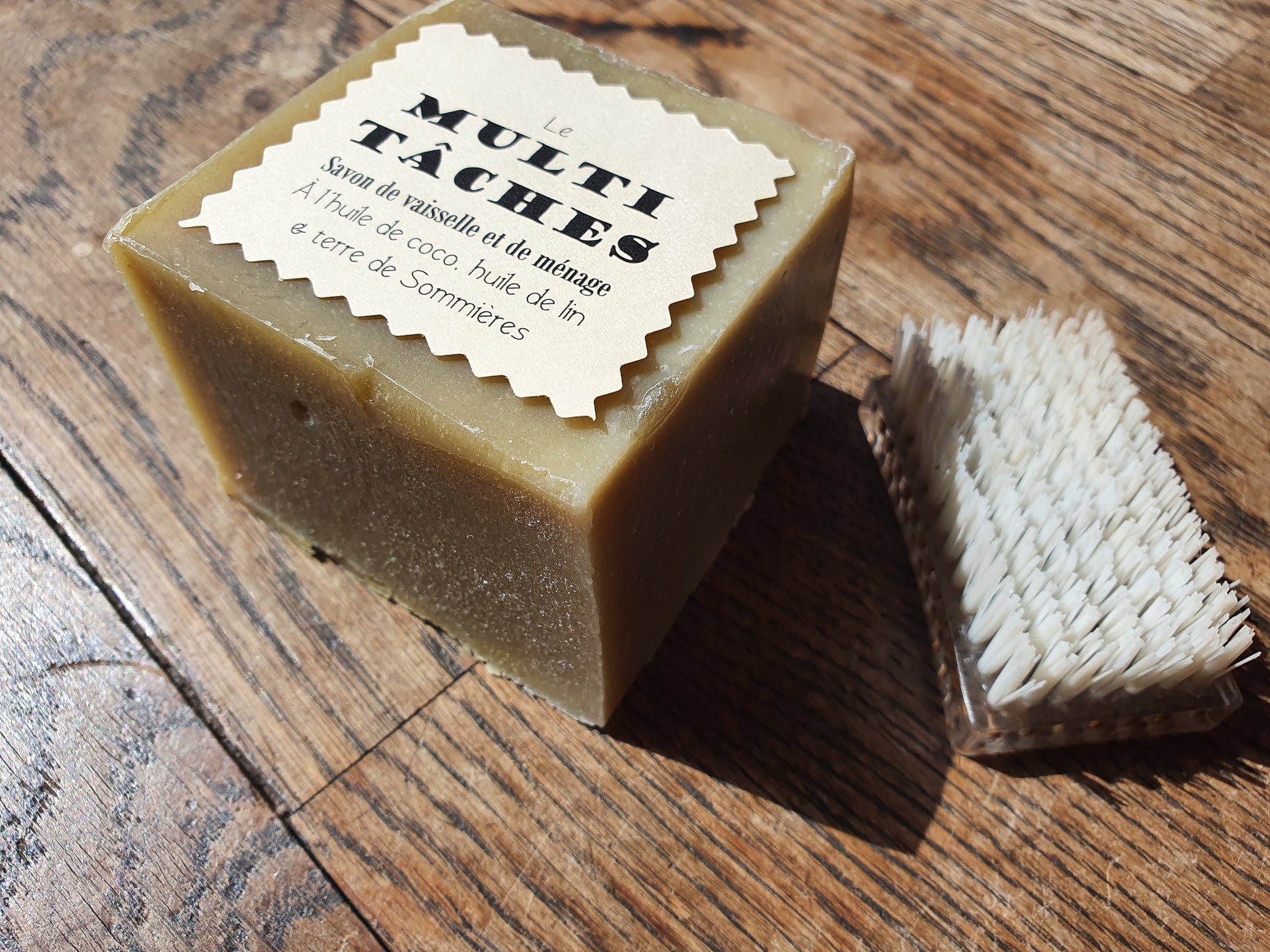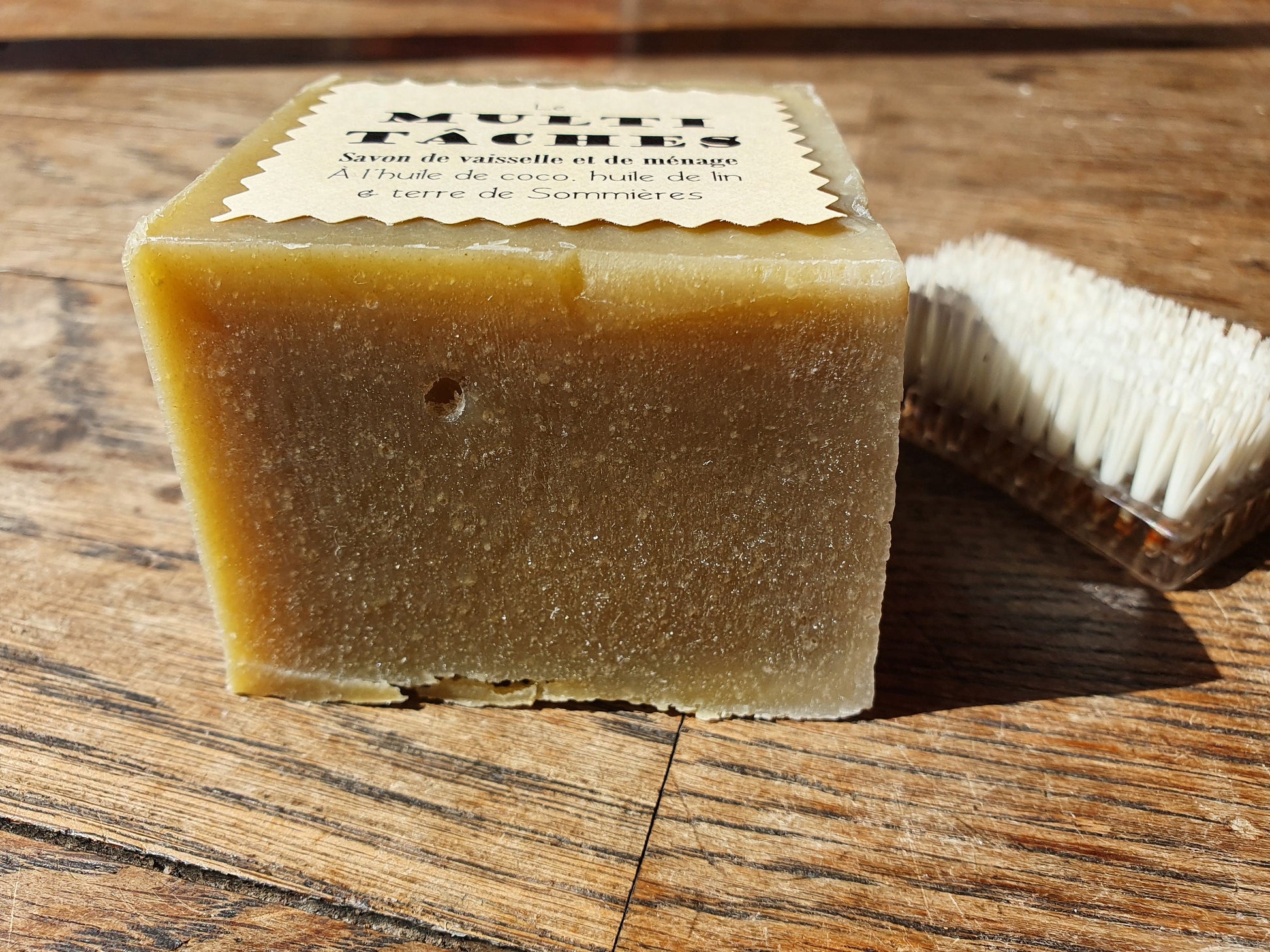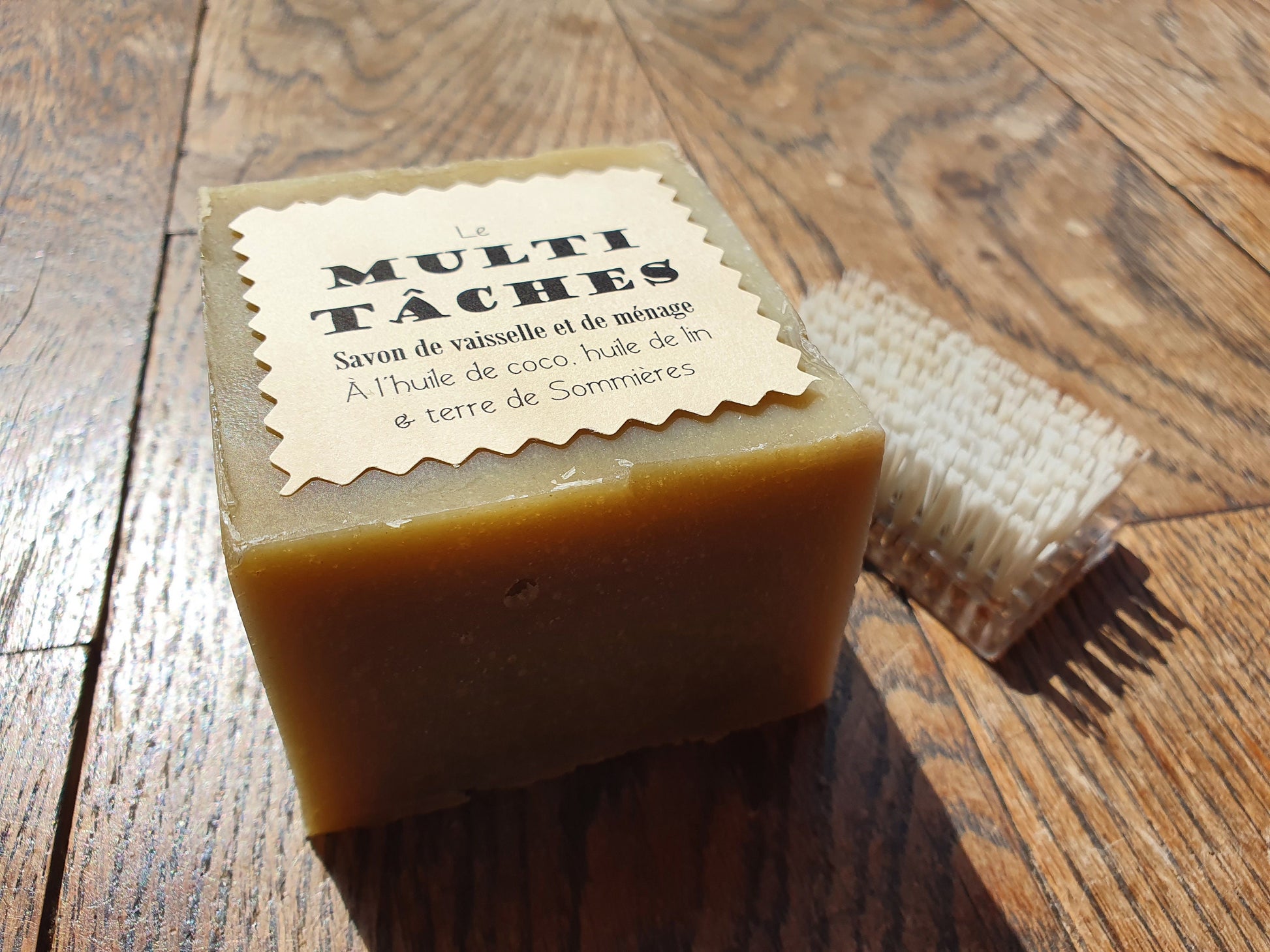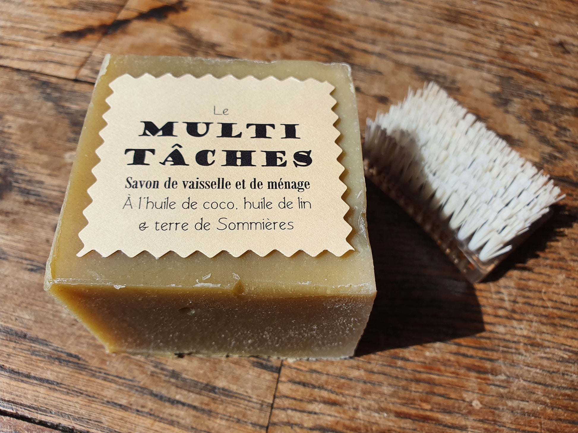 Le "Multi-tâches", savon de vaisselle et de ménage ultra-dégraissant et moussant à l'huile de lin, coco et terre de Sommières