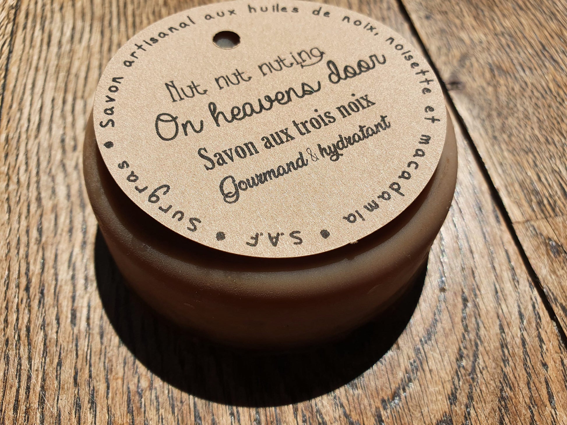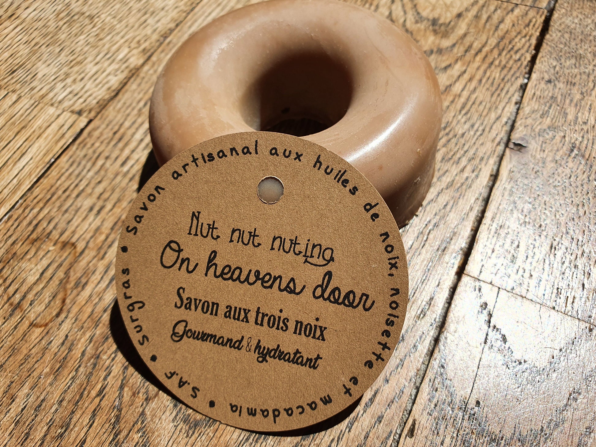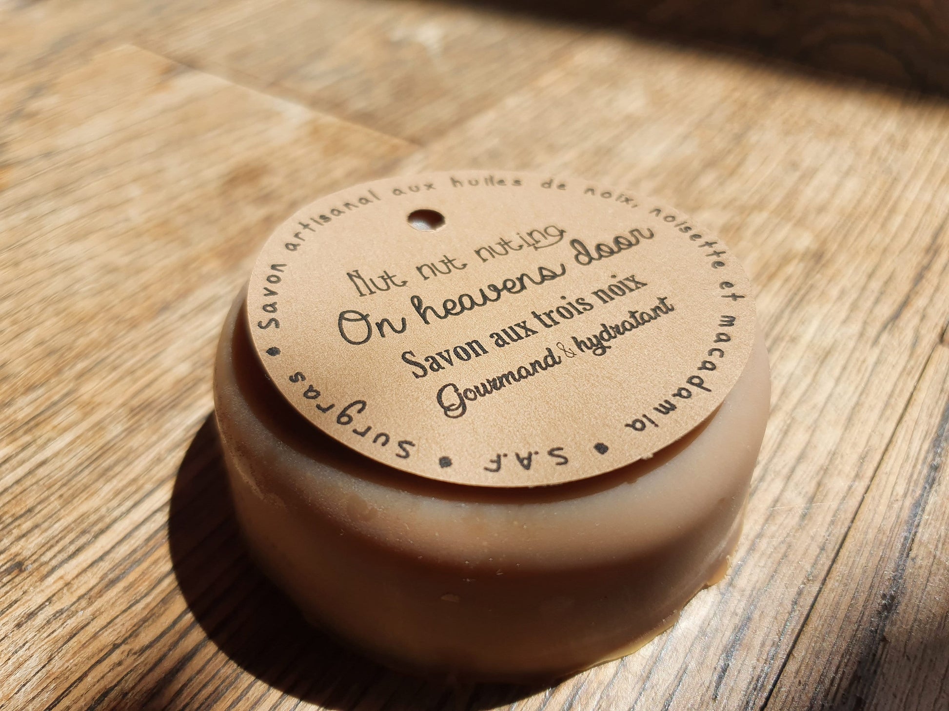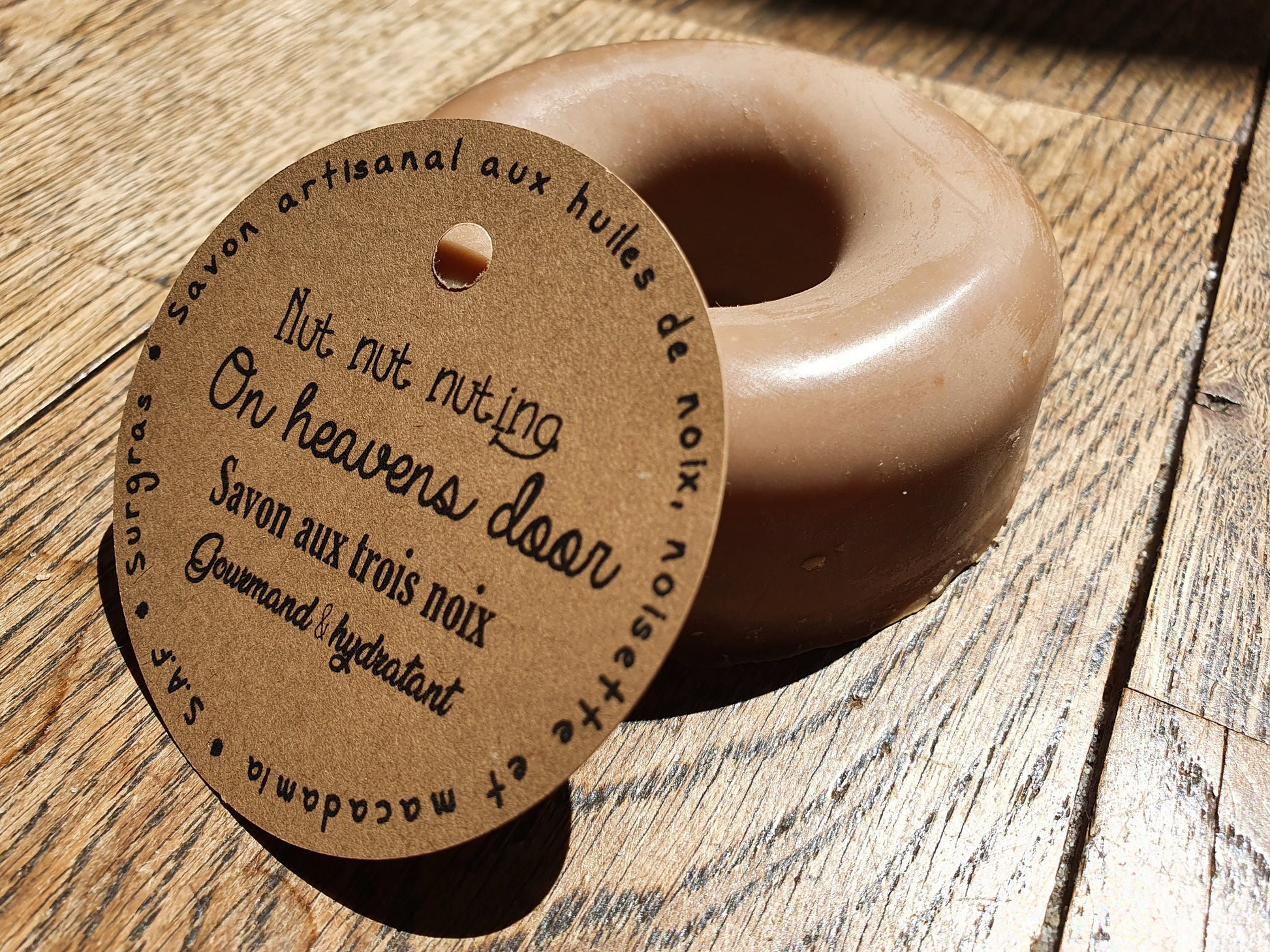 Le "Nut nut nuting on heavens door", savon artisanal surgras saponifié à froid aux huiles de noix, noisette et macadamia gourmand et hydratant