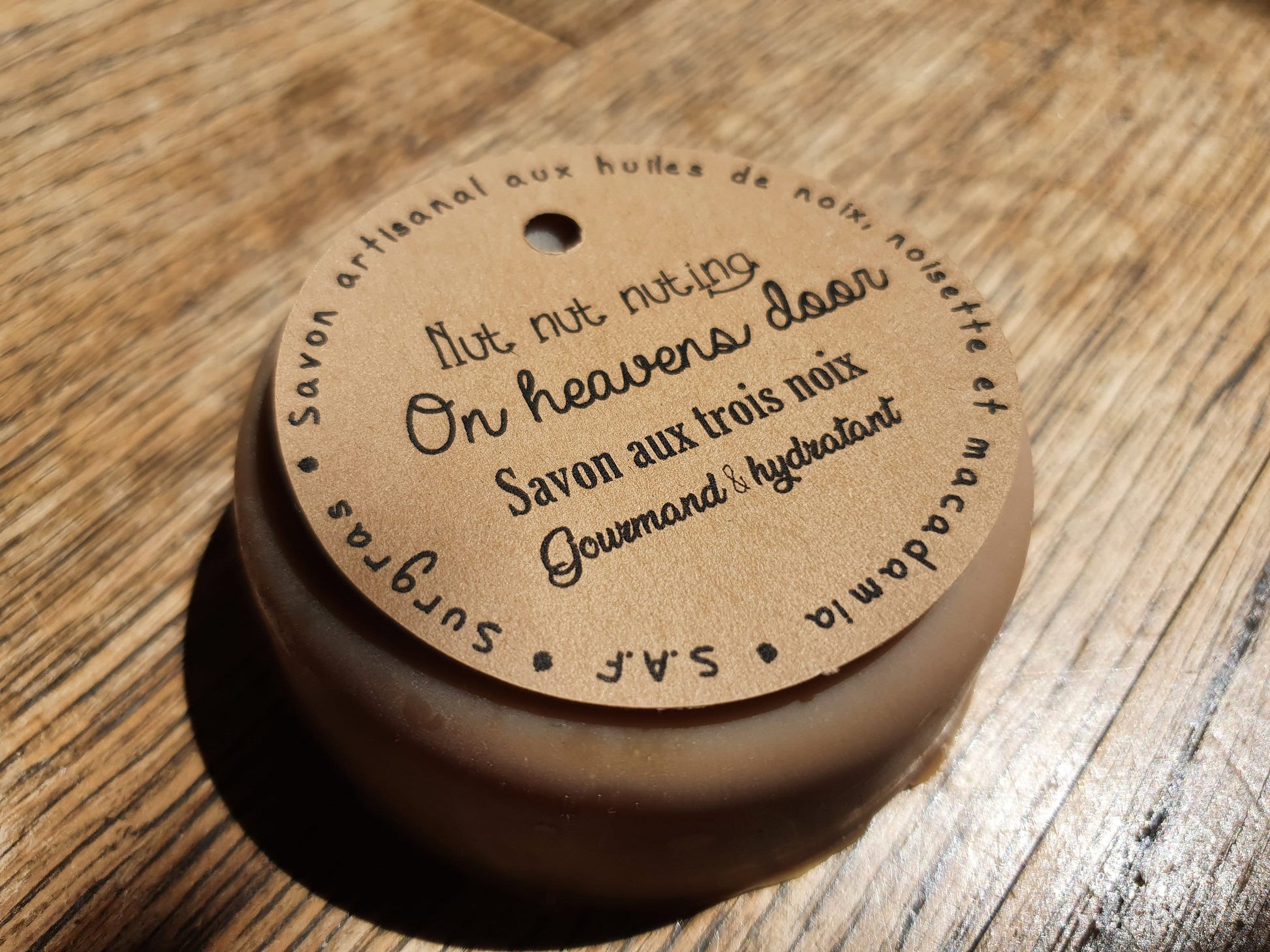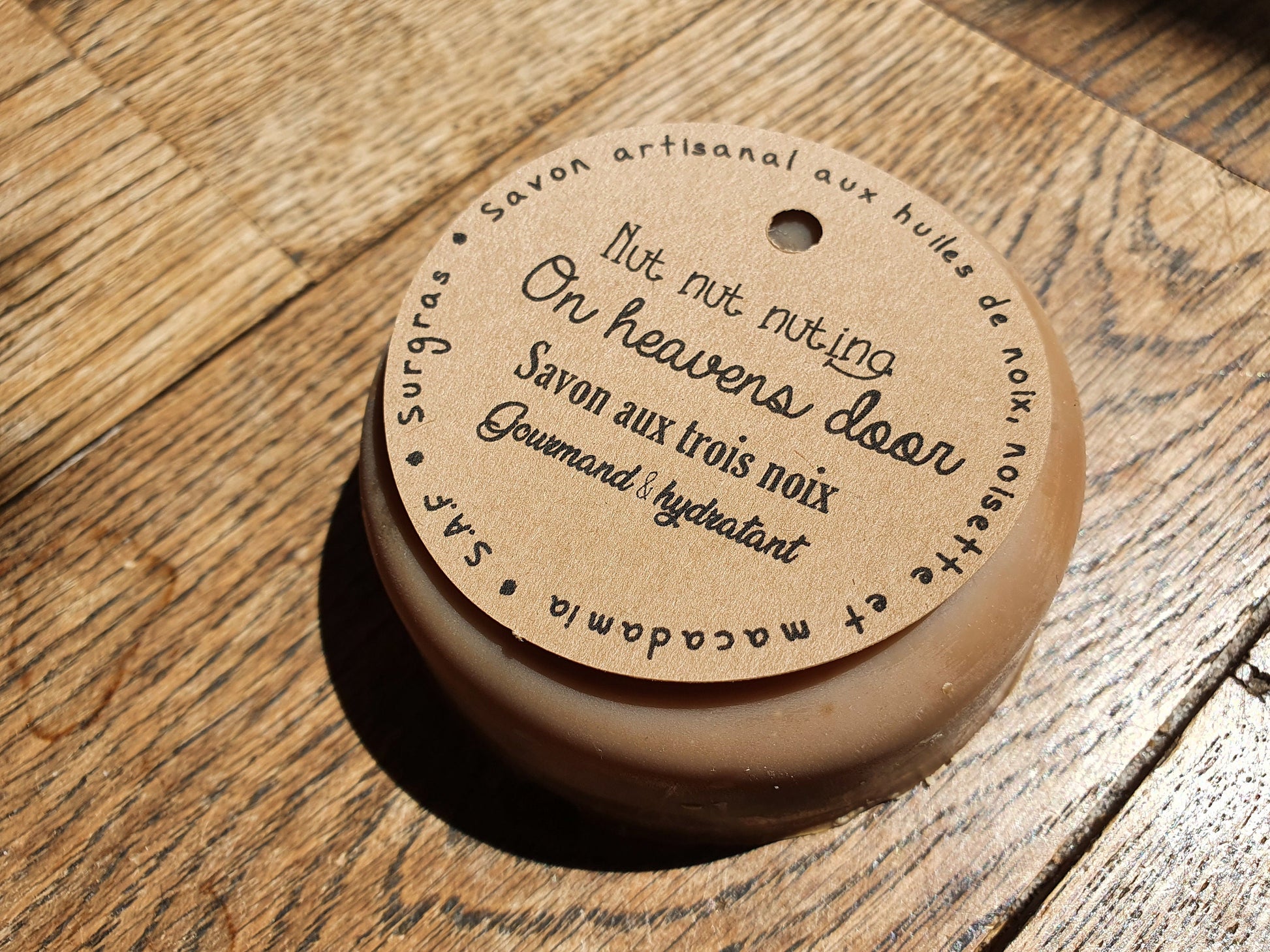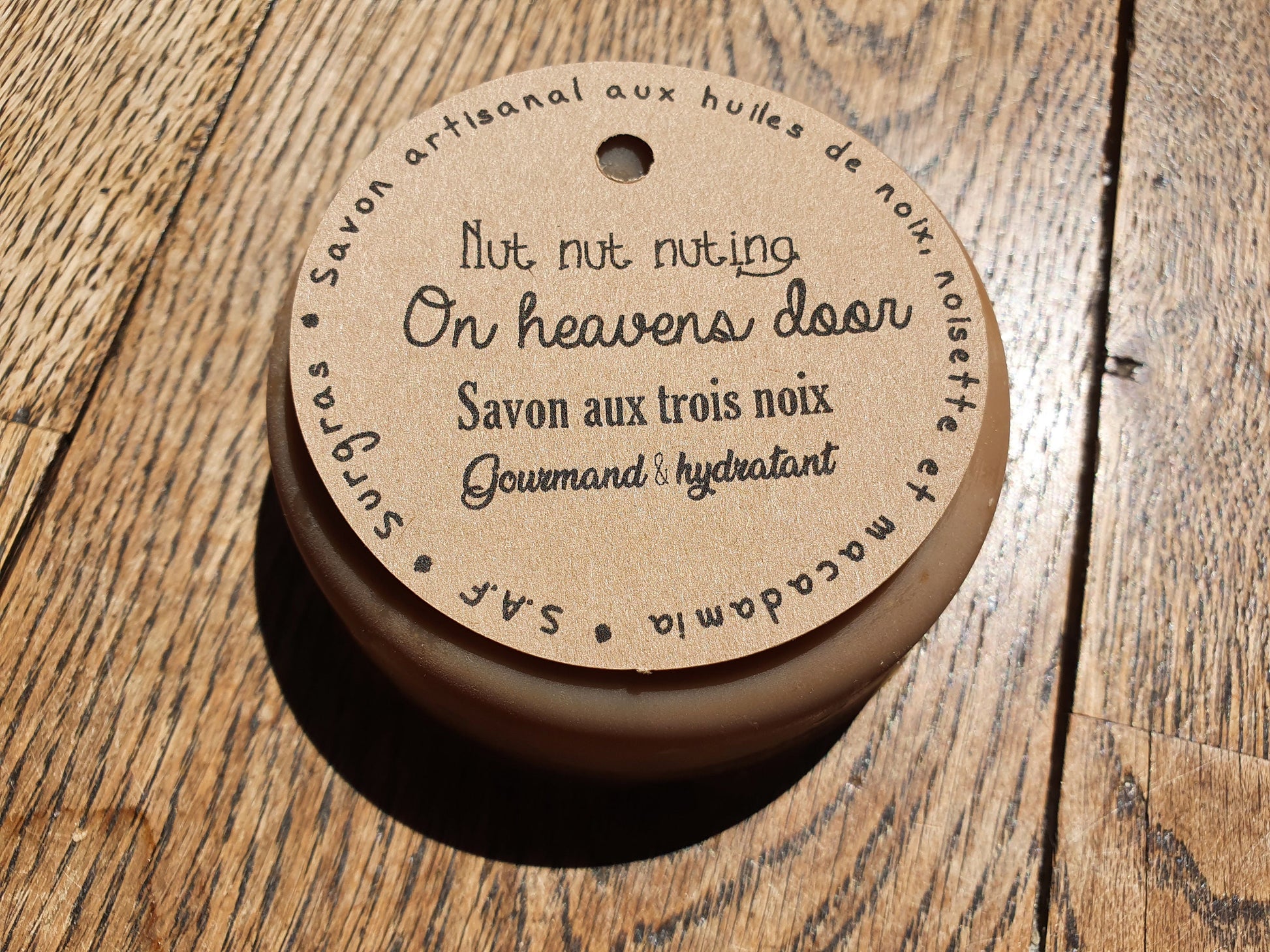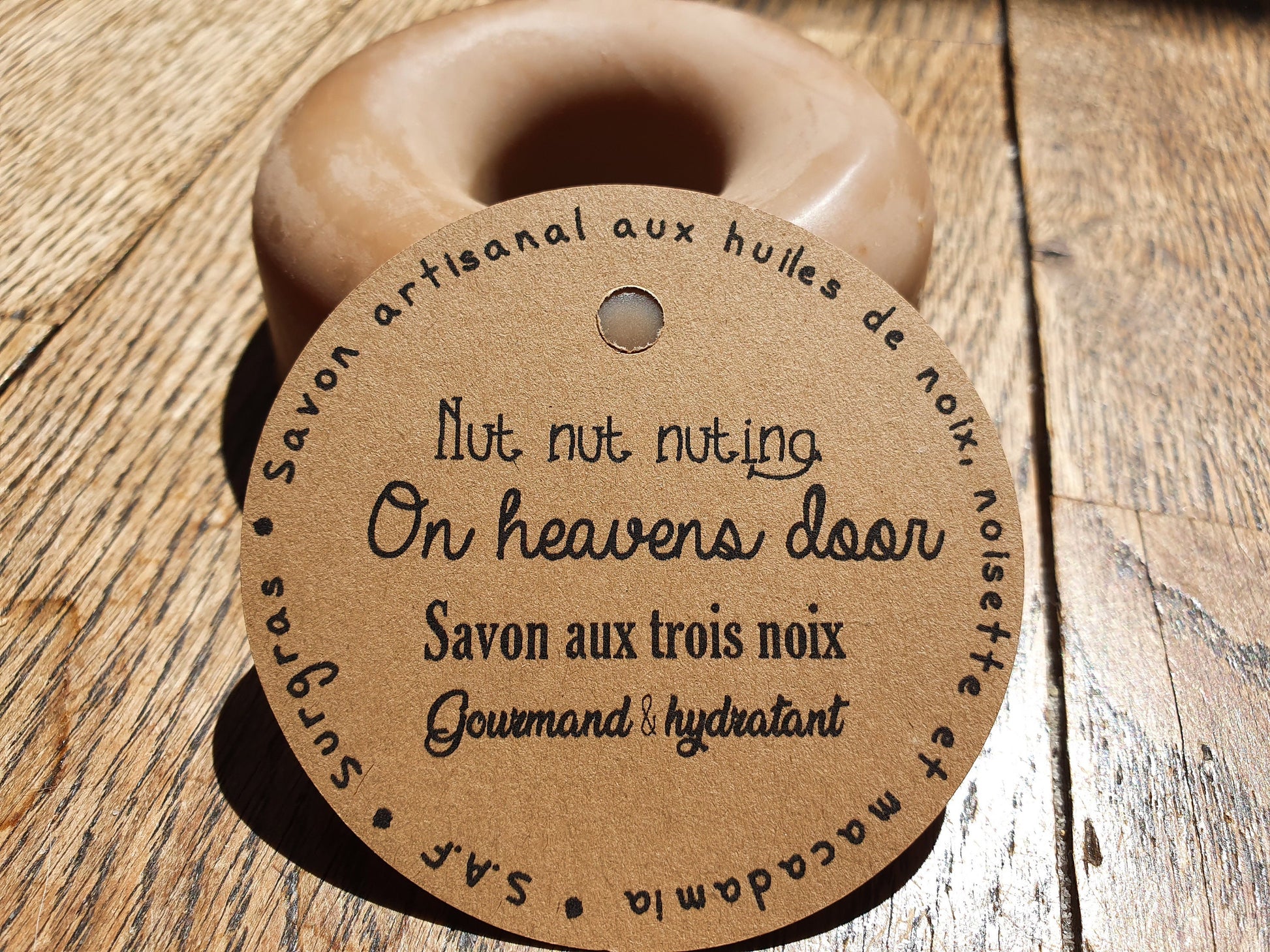 Le "Nut nut nuting on heavens door", savon artisanal surgras saponifié à froid aux huiles de noix, noisette et macadamia gourmand et hydratant