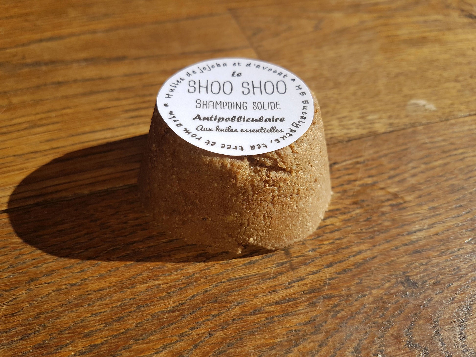 Le "Shoo Shoo antipelliculaire", shampoing solide artisanal aux huiles essentielles de romarin, de tea tree et d'eucalyptus contre les pellicules
