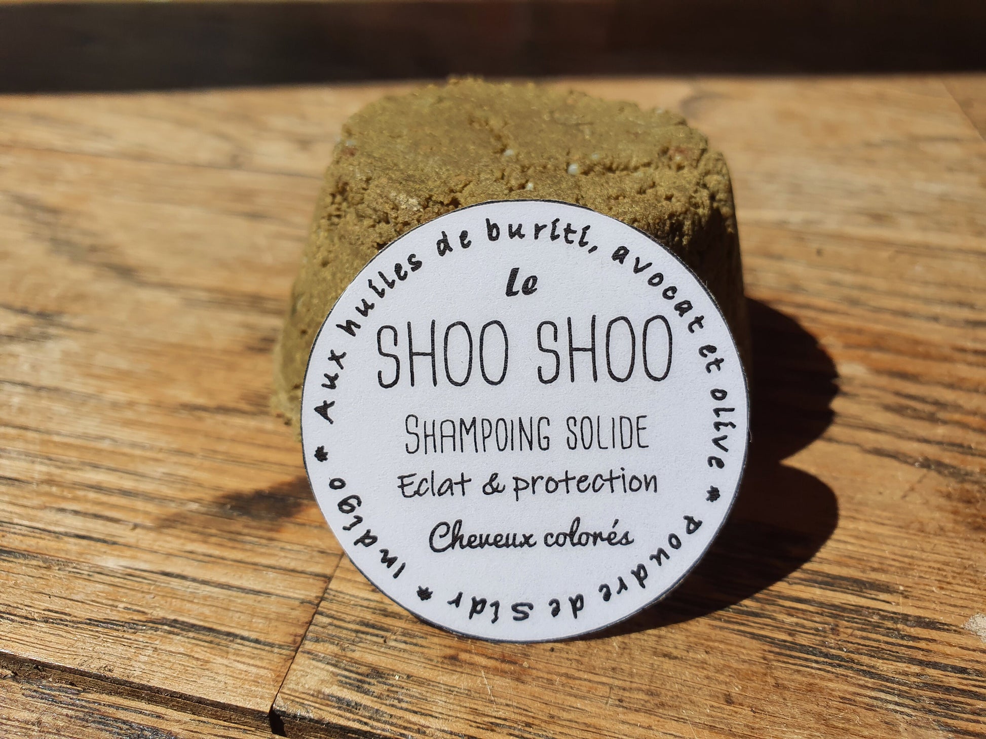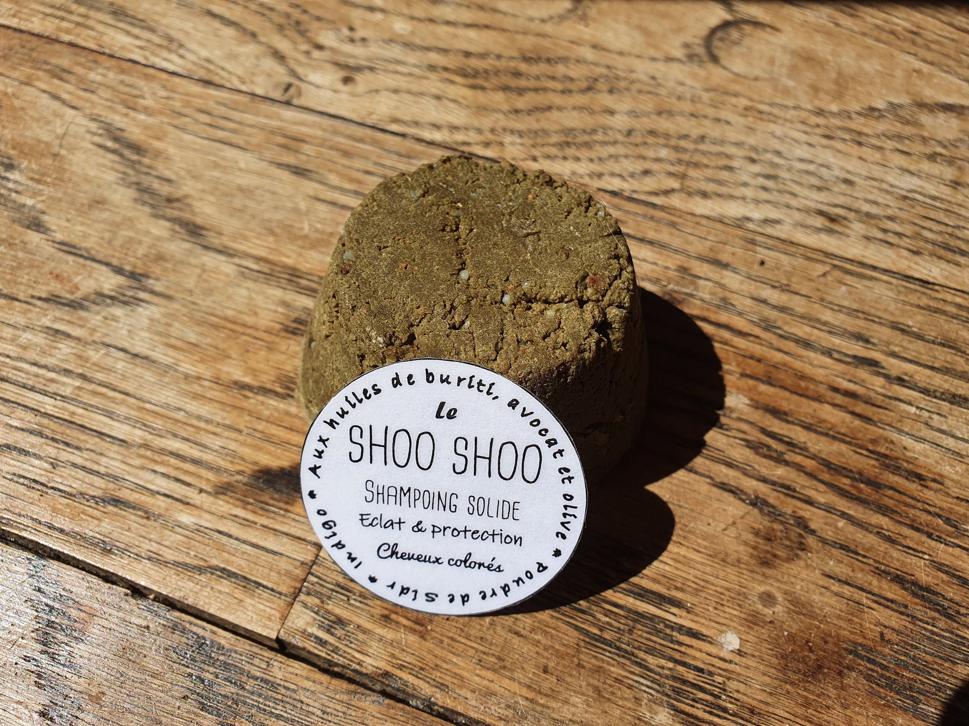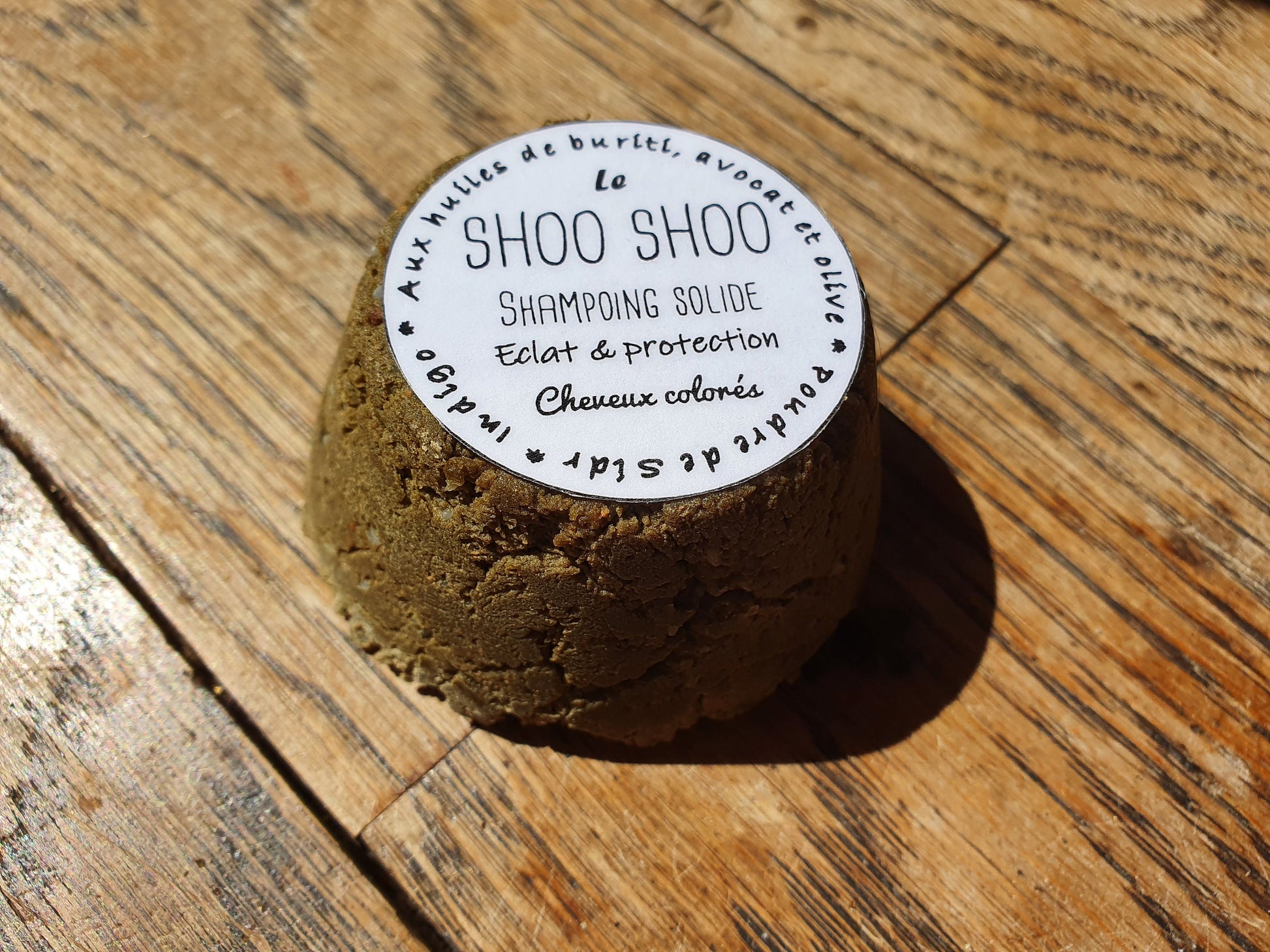 Le "Shoo Shoo cheveux colorés", shampoing solide artisanal à l'huile d'olive, coco, amande douce et poudres ayurvédiques