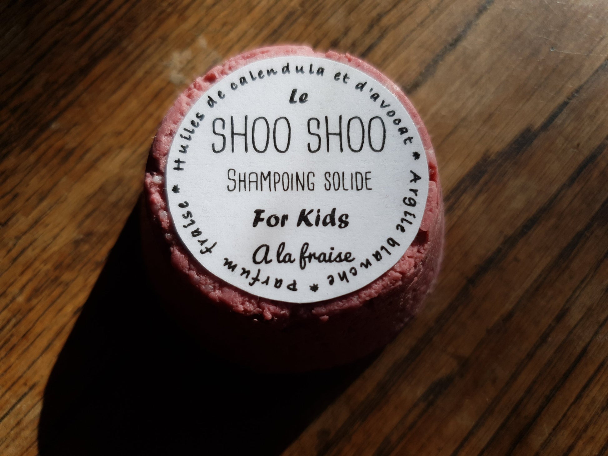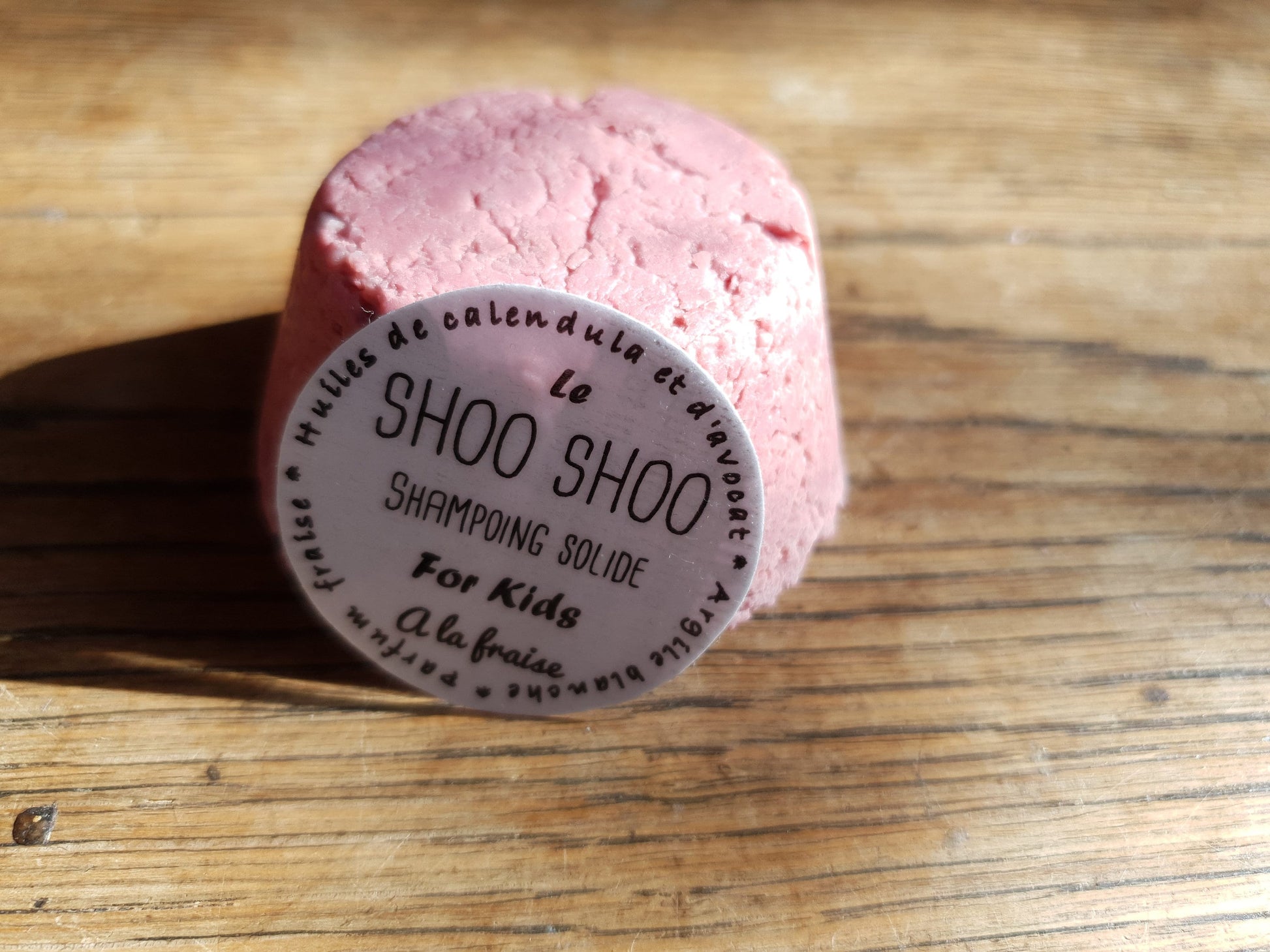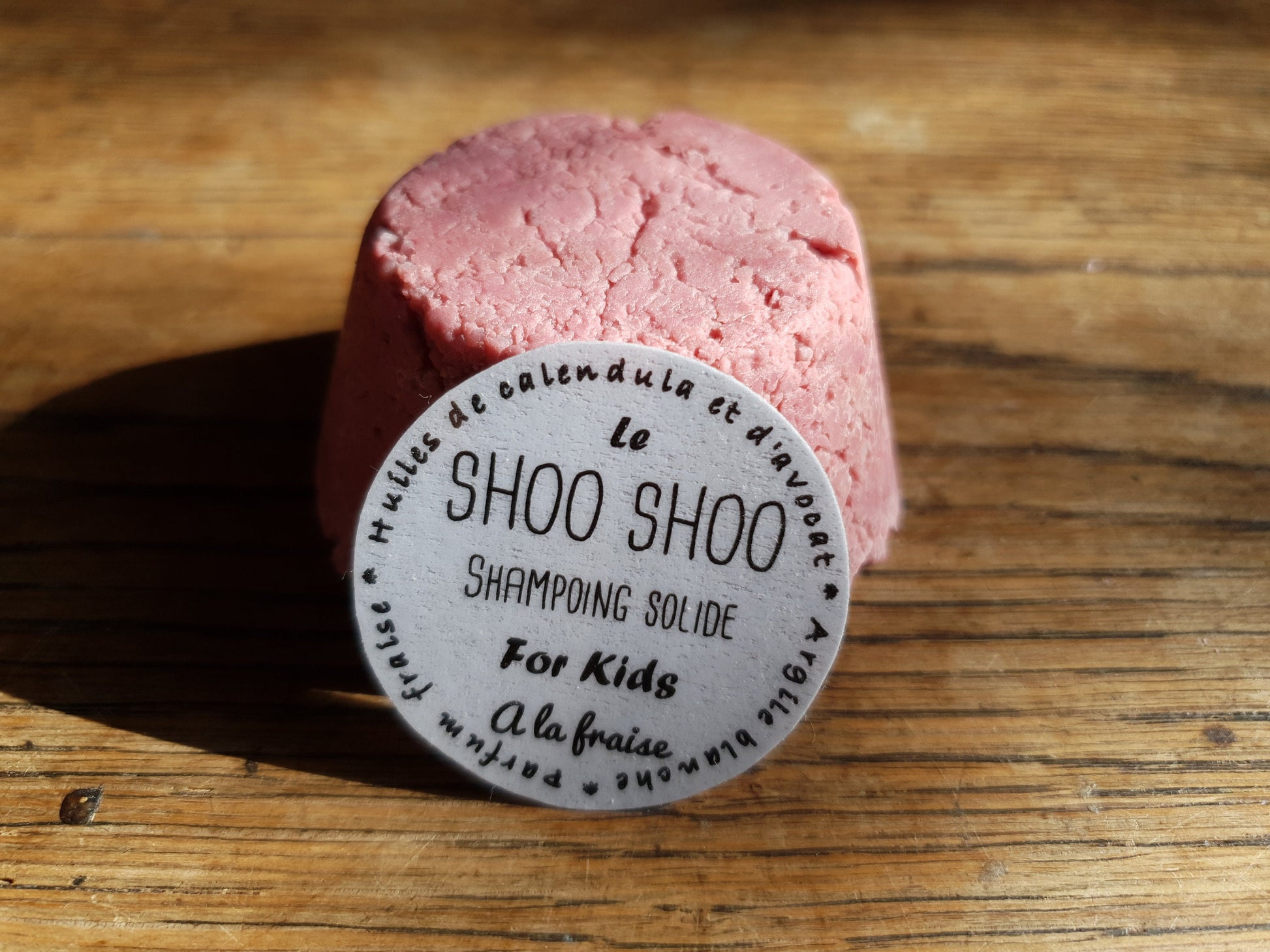 Le "Shoo Shoo for kids", shampoing solide artisanal ultra doux pour les enfants à l'huile d'avocat et de calendula sans huile essentielle, parfumé à la "fraise"