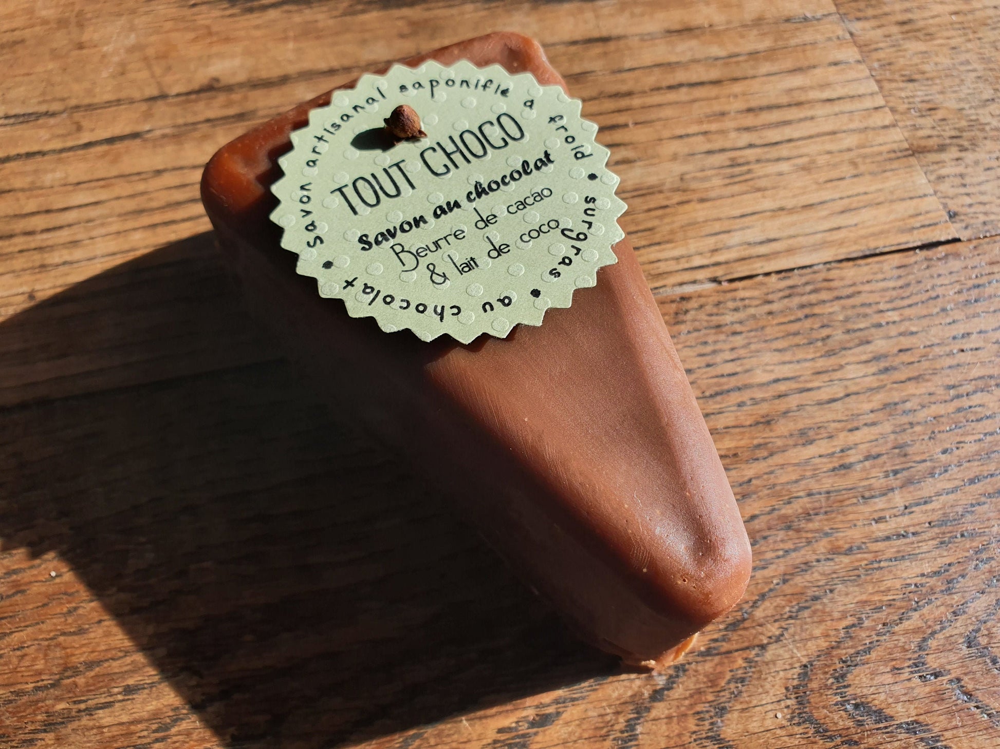 Le "Tout Choco", savon artisanal surgras saponifié à froid super gourmand au beurre de cacao et au chocolat