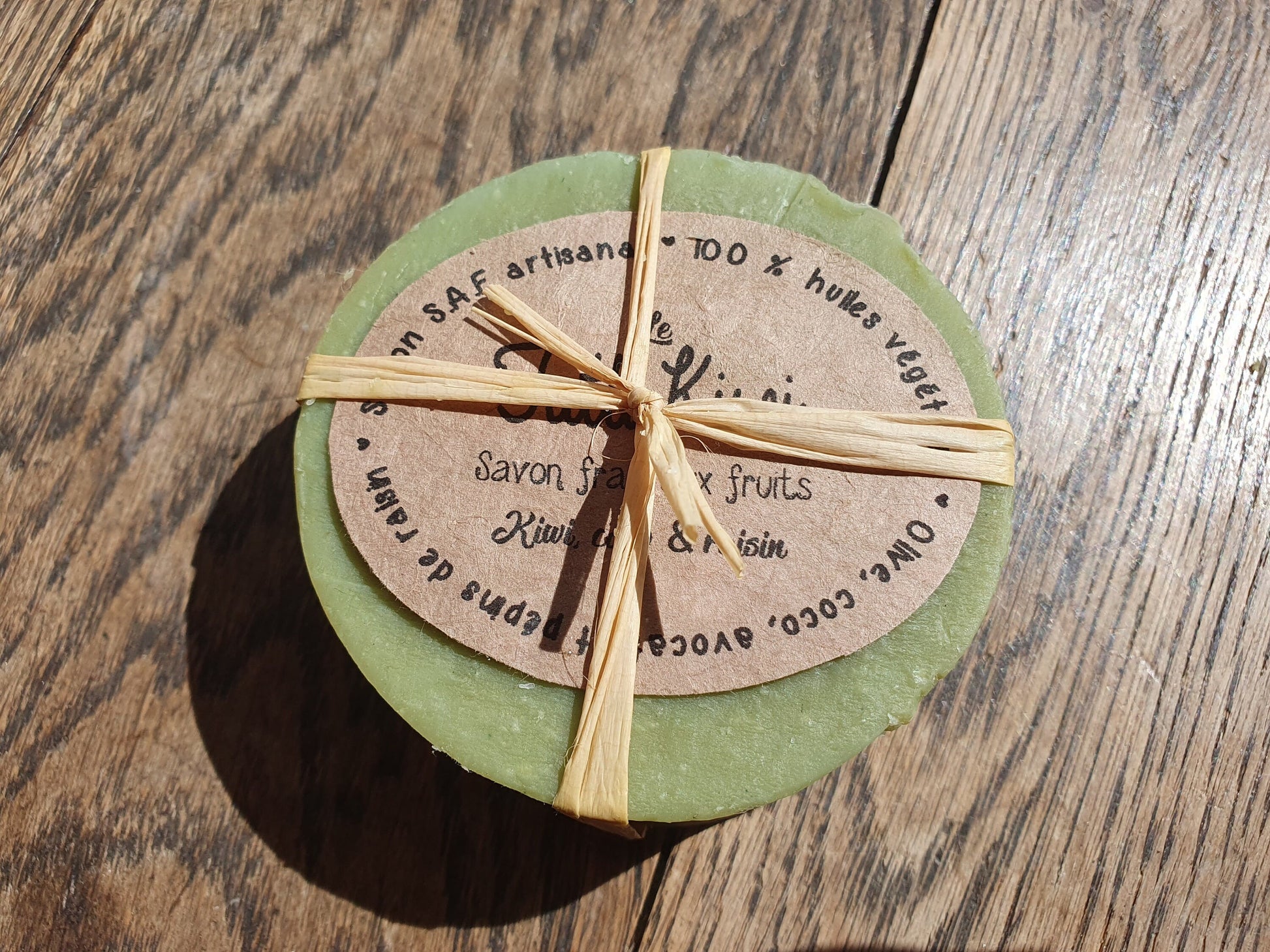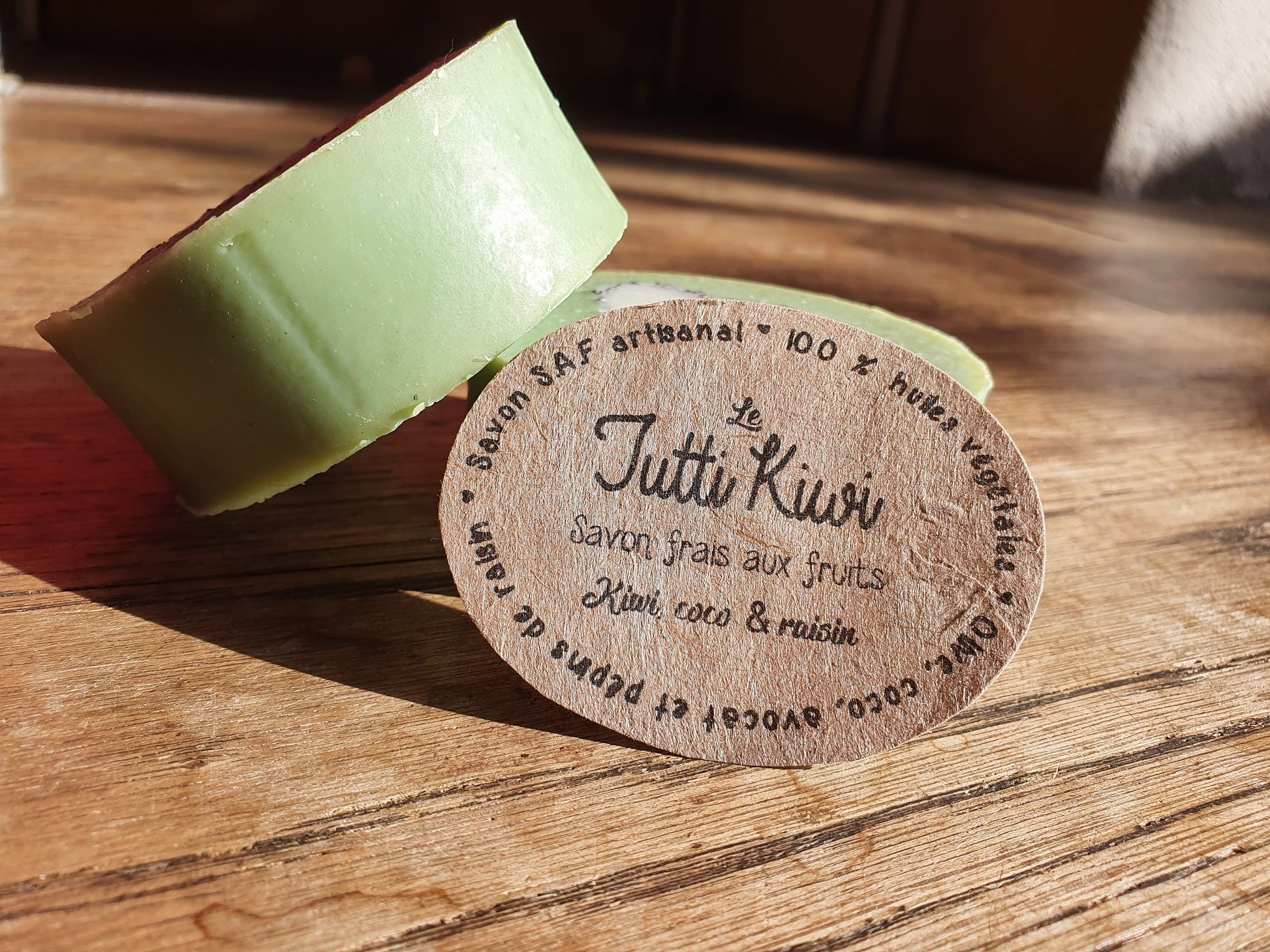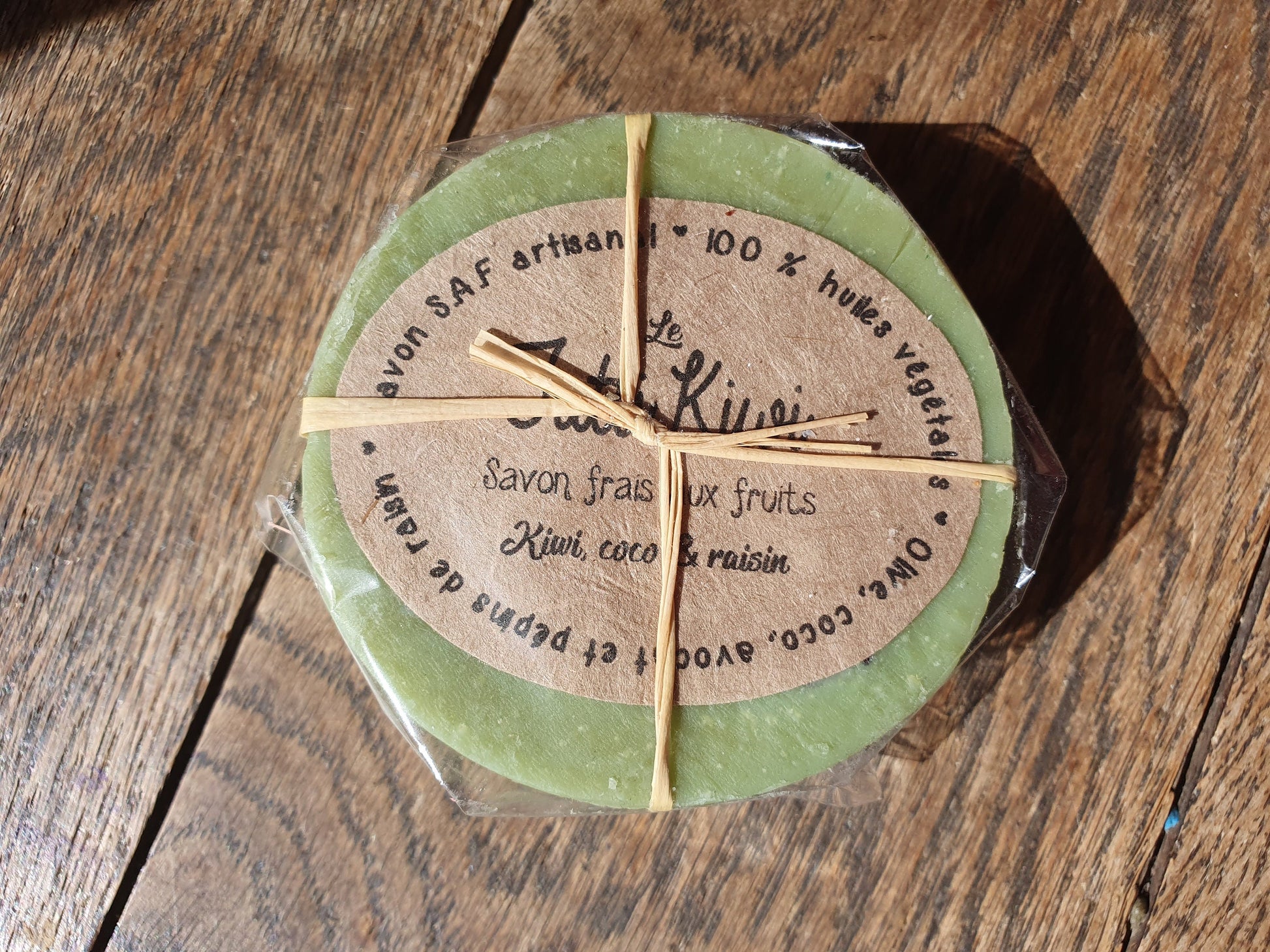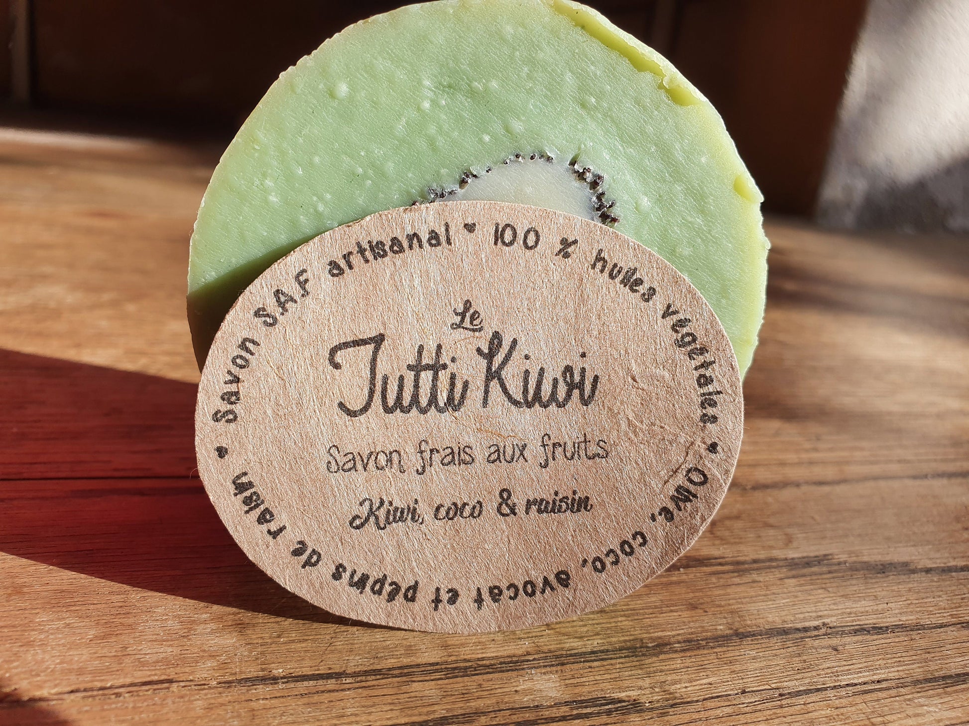 Le "Tutti Kiwi", savon artisanal surgras saponifié à froid frais aux huiles végétales et parfumé au fruit