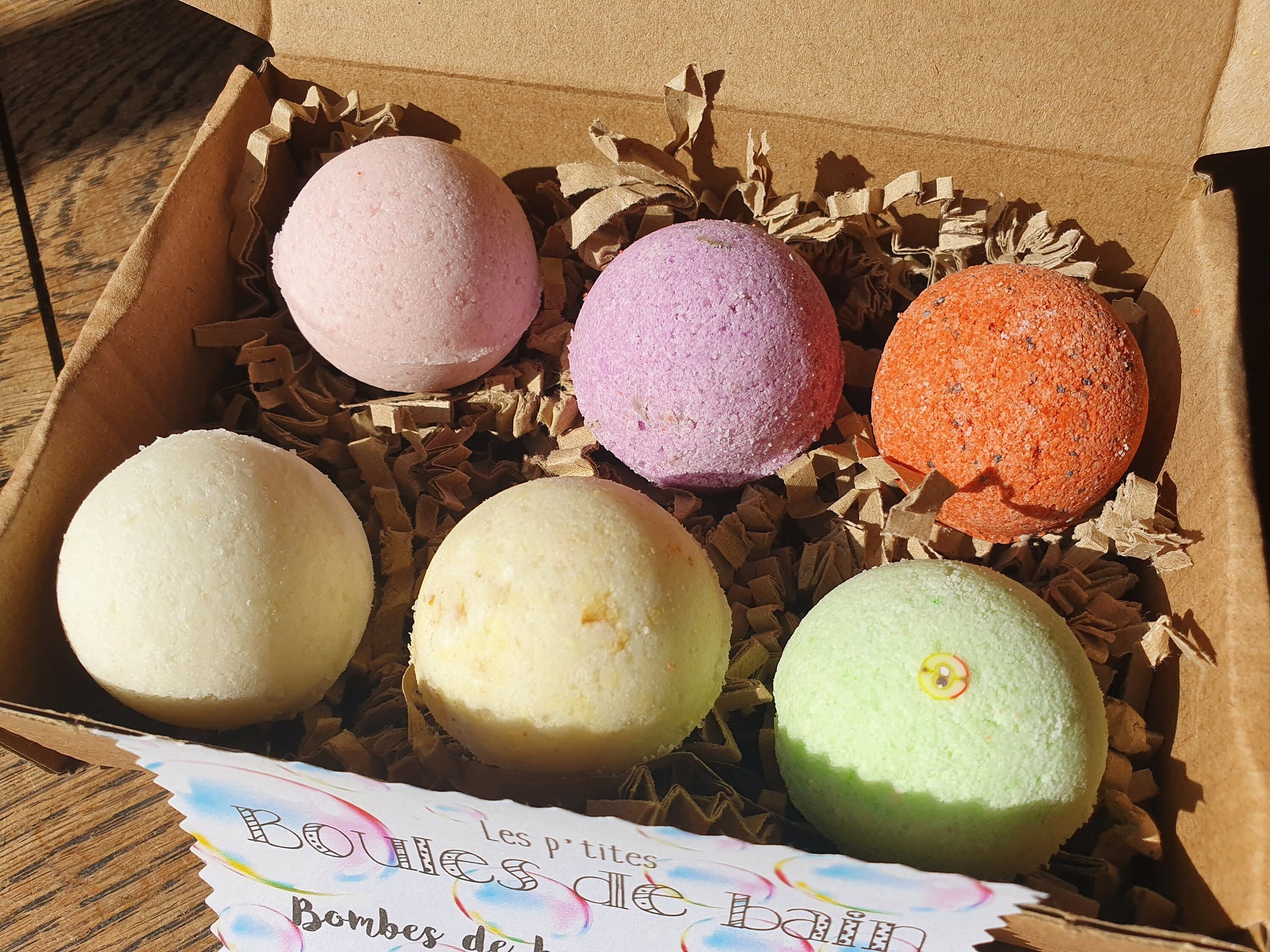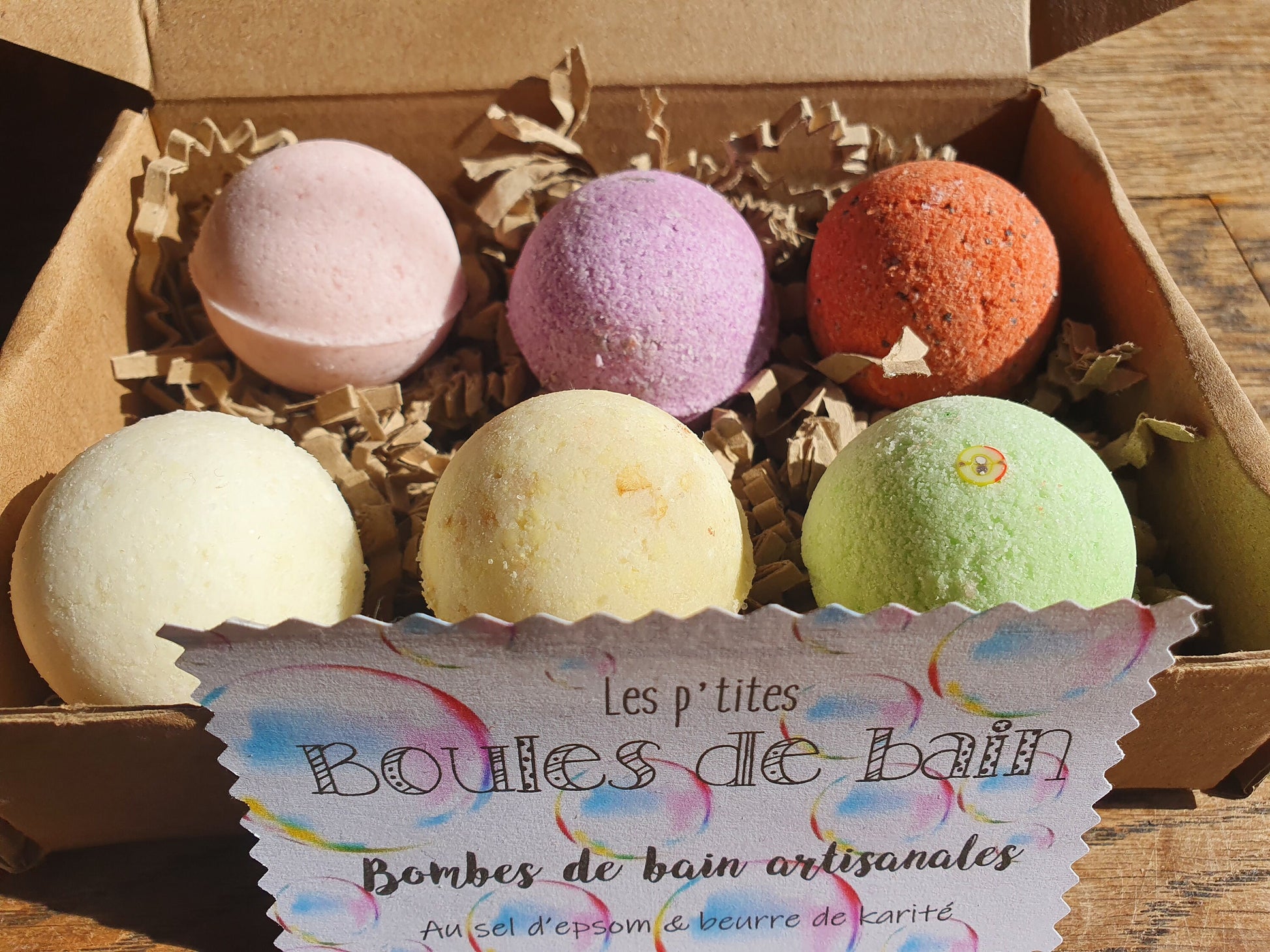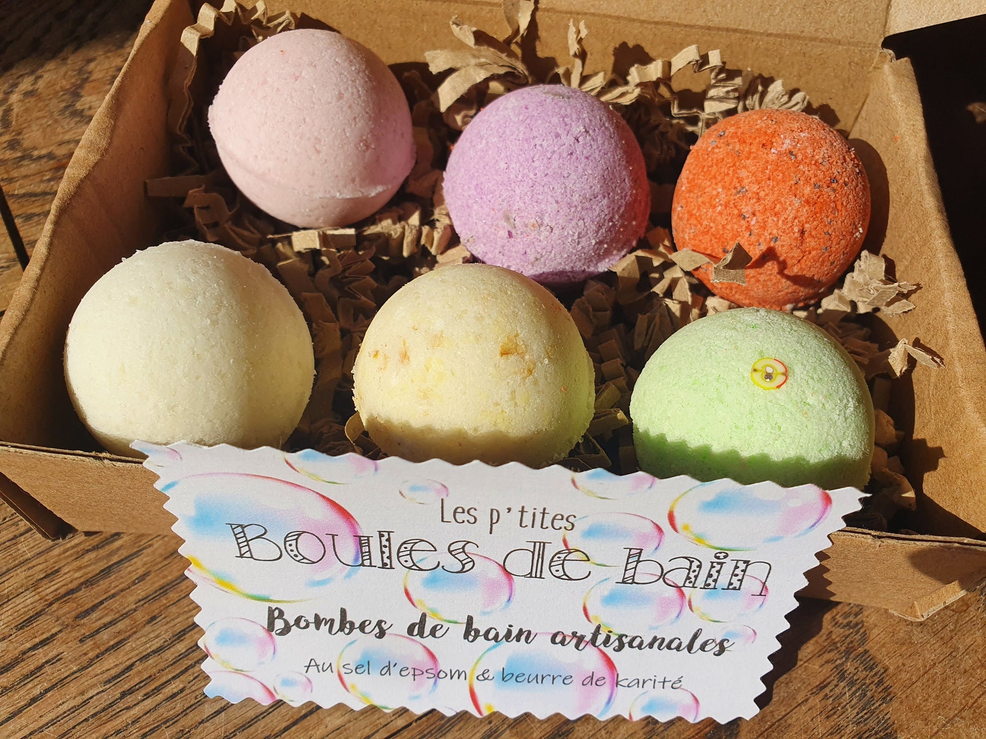 Les petites "Boules de bain", coffret de 6 petites bombes de bain artisanales, parfumées, hydratantes et effervescentes au beurre de karité et sel d'Epsom