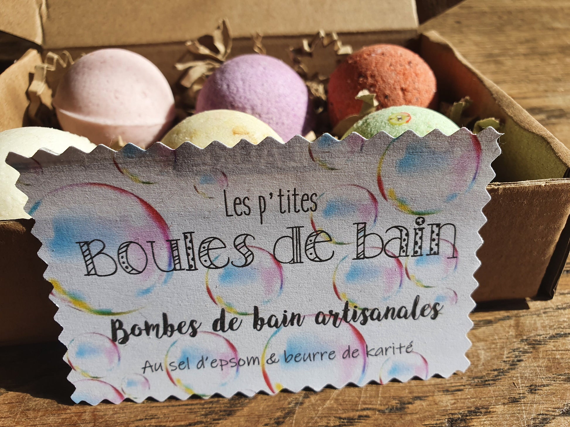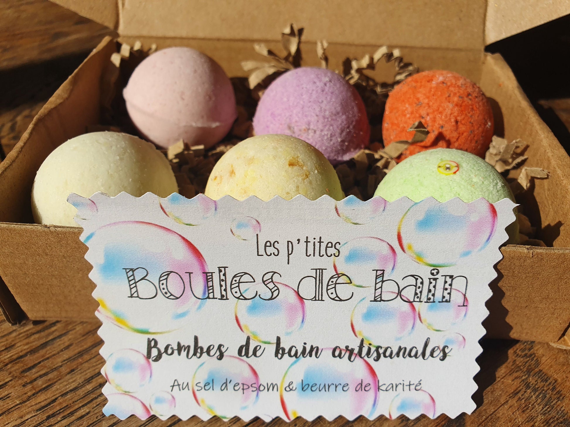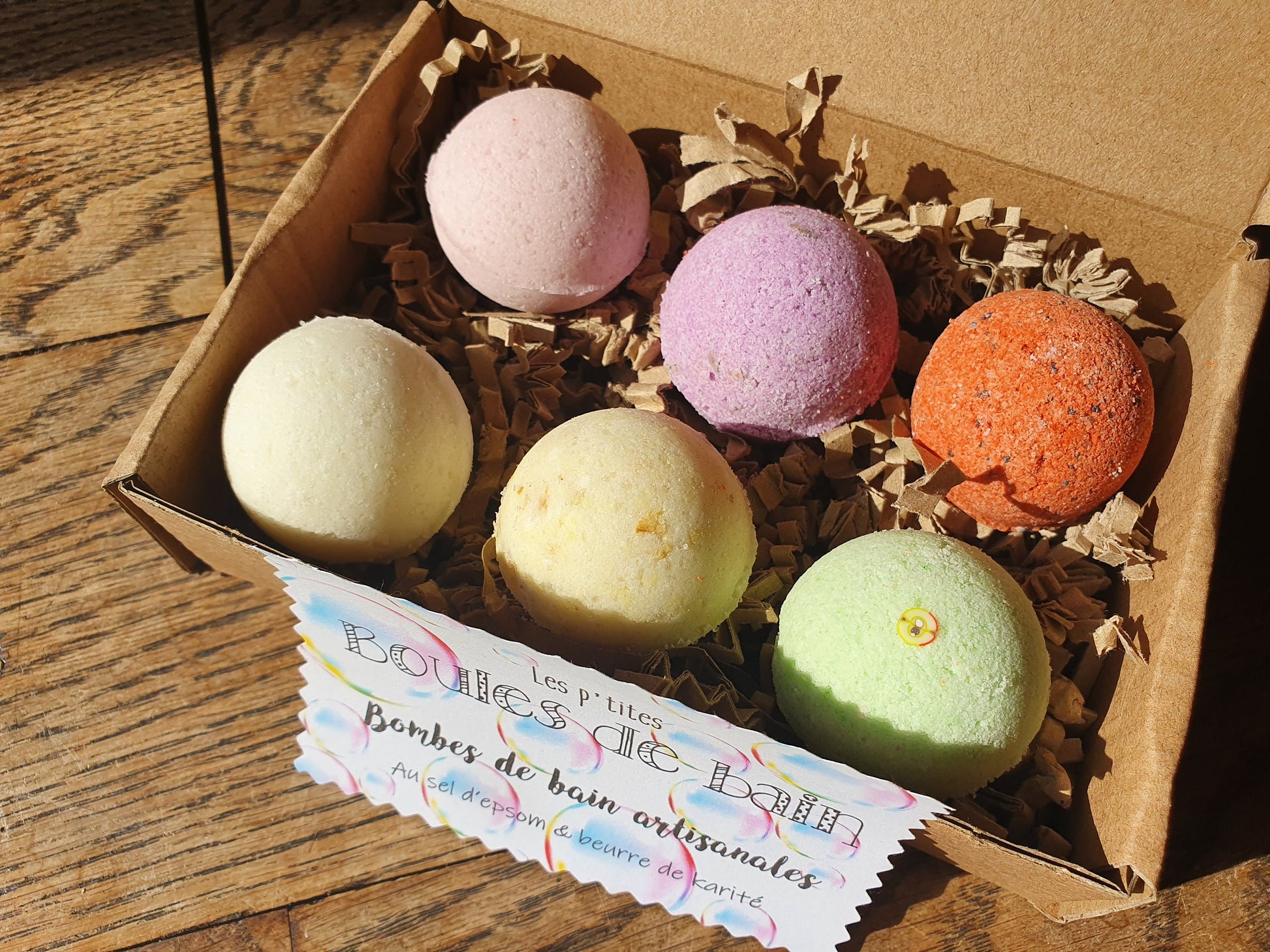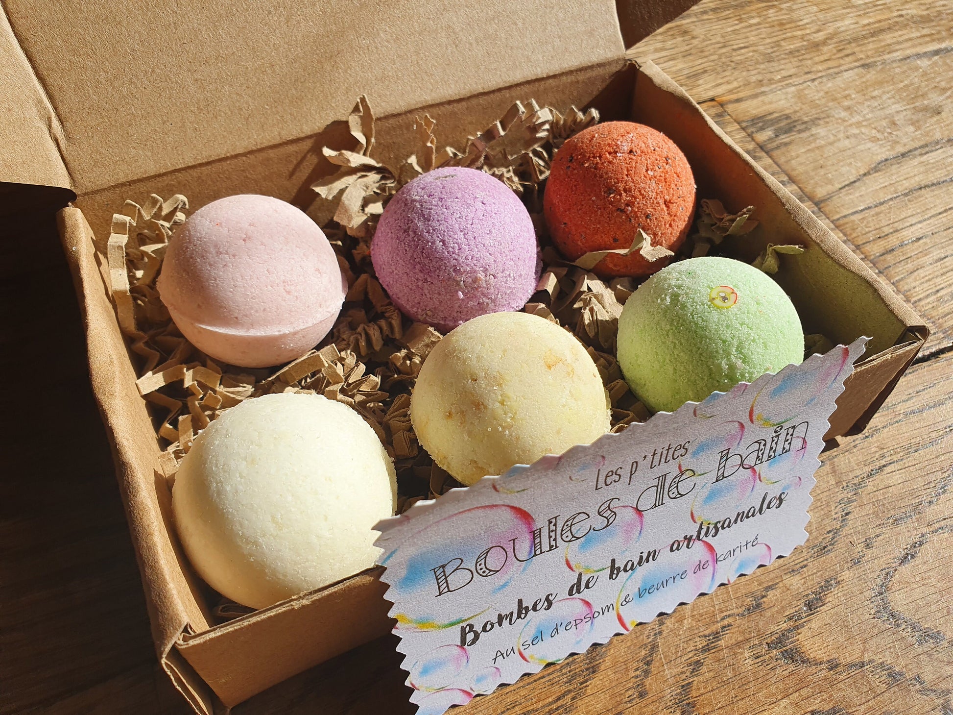 Les petites "Boules de bain", coffret de 6 petites bombes de bain artisanales, parfumées, hydratantes et effervescentes au beurre de karité et sel d'Epsom