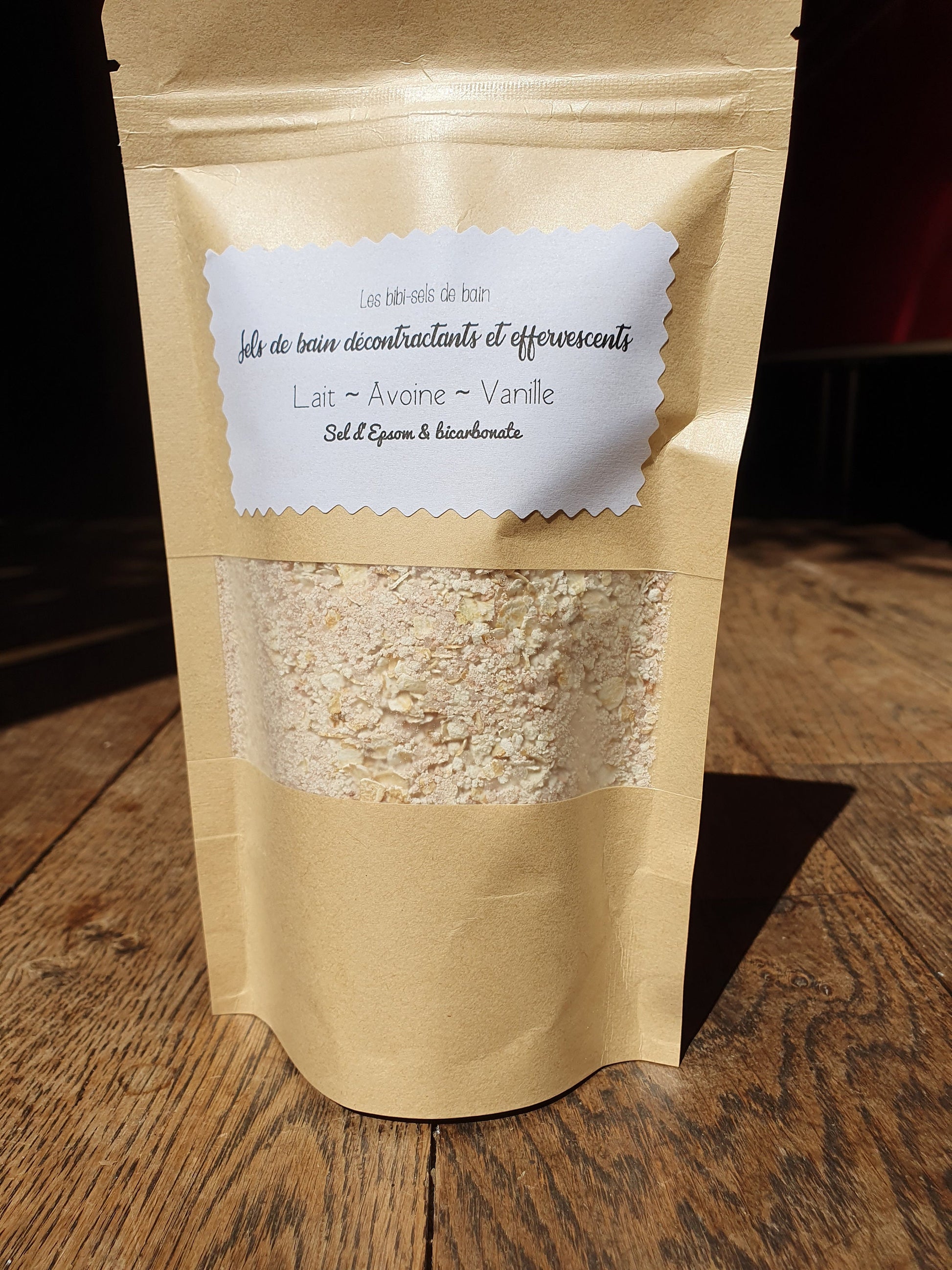 Sels de bain décontractants et reminéralisants au sel d'Epsom relaxant au lait, avoine et parfum vanille
